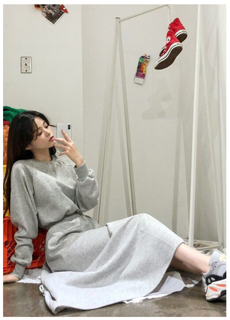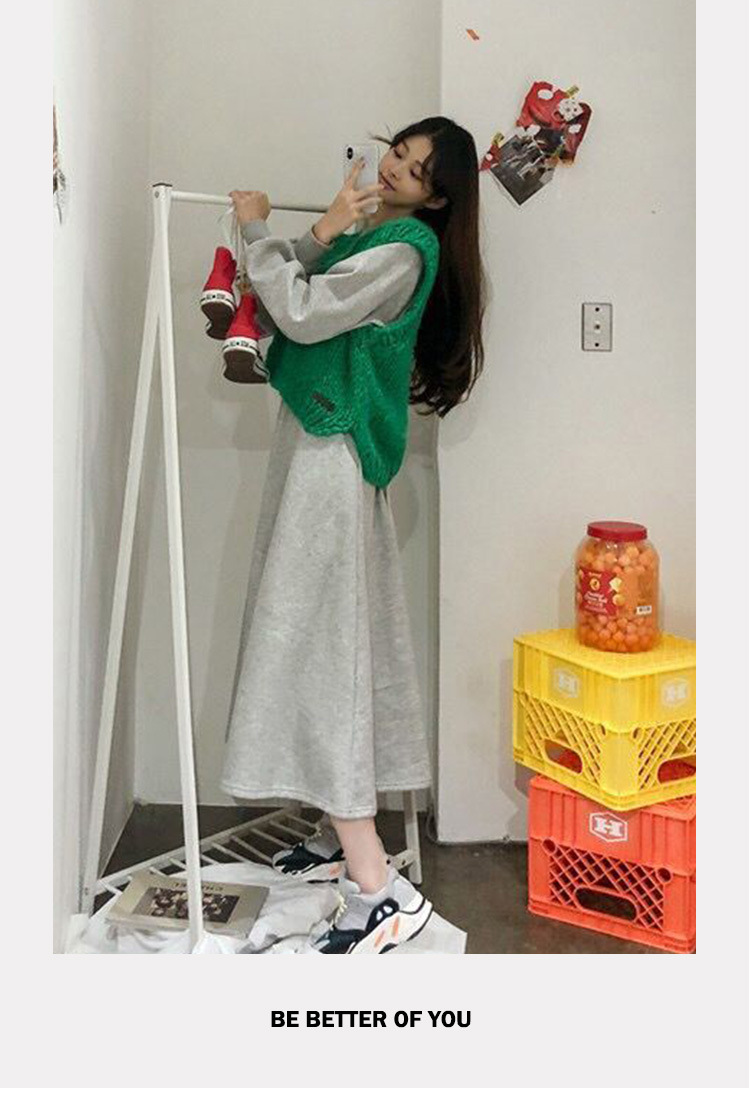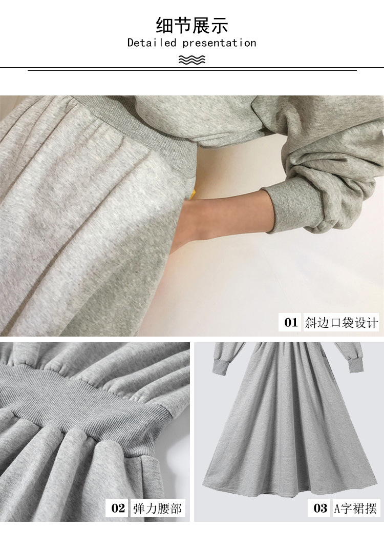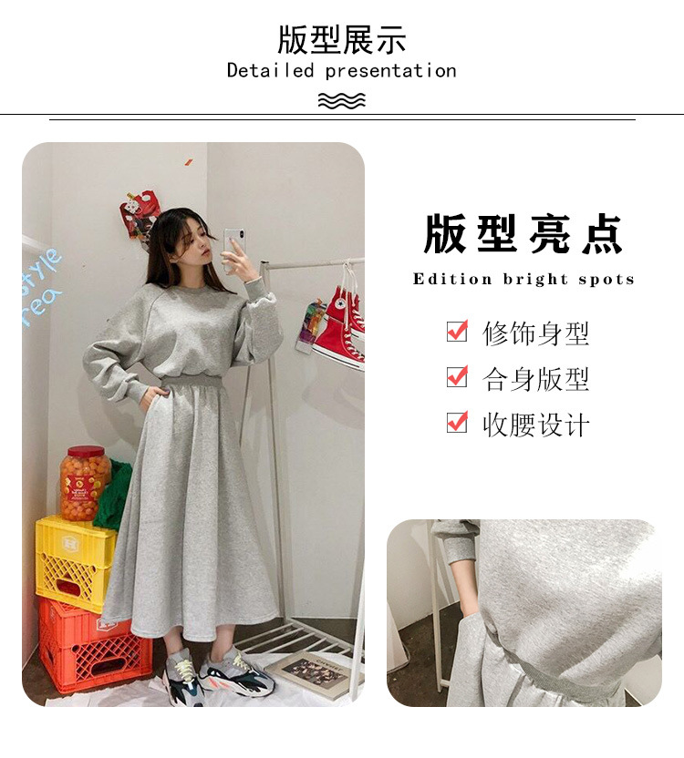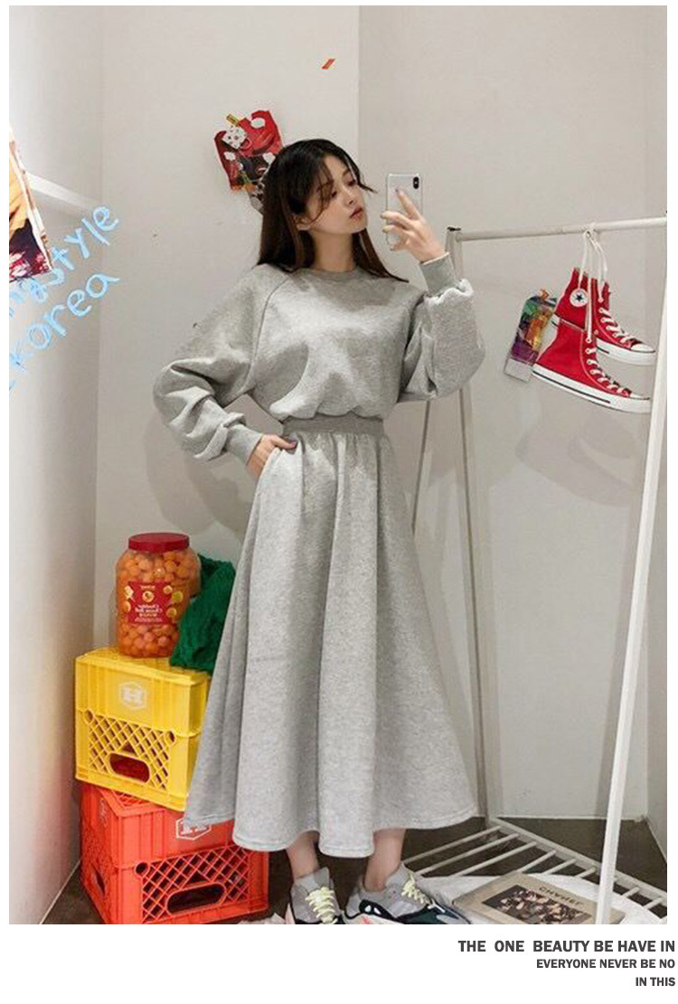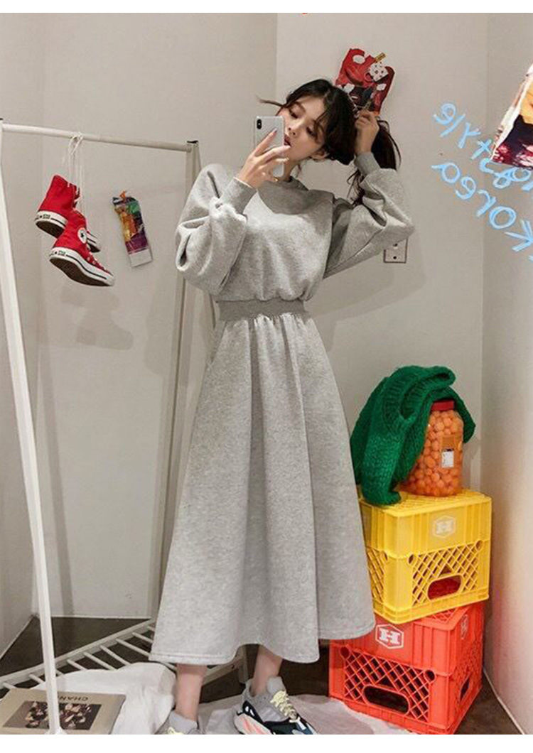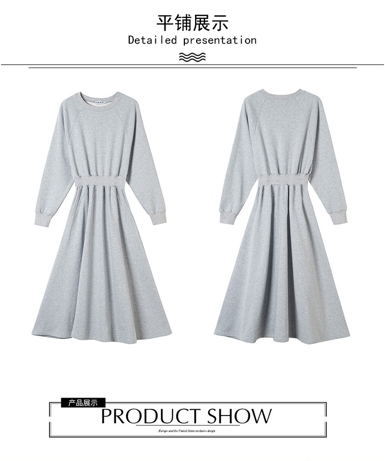 국경 간 가을과 겨울 새로운 한국식 긴팔 서양식 시대 감소 예술적 슬리밍 큰 스윙 허리 긴 땀 원피스 여성스토어 가기