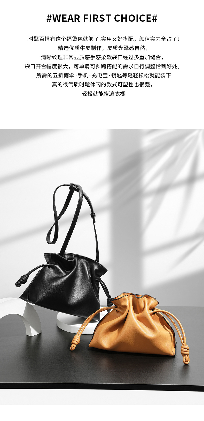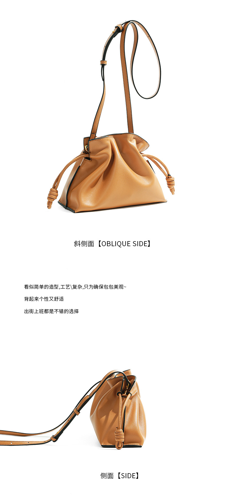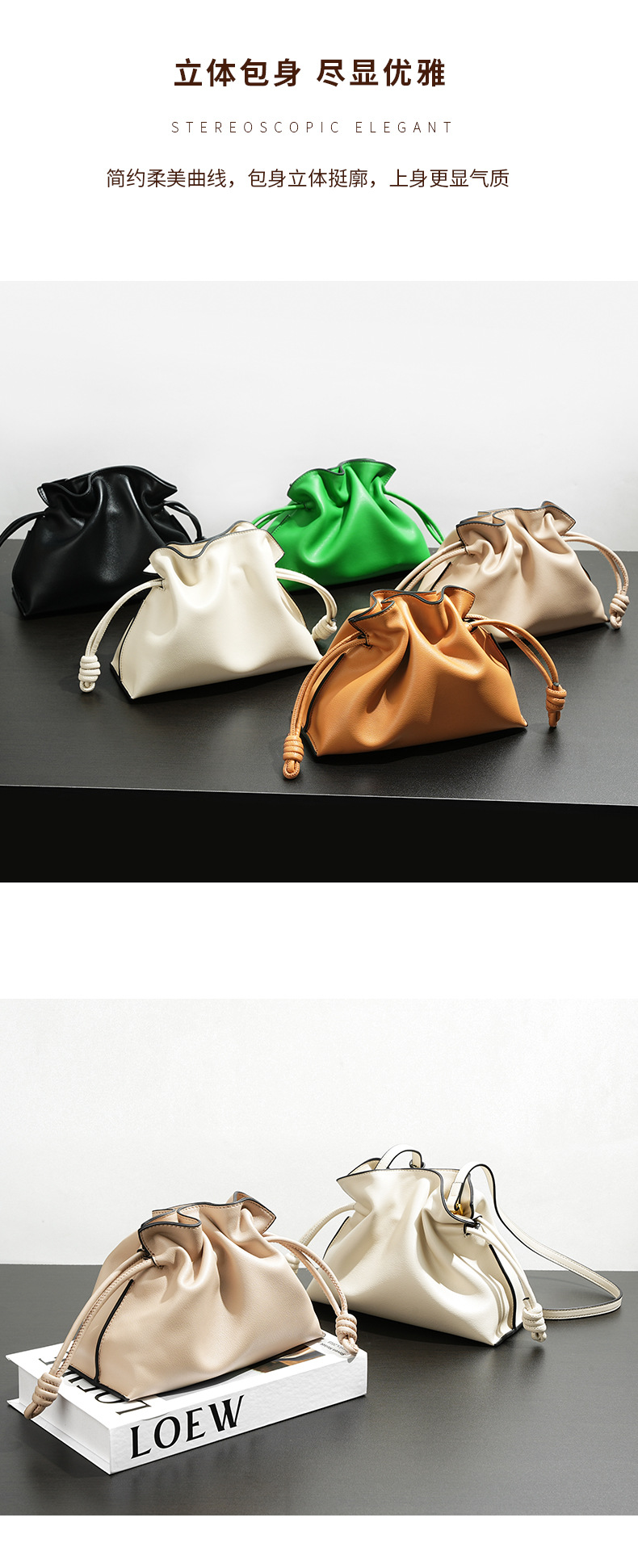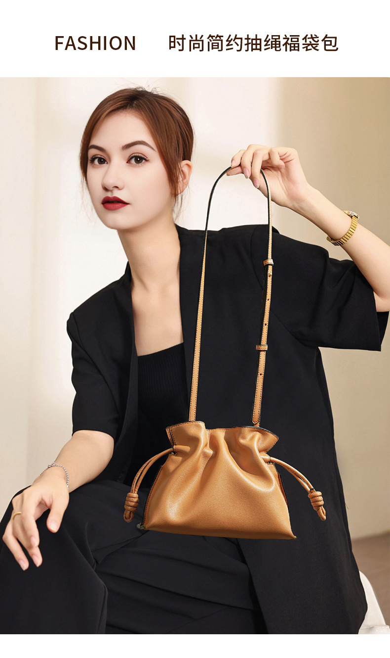 秋冬经典Flamenco时尚福袋云朵包 真牛皮抽绳单肩斜挎小水桶女包