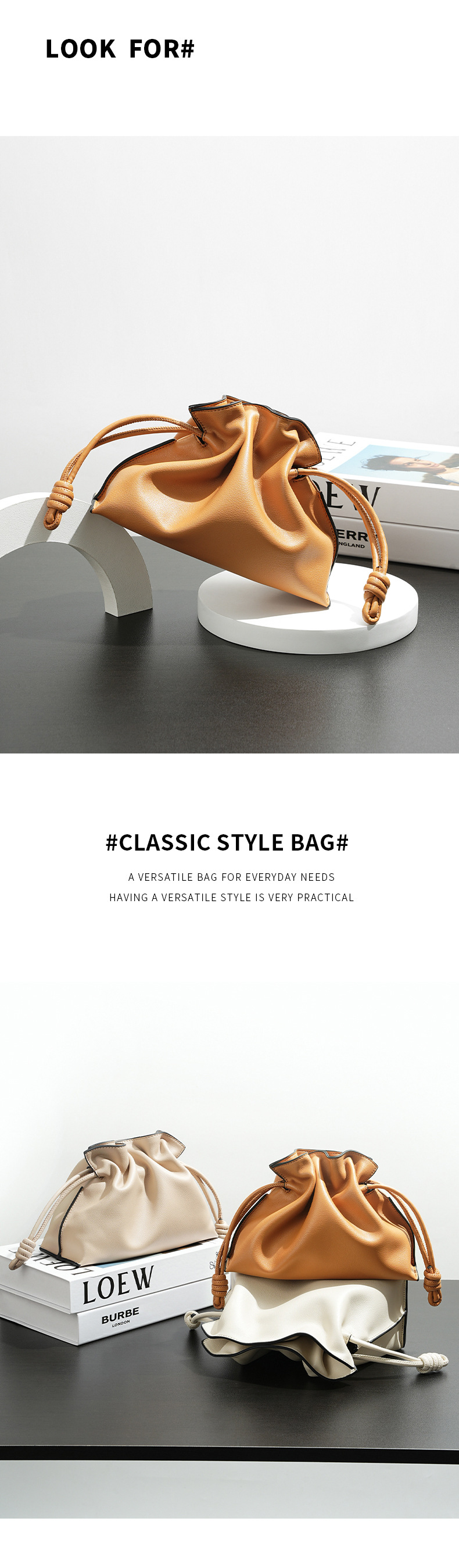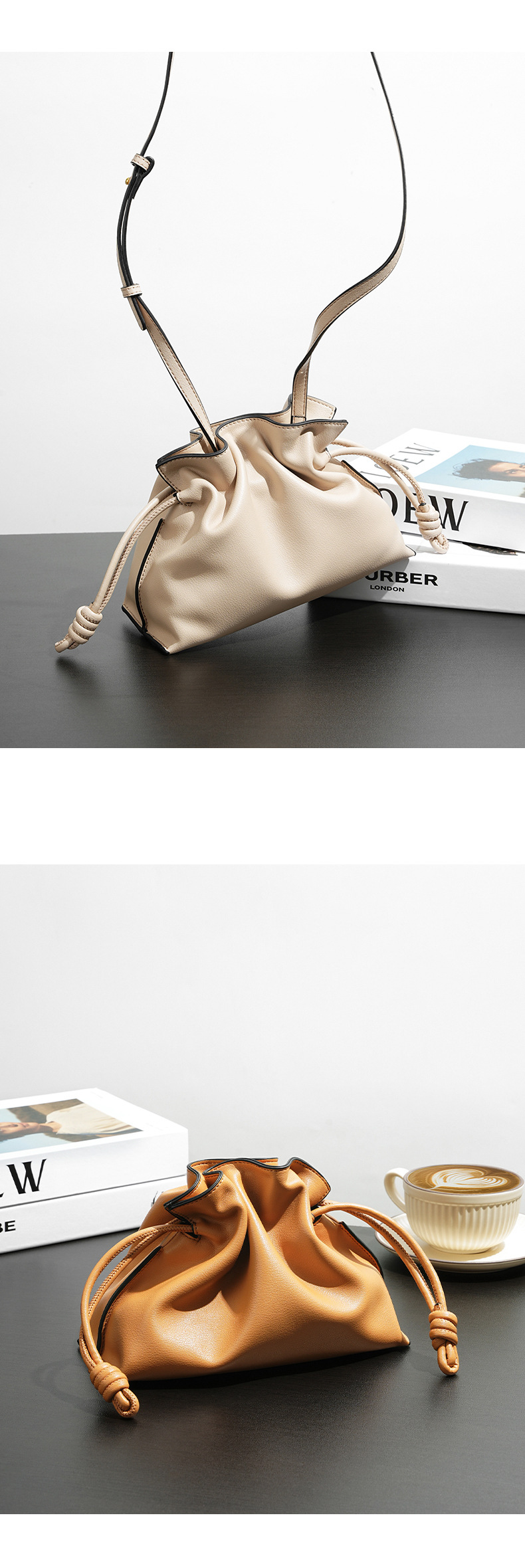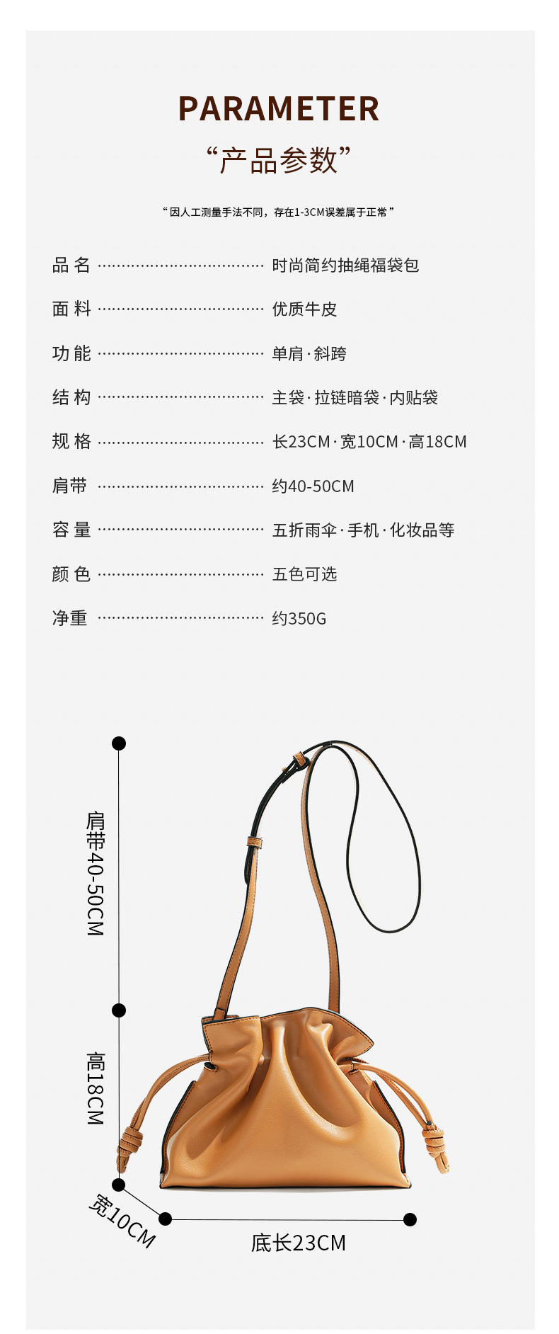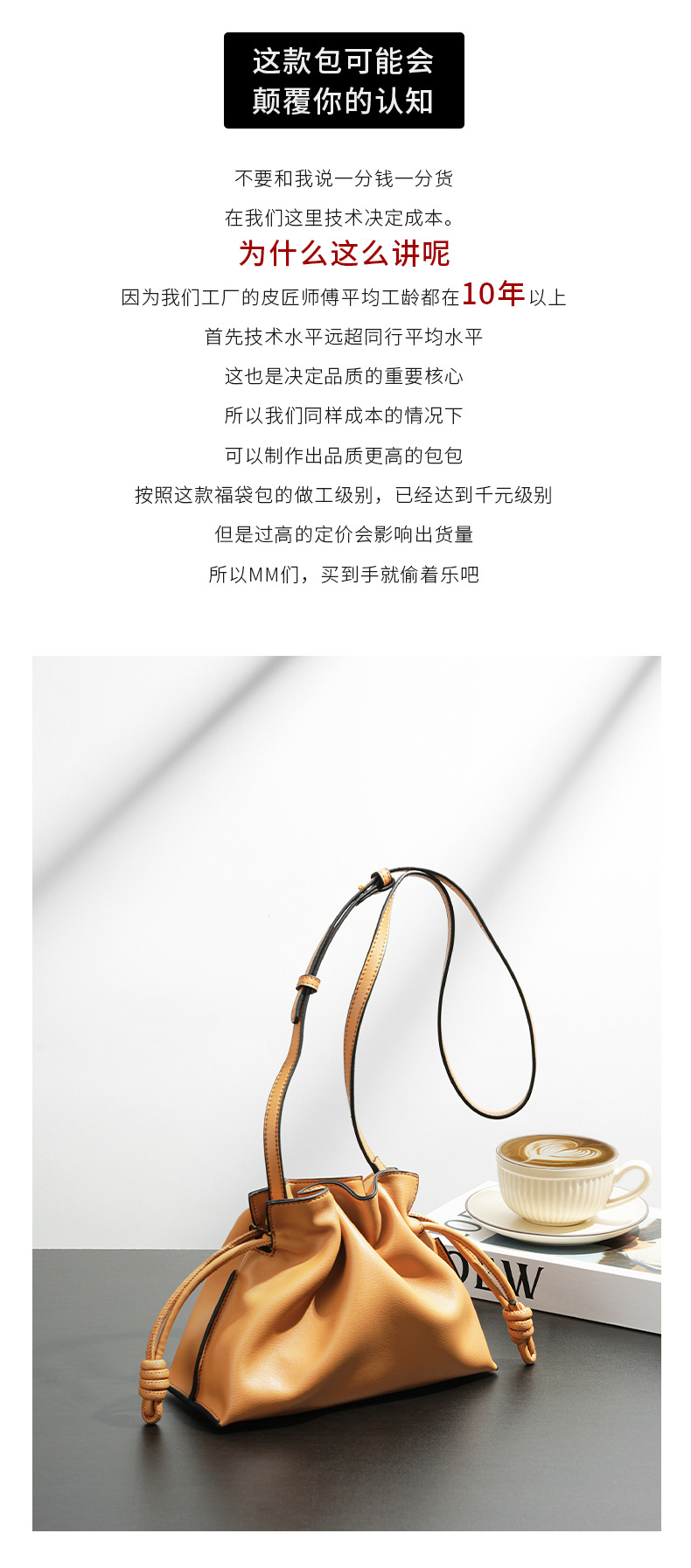 秋冬经典Flamenco时尚福袋云朵包 真牛皮抽绳单肩斜挎小水桶女包