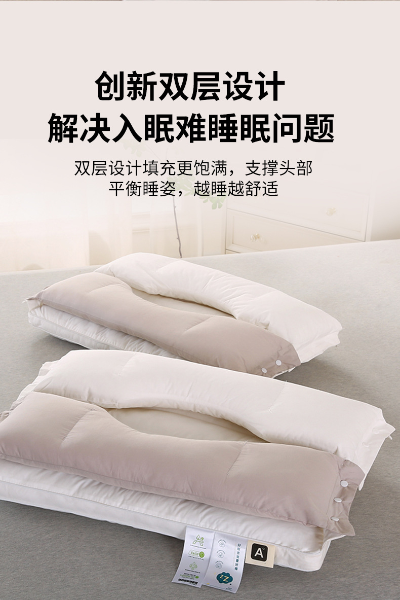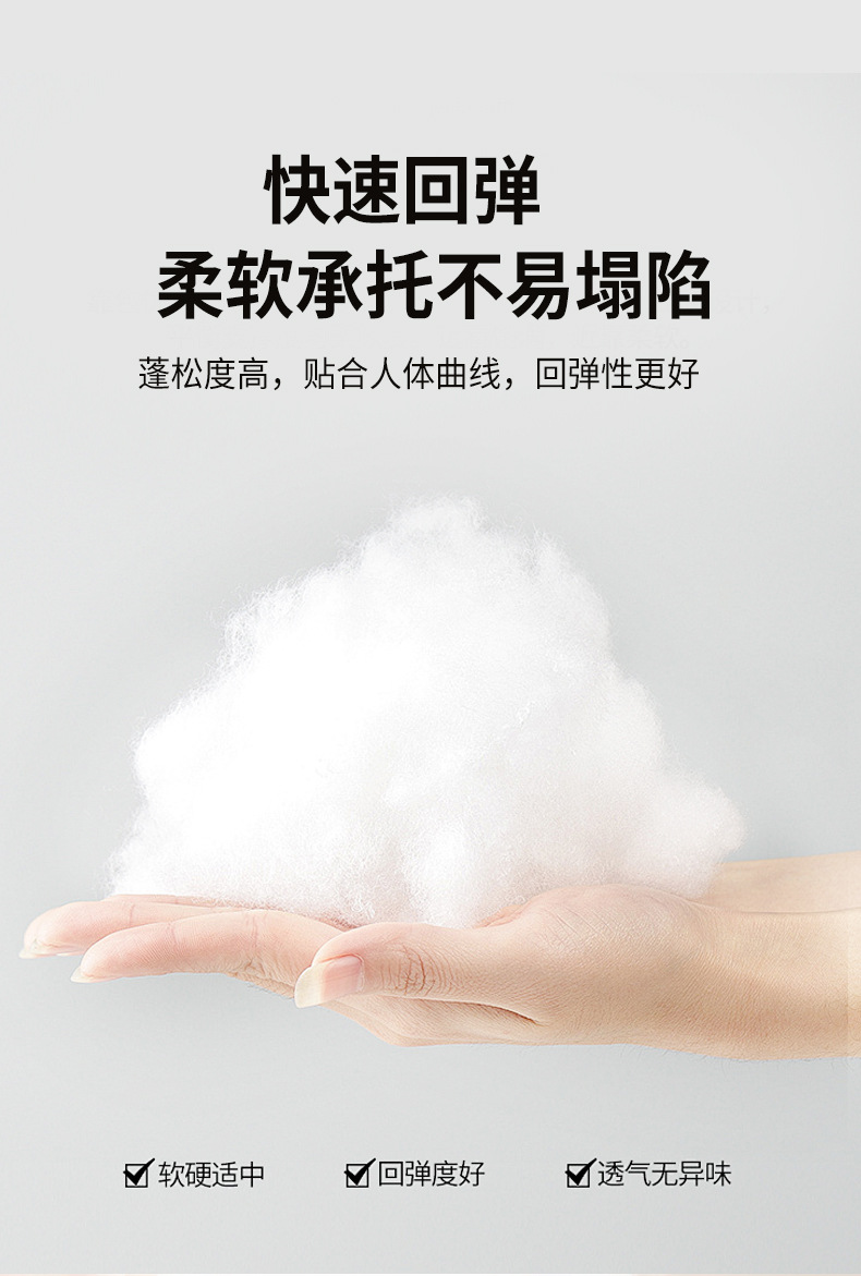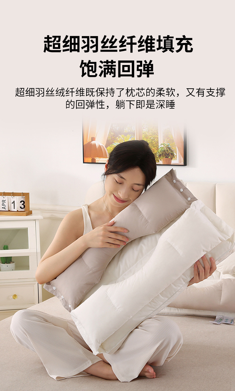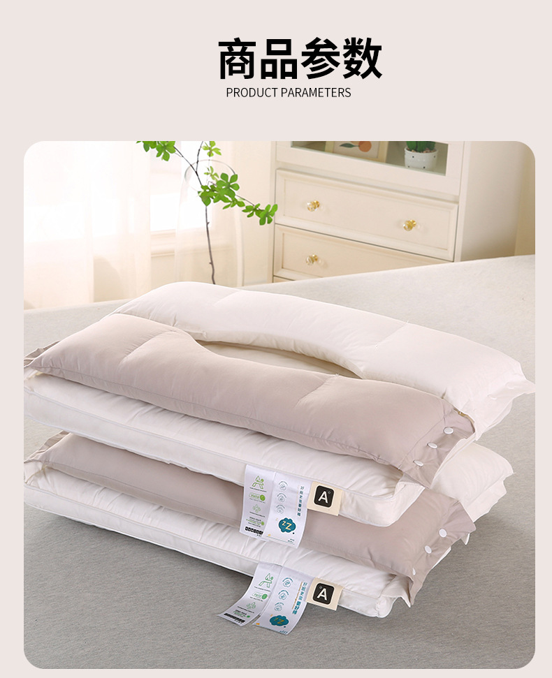 3-in-1 목 보호 및 미용 효과를 제공하는 깃털섬유 코튼 베개, 순면 원단 베개심, 호텔용 싱글 베개심