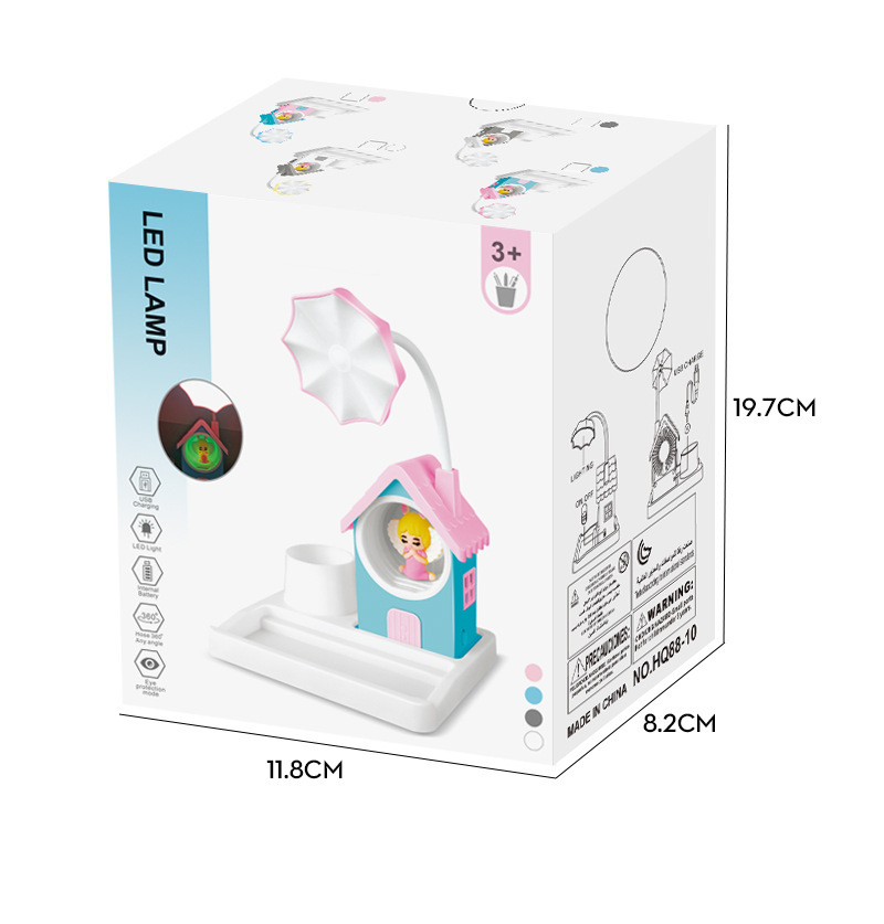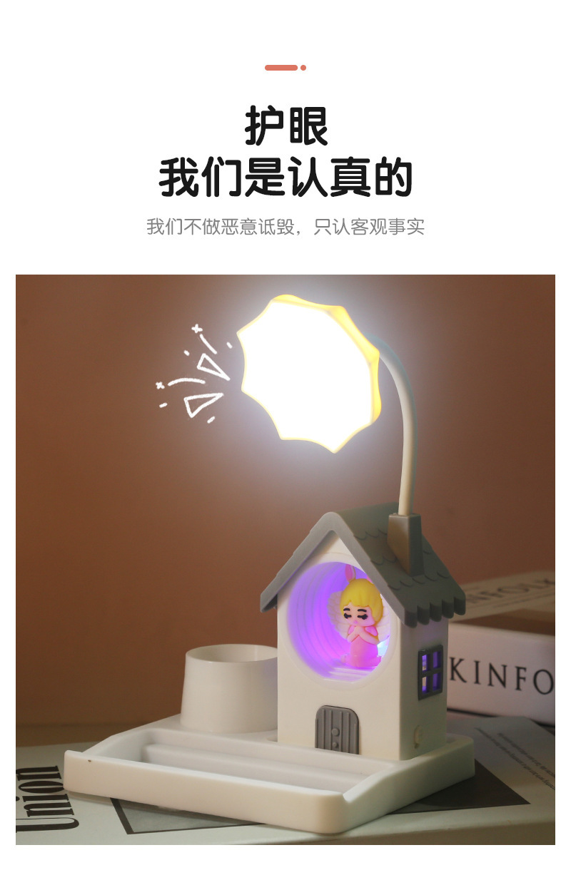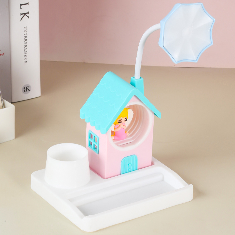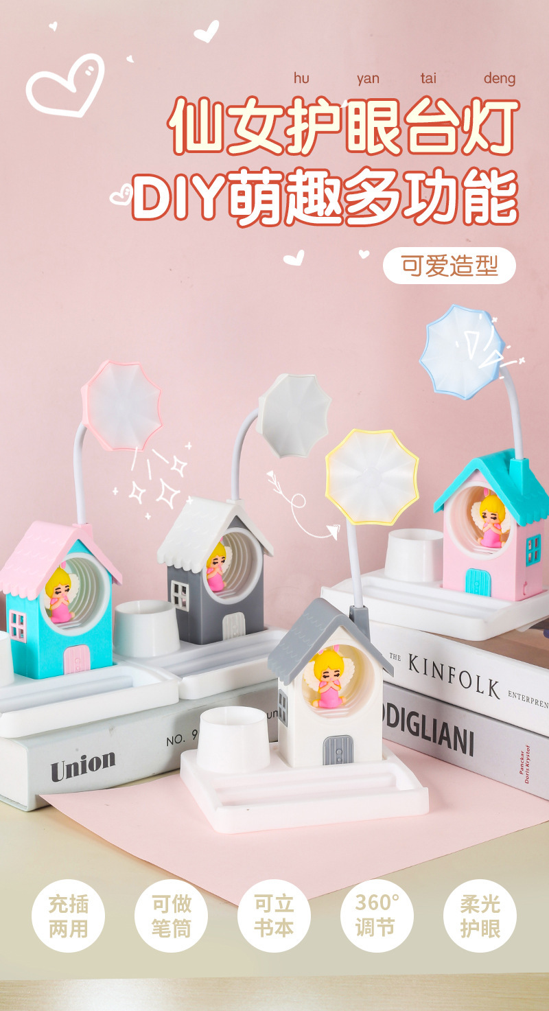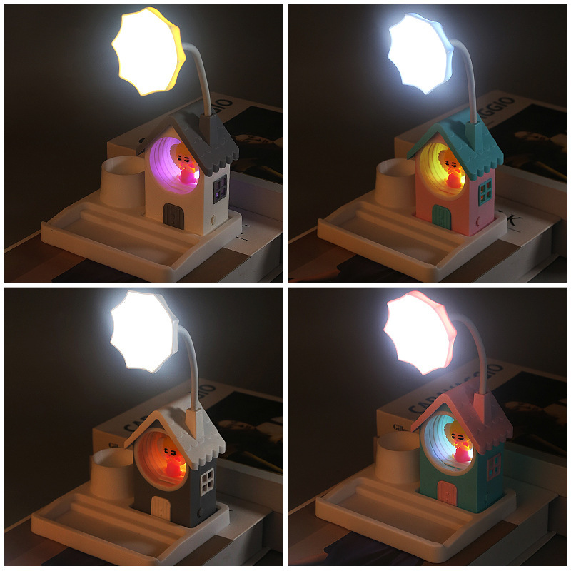 국경 새로운 만화 집 미니 usb 야간 조명 어린이 창조적 인 조정 가능한 데스크탑 학습 작은 책상 램프