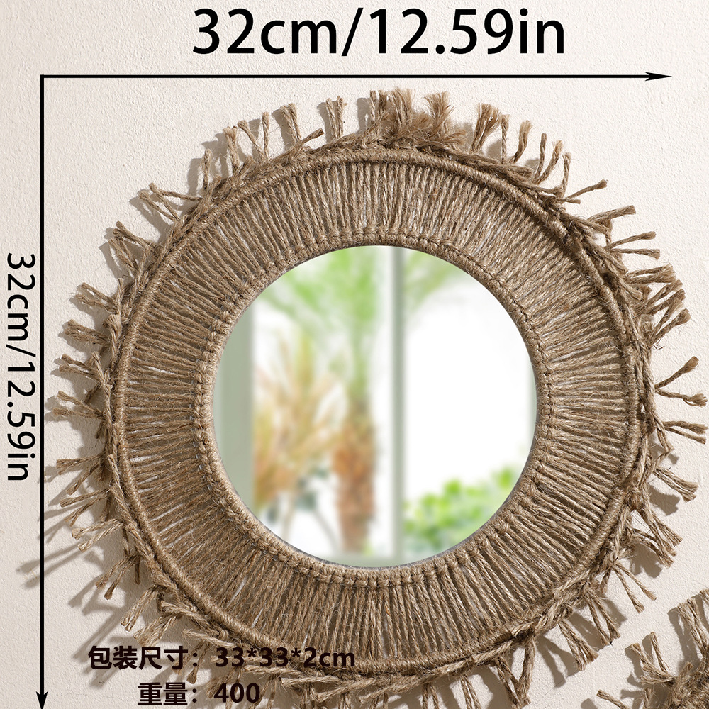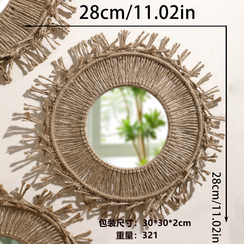 보헤미안 수제 다크 브라운 코튼 로프 짠 둥근 술 장식 간단한 거실 침실 Xuan 교수형 거울 태피스트리스토어 가기