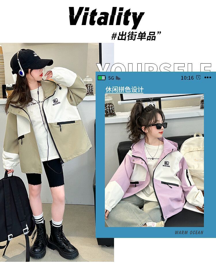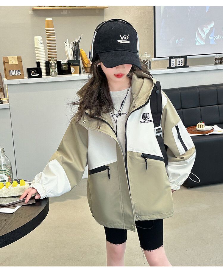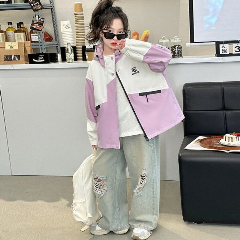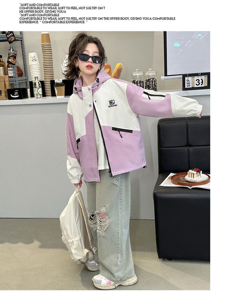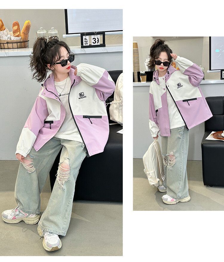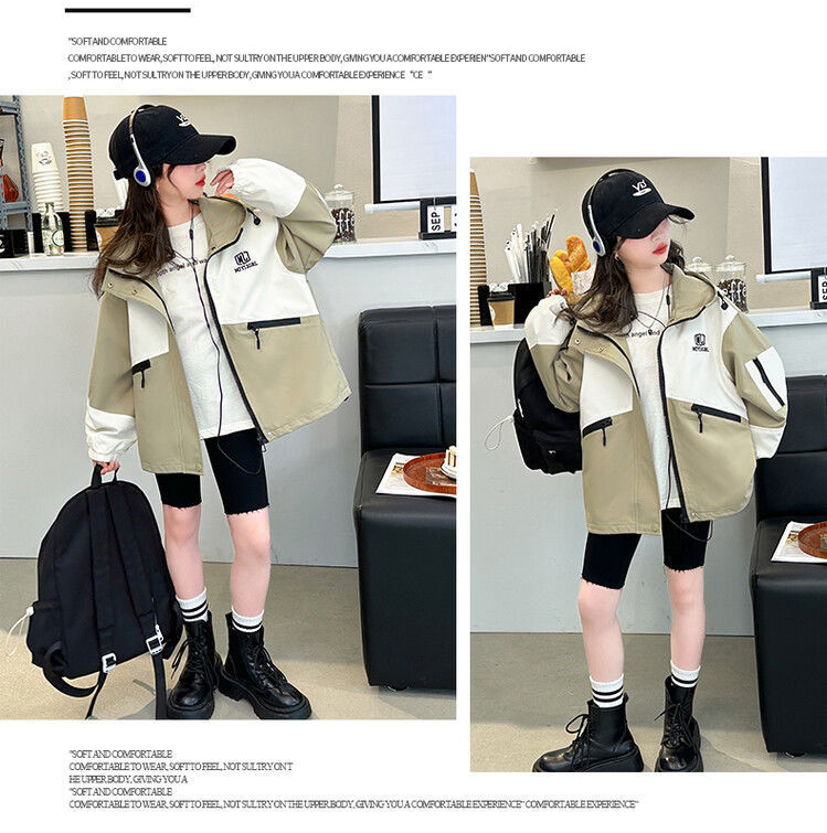 소녀의 봄과 가을 Russant 2024 재킷 새로운 스타일 한국 스타일 유행 어린이 후드 걸스 재킷 탑