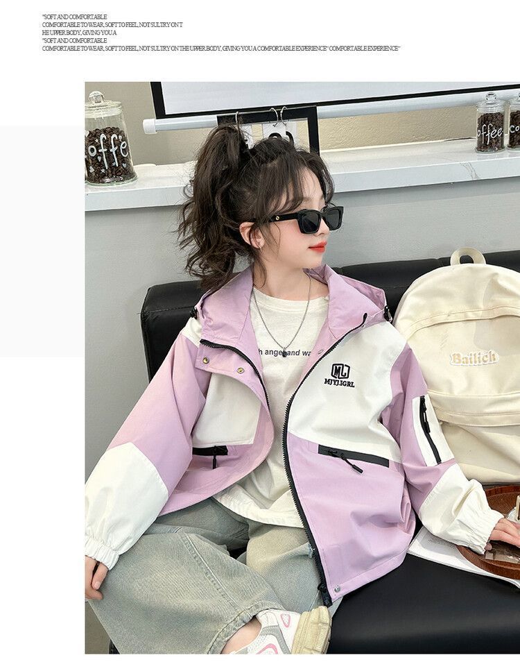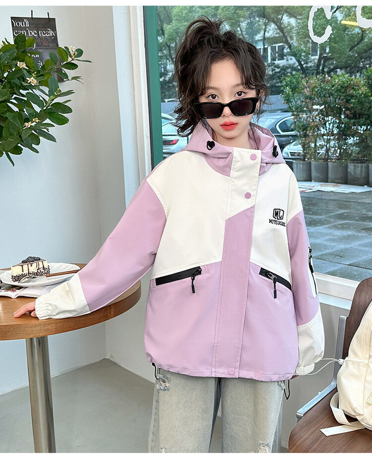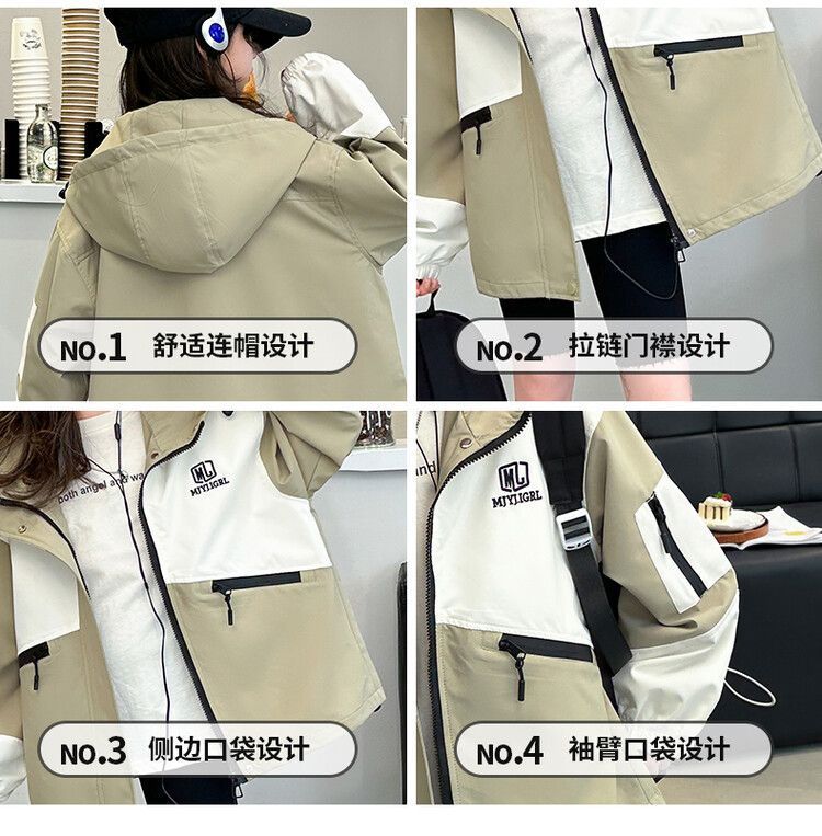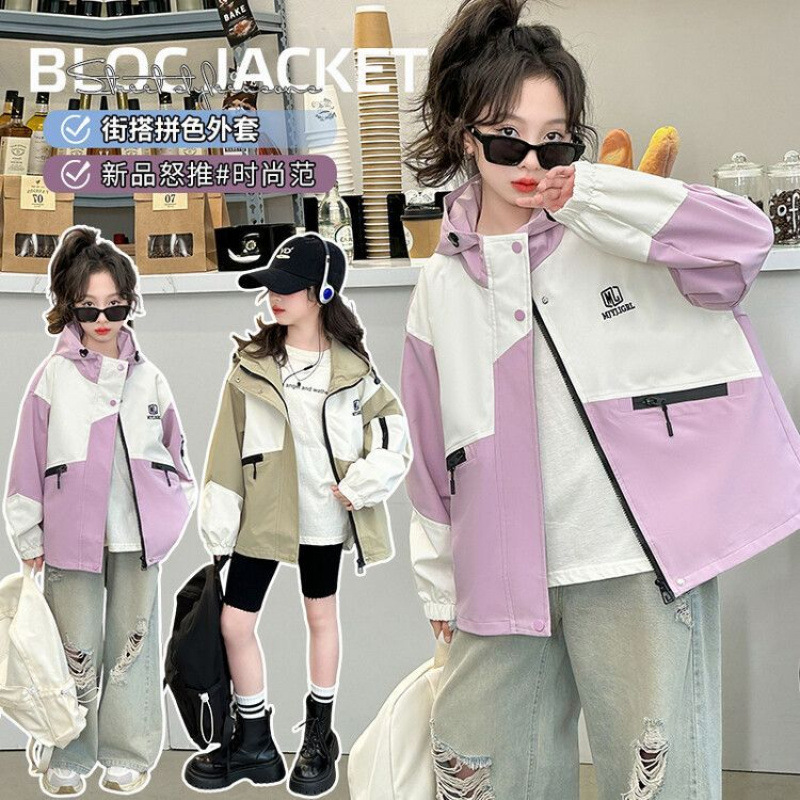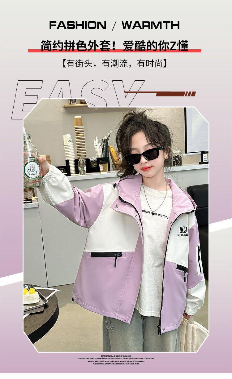 소녀의 봄과 가을 Russant 2024 재킷 새로운 스타일 한국 스타일 유행 어린이 후드 걸스 재킷 탑