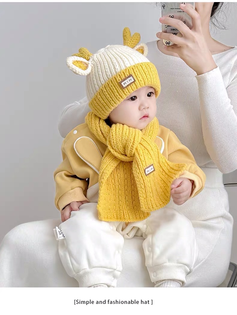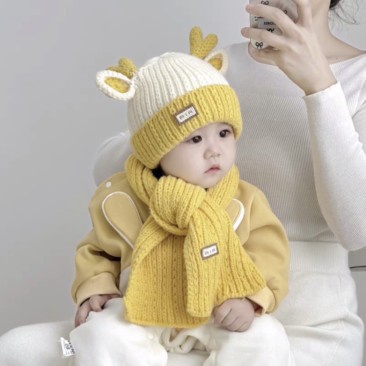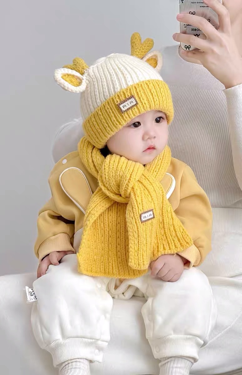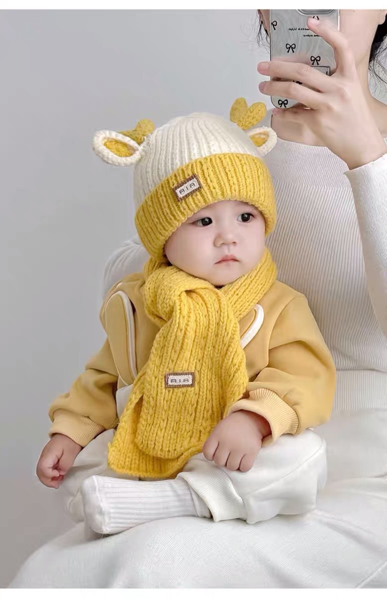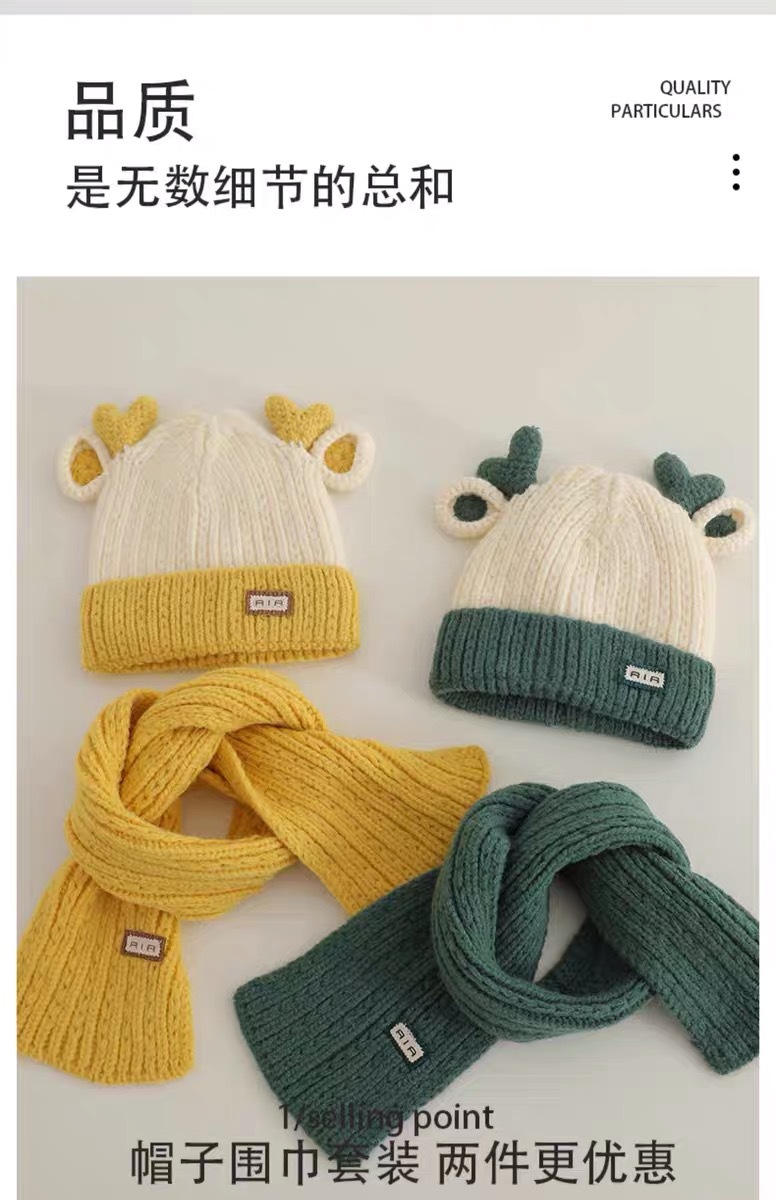 아기 모자 가을과 겨울 새로운 남성과 여성 어린이 니트 울 모자 스카프 투피스 따뜻한 아기 귀 보호 캡