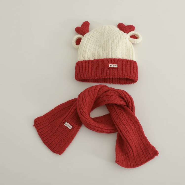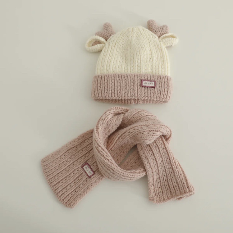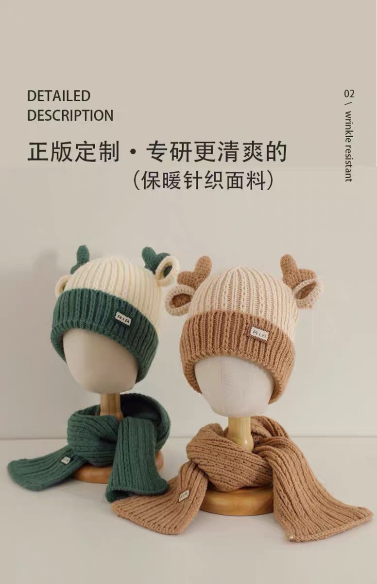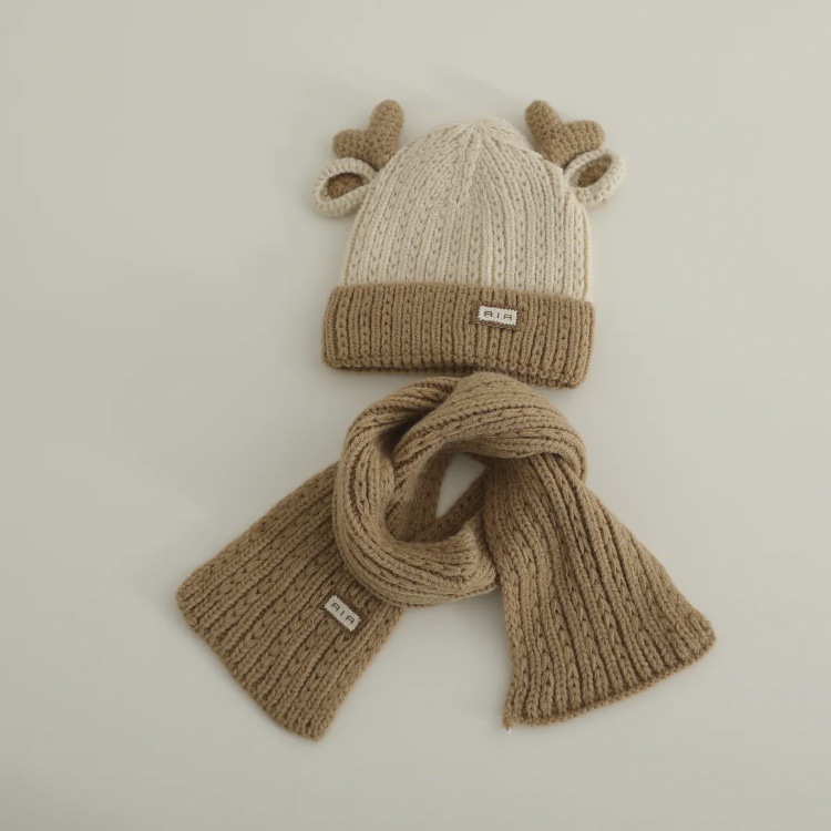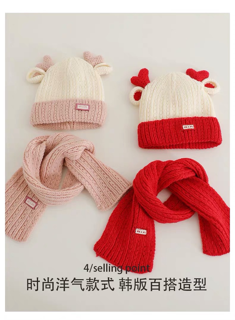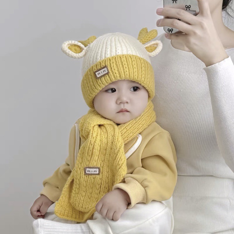 아기 모자 가을과 겨울 새로운 남성과 여성 어린이 니트 울 모자 스카프 투피스 따뜻한 아기 귀 보호 캡