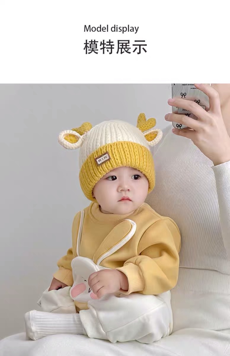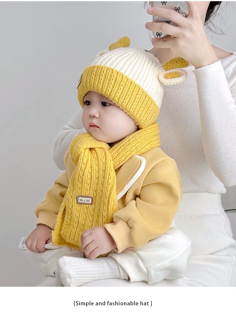 아기 모자 가을과 겨울 새로운 남성과 여성 어린이 니트 울 모자 스카프 투피스 따뜻한 아기 귀 보호 캡스토어 가기