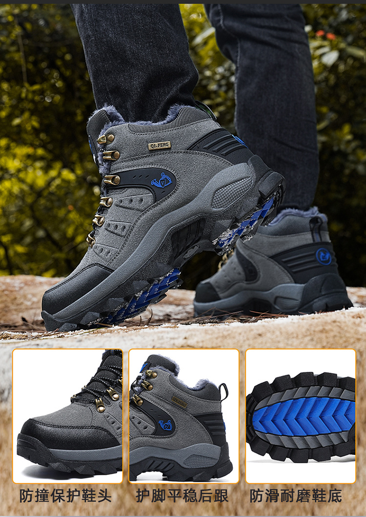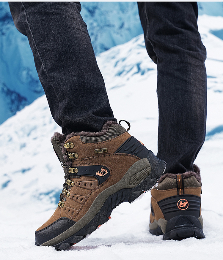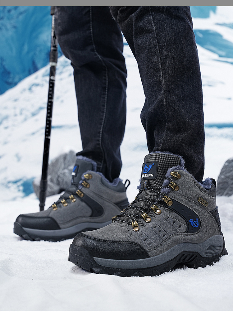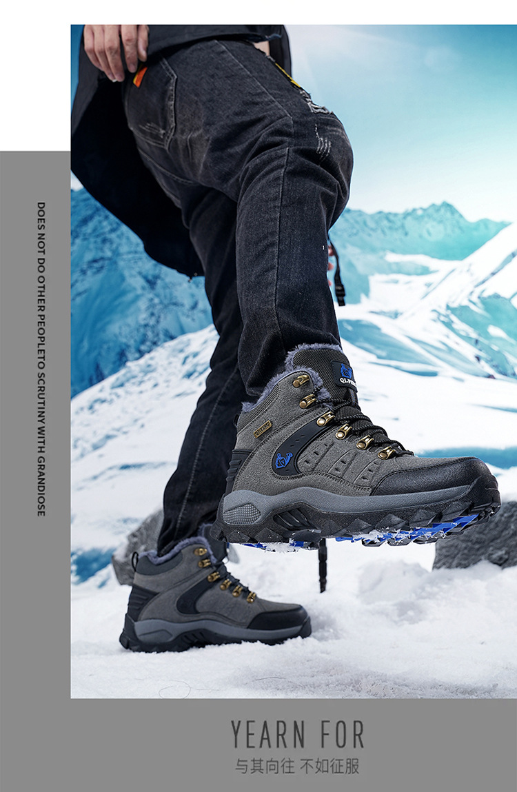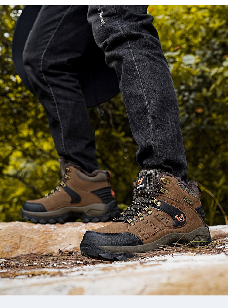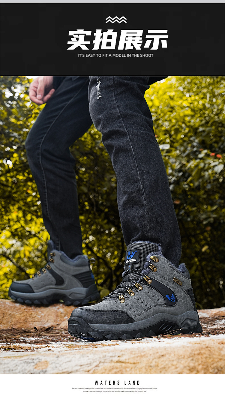 국경 간 가을과 겨울 따뜻한 커플 중급 야외 등산 신발 방수 미끄럼 방지 두꺼운 밑창 내마모성 캐주얼 여행 신발