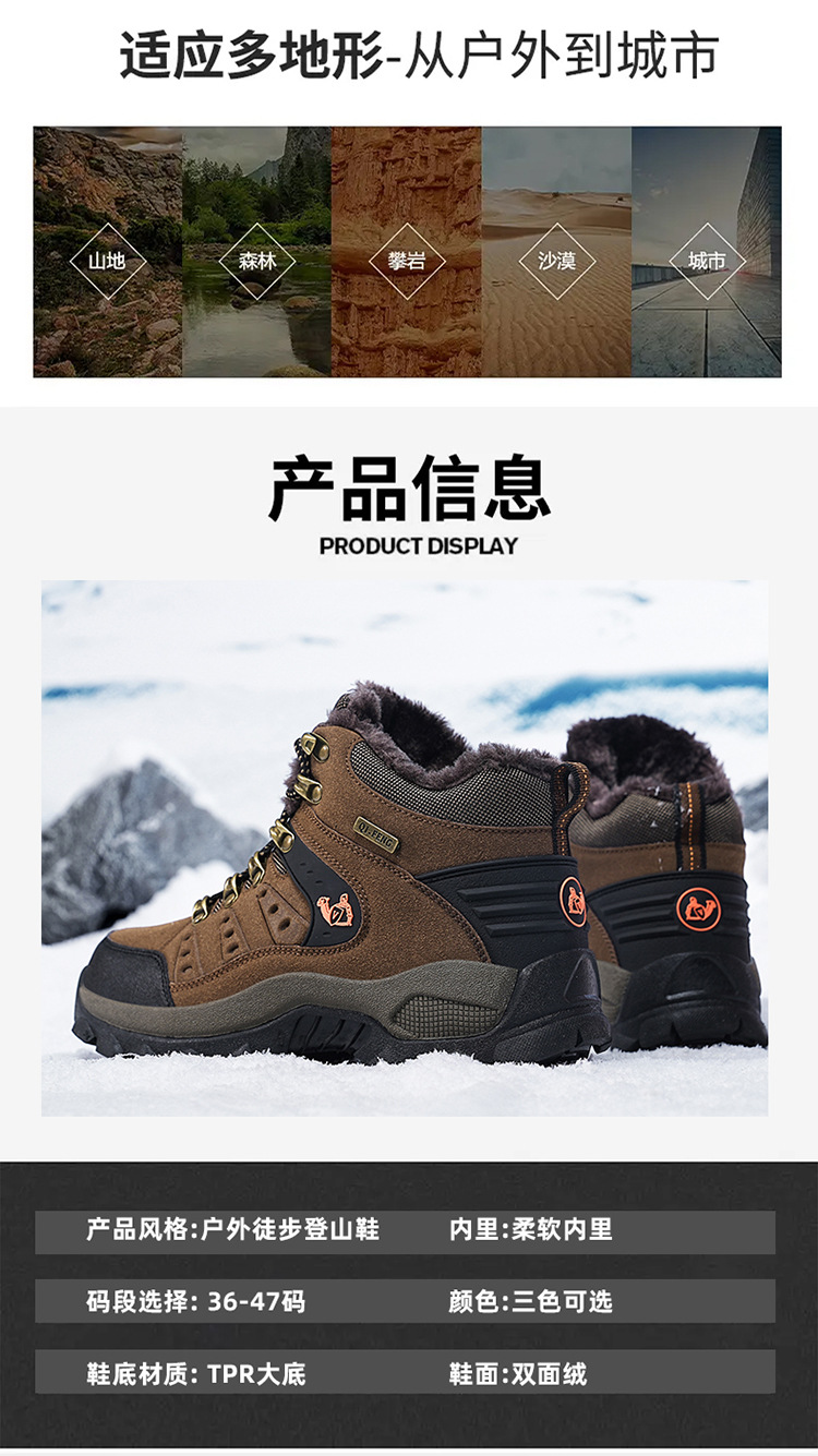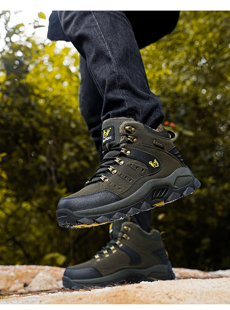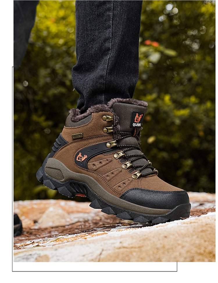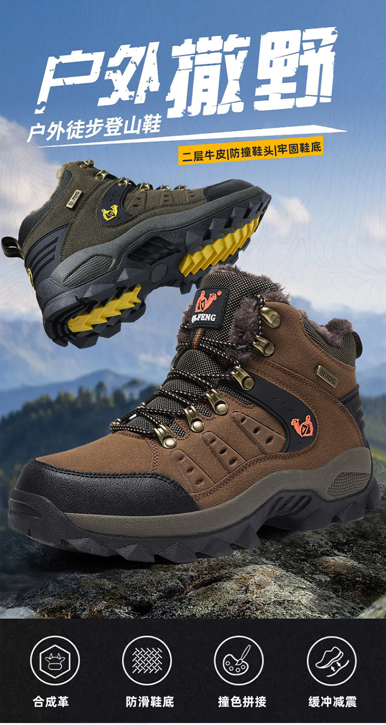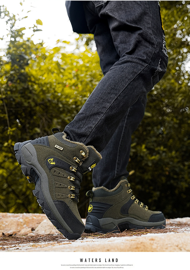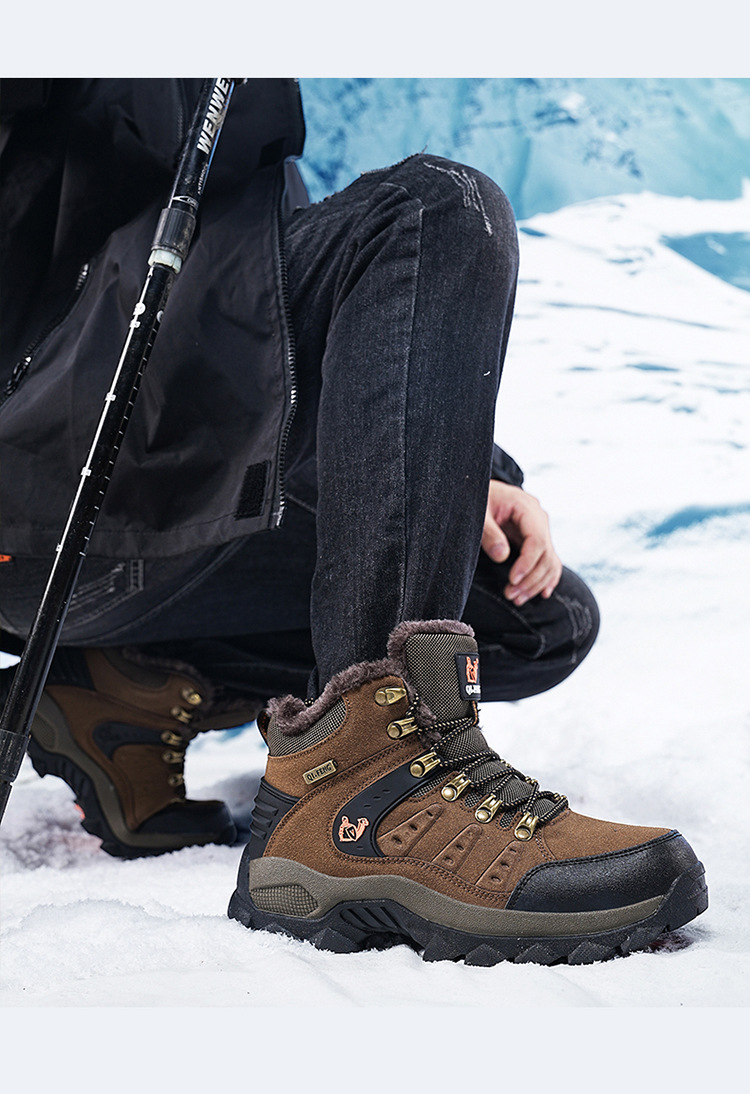 국경 간 가을과 겨울 따뜻한 커플 중급 야외 등산 신발 방수 미끄럼 방지 두꺼운 밑창 내마모성 캐주얼 여행 신발