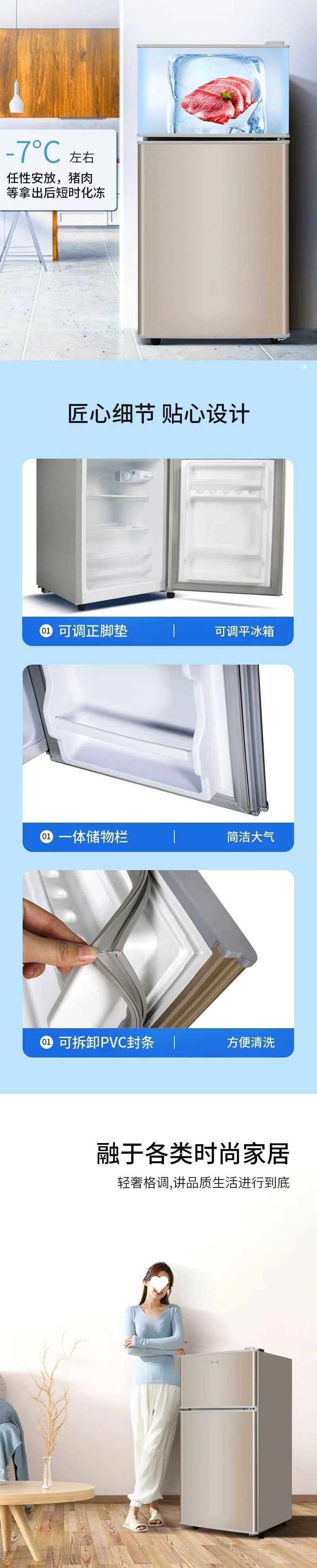 소형 냉장고 소형 주택 임대 기숙사 사무실 냉장 더블 오픈 3 도어 냉장고 우표 도매