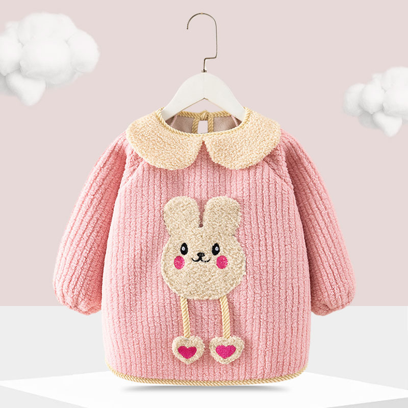 아기 작업복 남성 가을과 겨울은 외국 스타일 어린이 먹는 보호 의류 앞치마가 두껍게 기모 테디 벨벳 아기 턱받이를 착용합니다.
