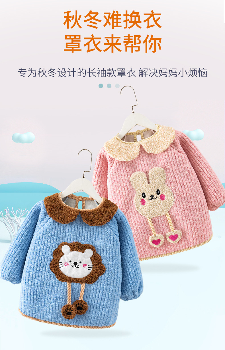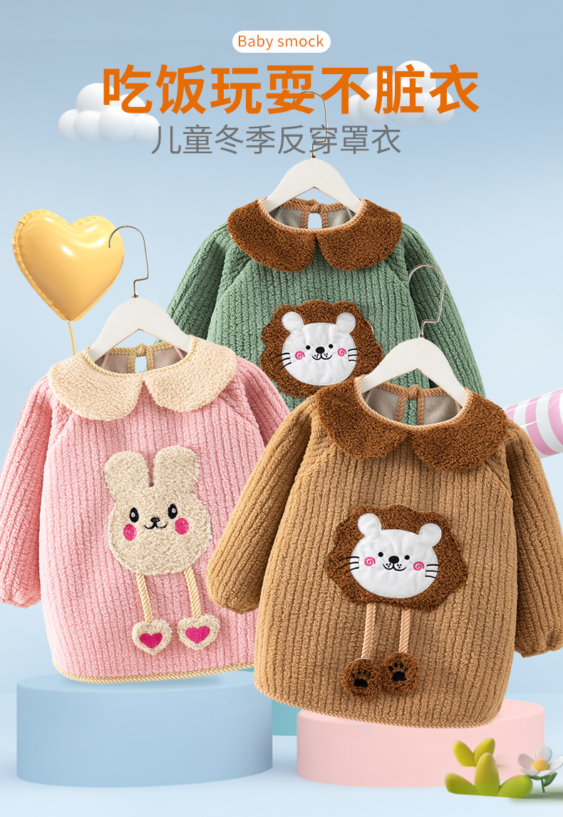 아기 작업복 남성 가을과 겨울은 외국 스타일 어린이 먹는 보호 의류 앞치마가 두껍게 기모 테디 벨벳 아기 턱받이를 착용합니다.스토어 가기