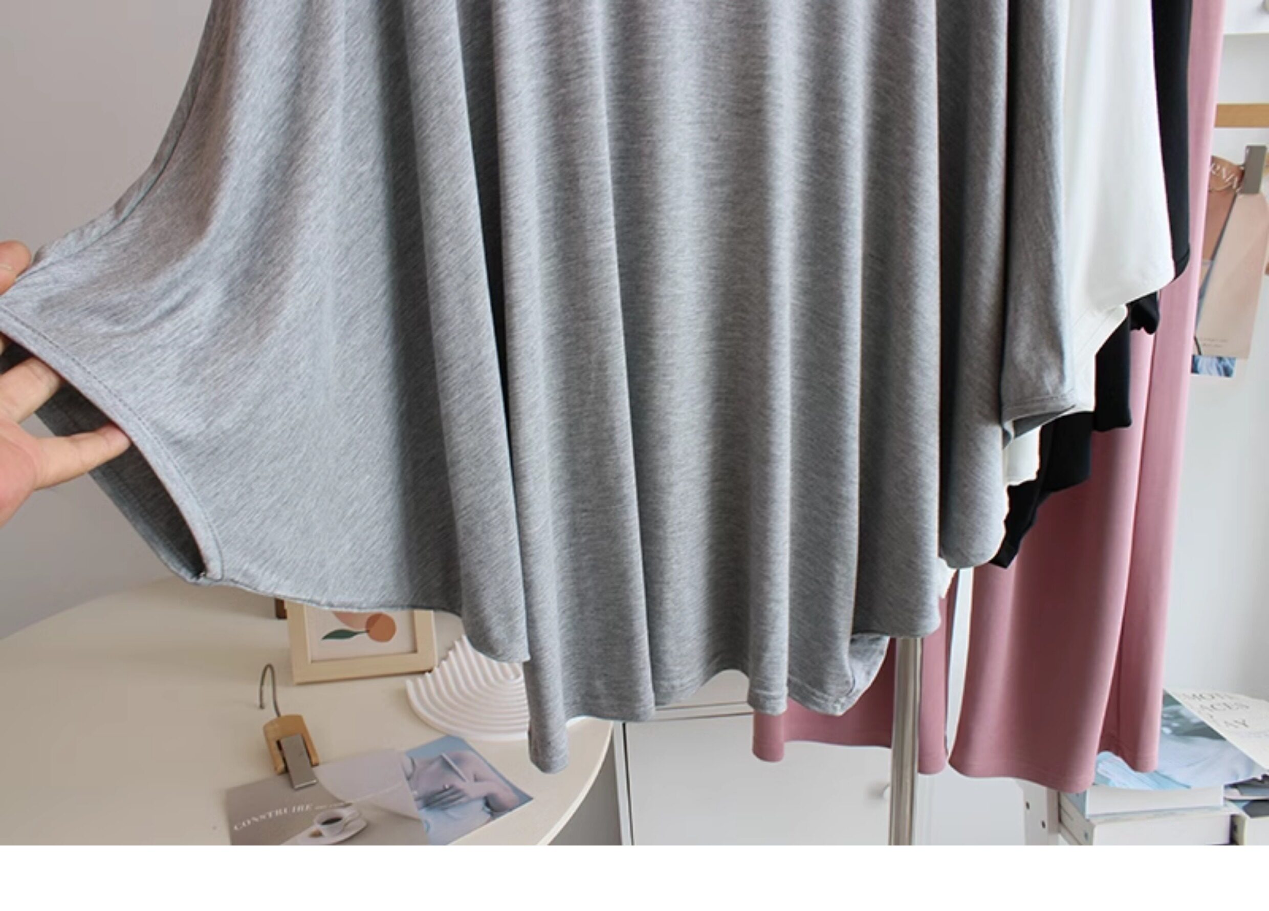 큰 목 모달 케이프 배팅 셔츠 여성용 느슨한 대형 플레이트 어깨 오픈 소매 티셔츠 랜턴 슬리브 댄스 옷스토어 가기