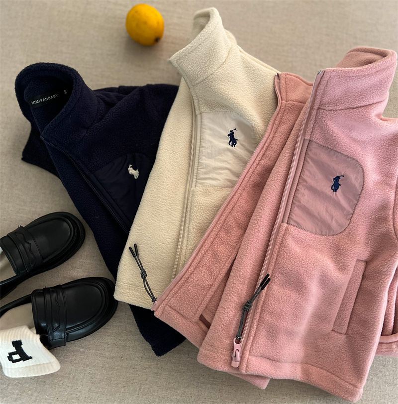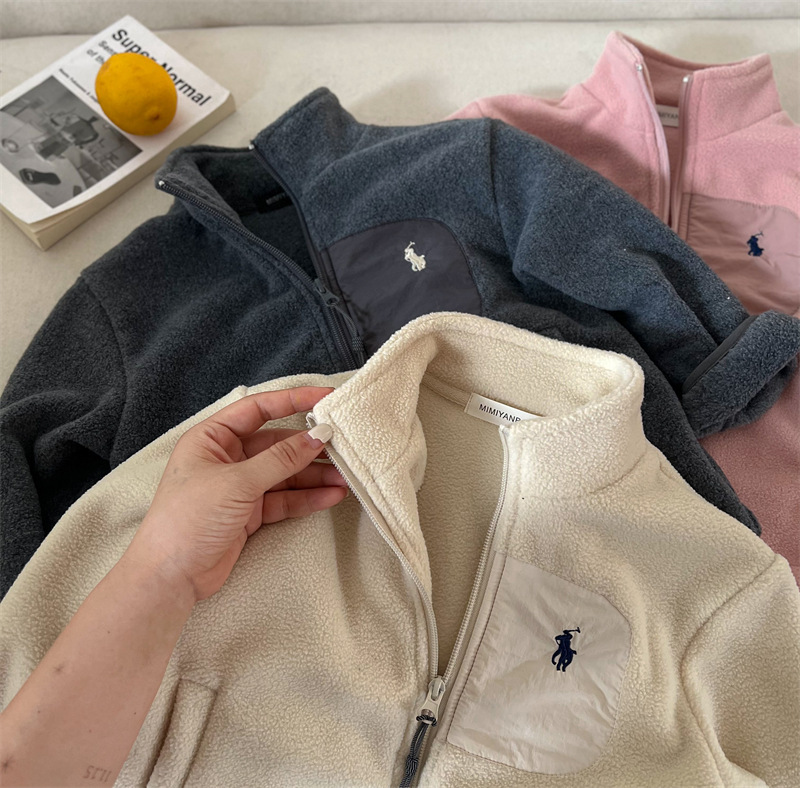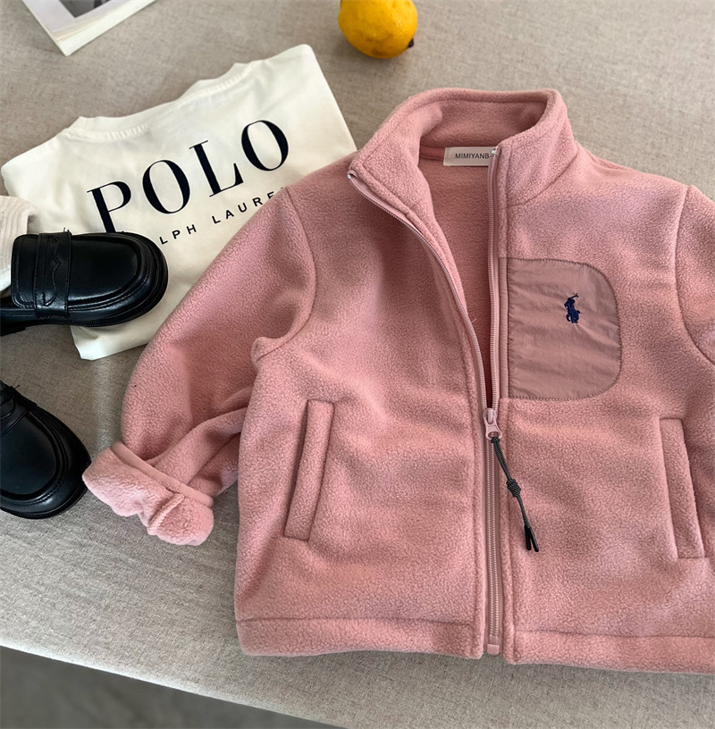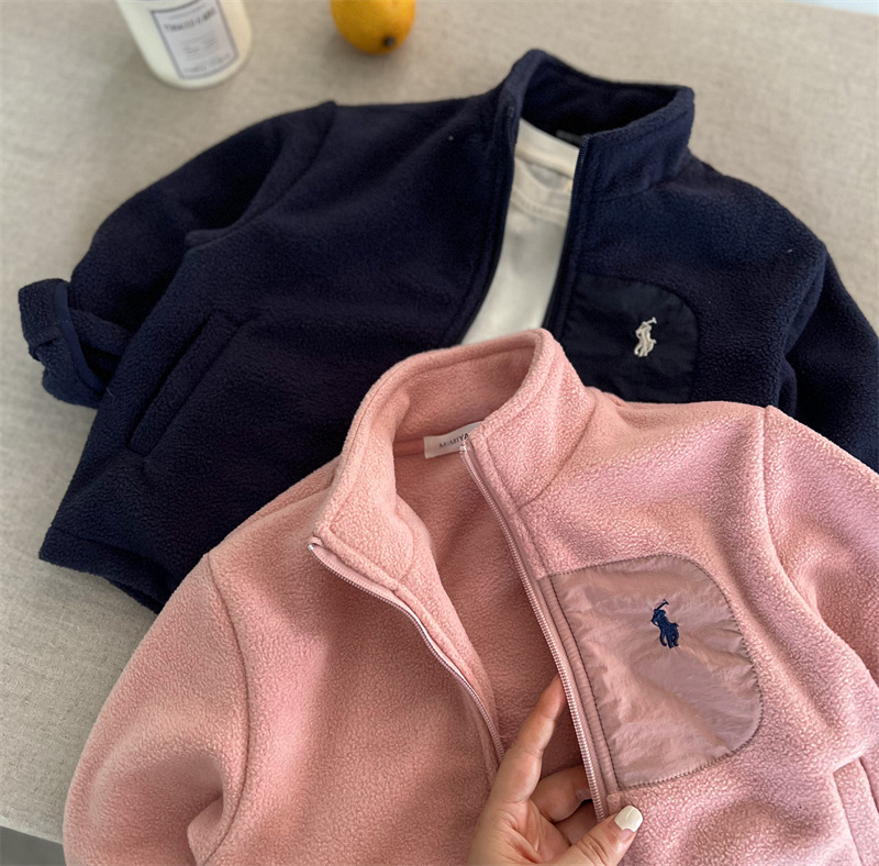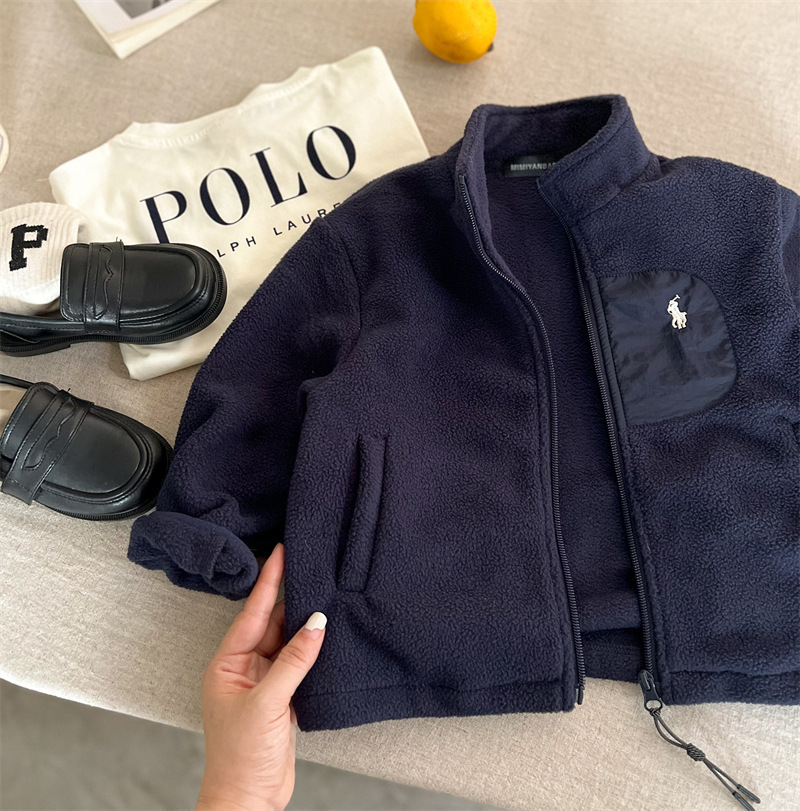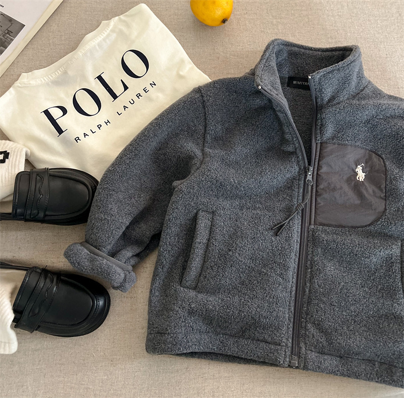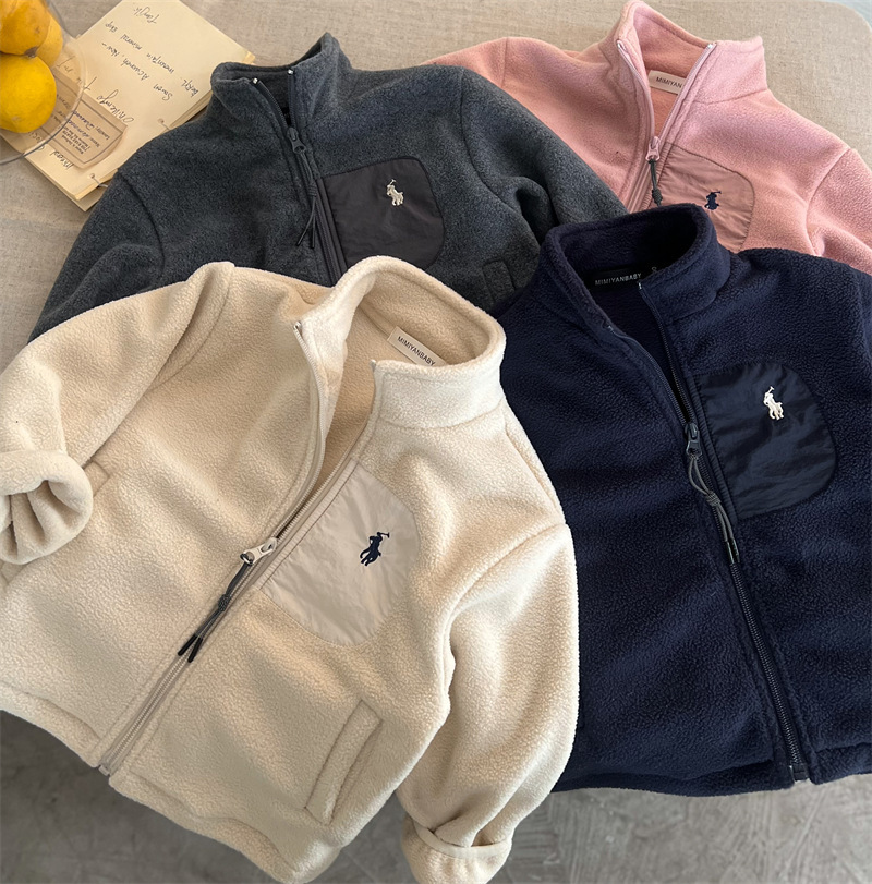 재고 어린이 코트 2024 가을과 겨울 새로운 남녀 아동복 자수 포켓 재킷 아기 양고기 울 코트 두꺼운