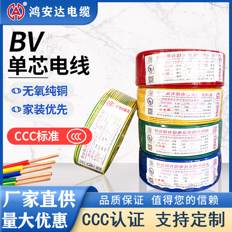 국가 표준 무산소 구리 코어 BV1 1.5 2.5 4 6 10 16 평방 홈 장식 와이어 및 케이블 공장 콘센트스토어 가기