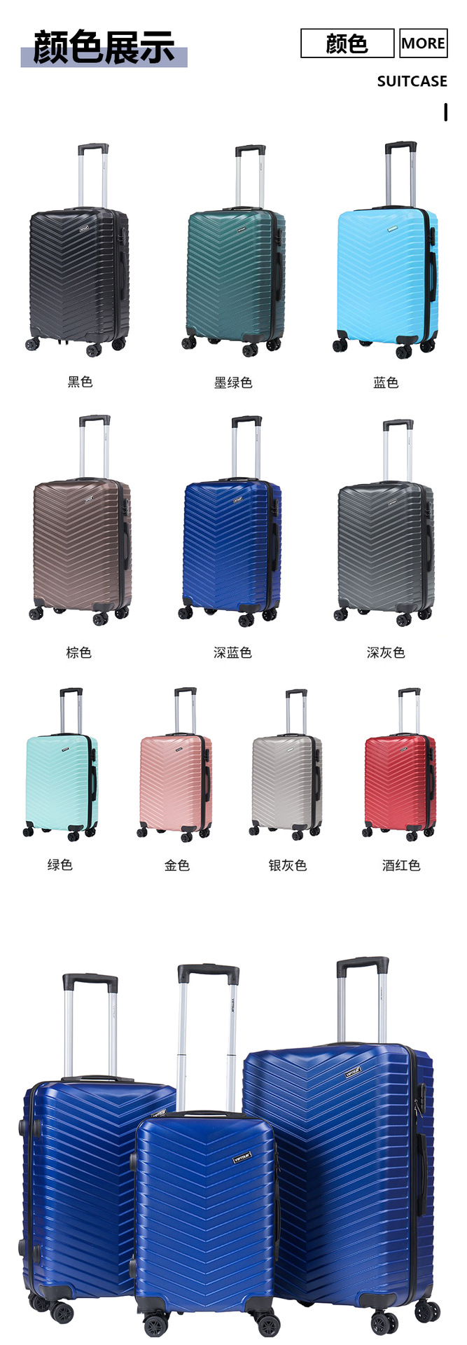 제조 업체 도매 대외 무역 ABS 가방 범용 휠 가방 3 피스 세트 탑승 케이스 암호 트롤리 가방