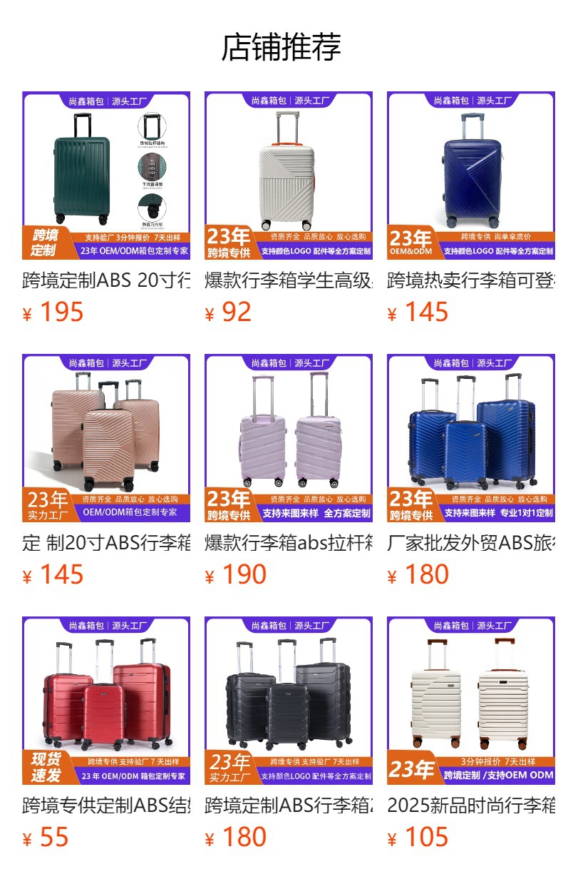 제조 업체 도매 대외 무역 ABS 가방 범용 휠 가방 3 피스 세트 탑승 케이스 암호 트롤리 가방스토어 가기
