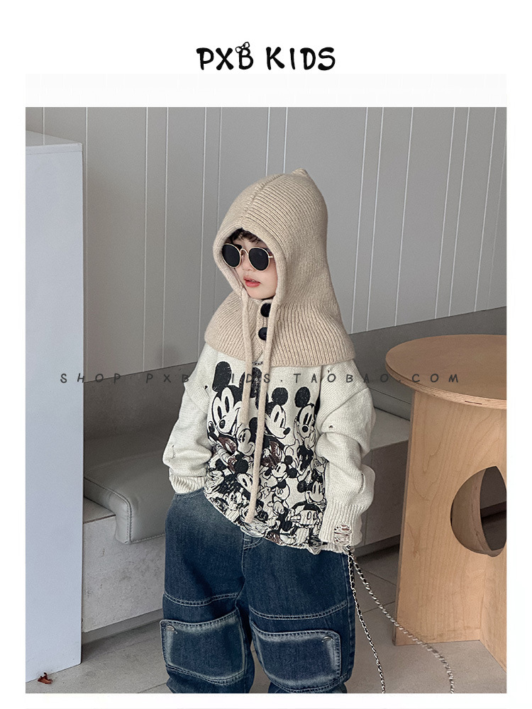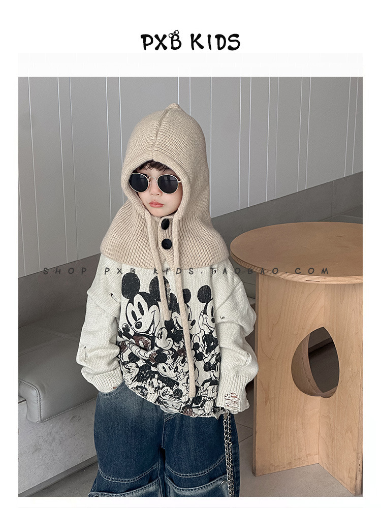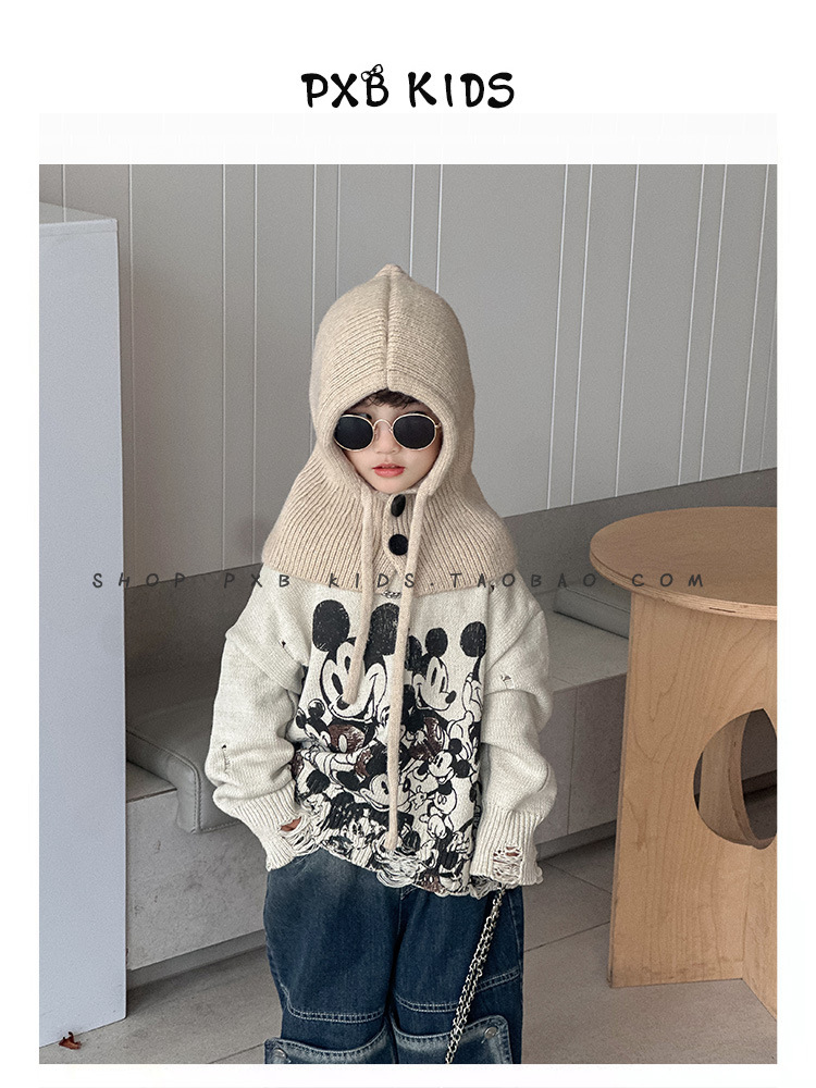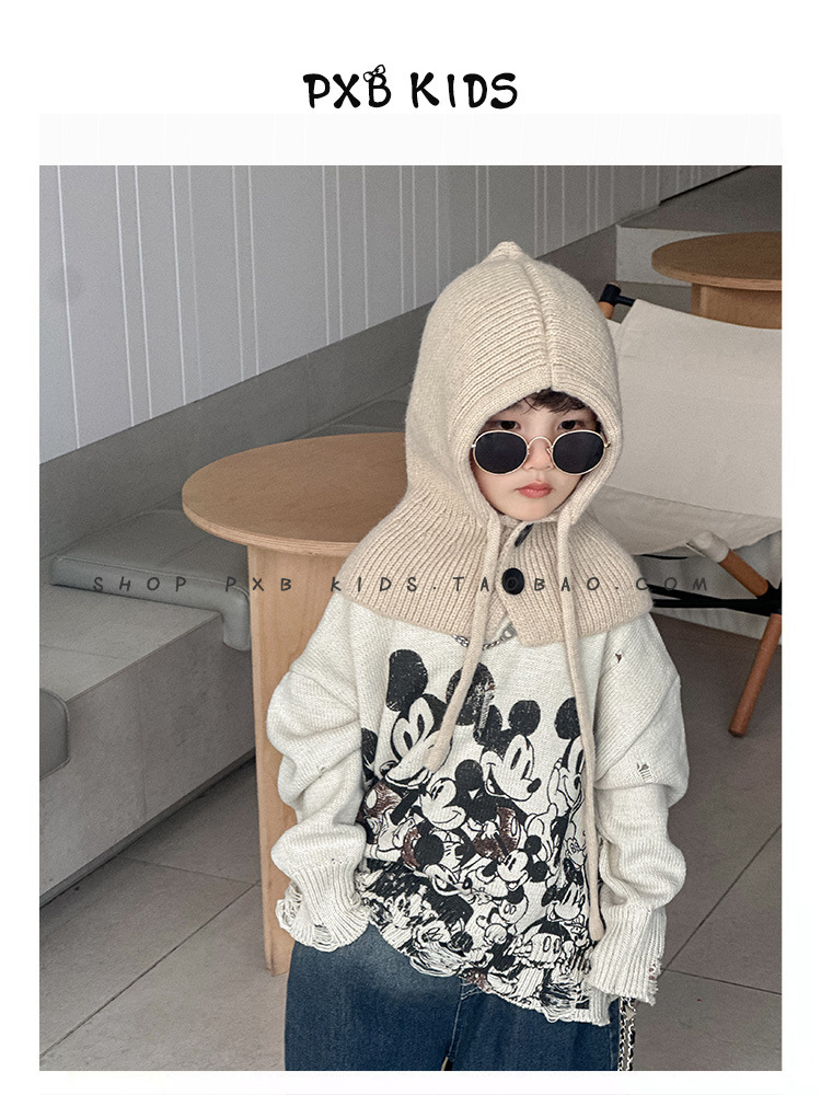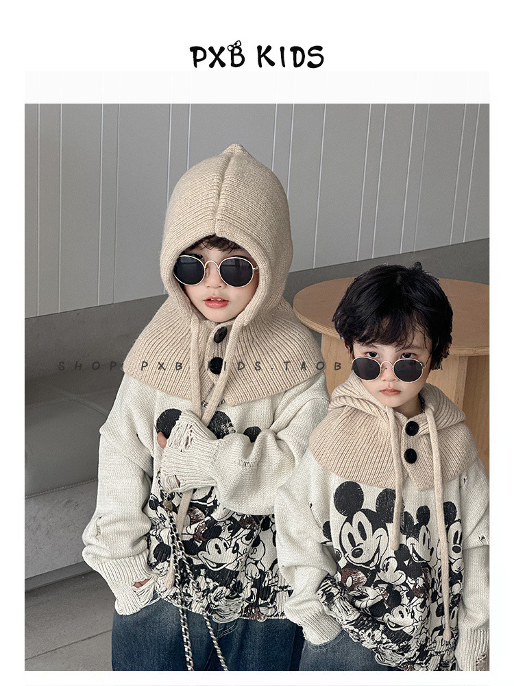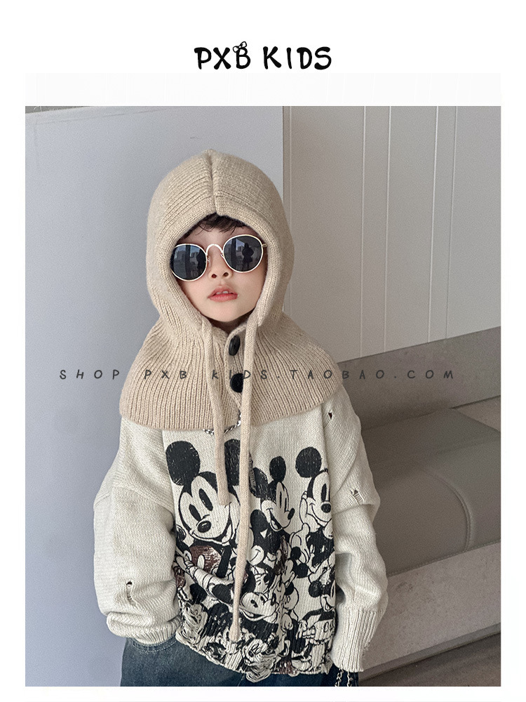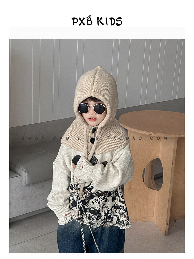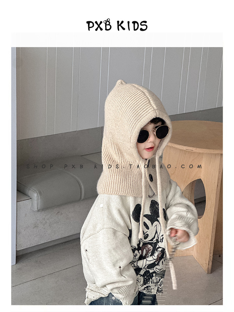 어린이 모자 스카프 통합 모자 가을과 겨울 방풍 따뜻한 니트 모자 소년과 소녀 아기 솔리드 컬러 올매치 목도리 모자