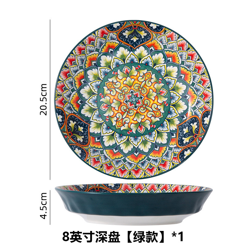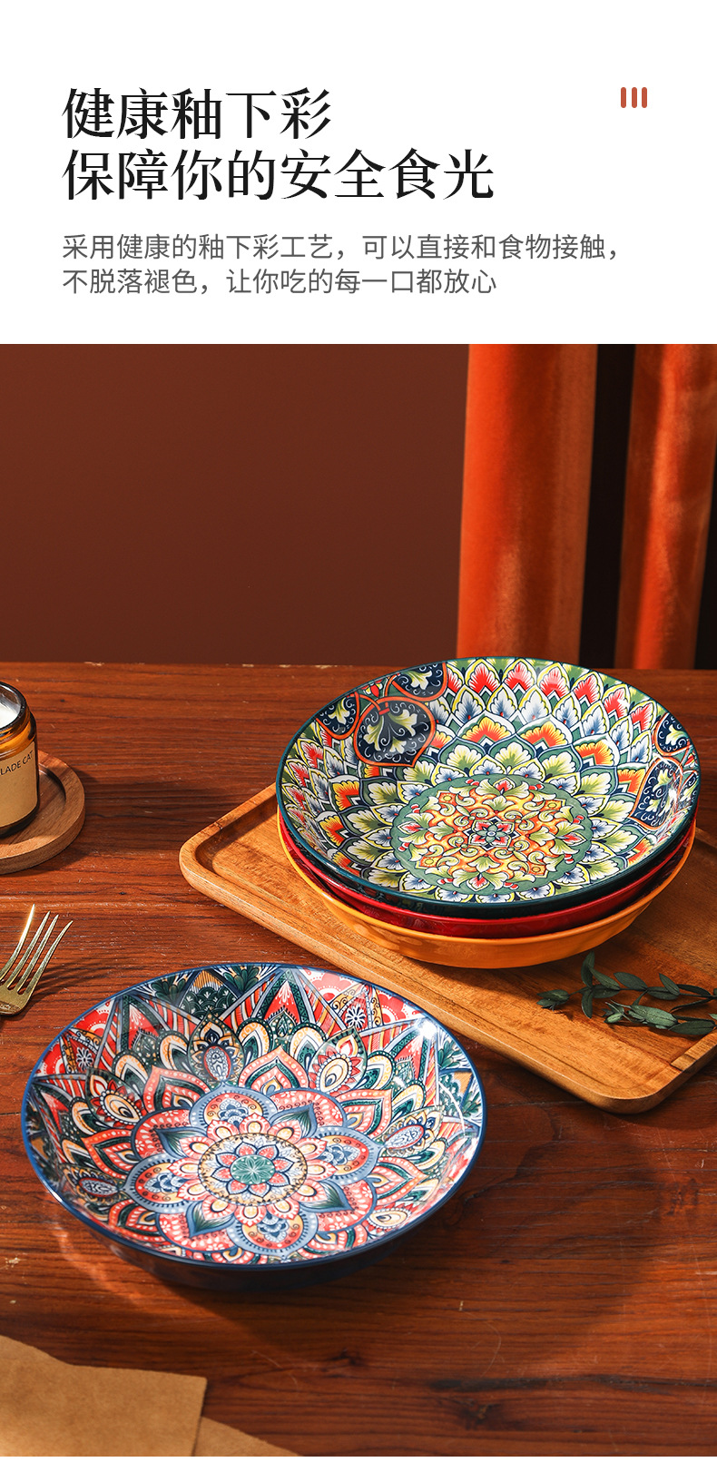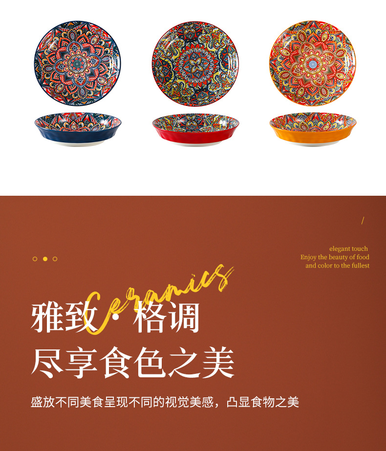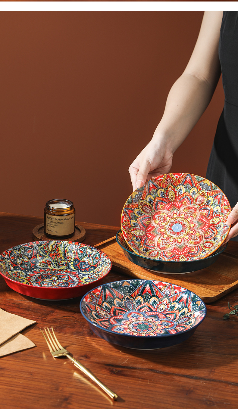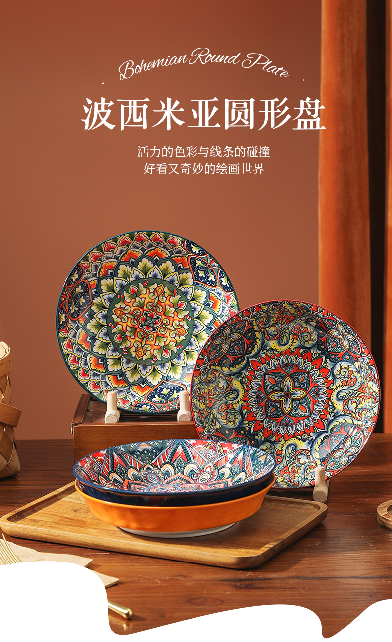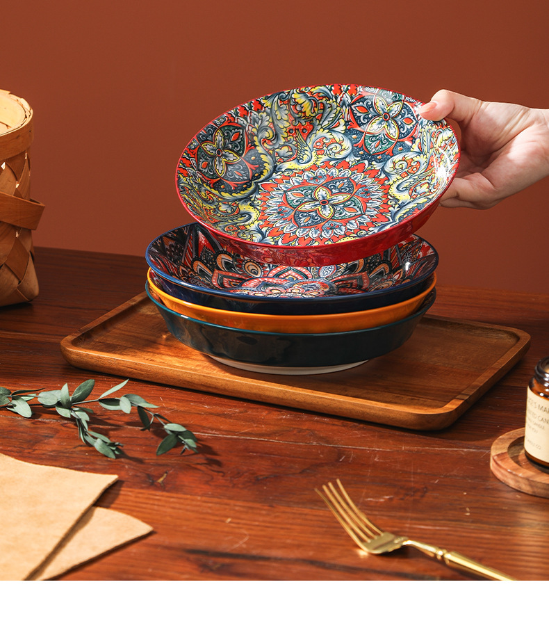 보헤미안 스타일 세라믹 접시 크로스보더 고가치 접시 가정용 새 접시 접시 언더글레이즈 컬러 디너 접시 깊은 접시 접시