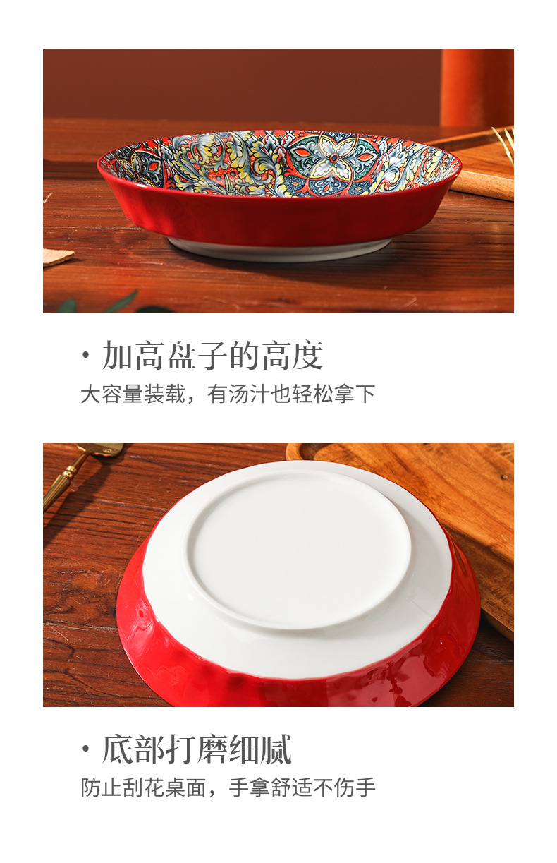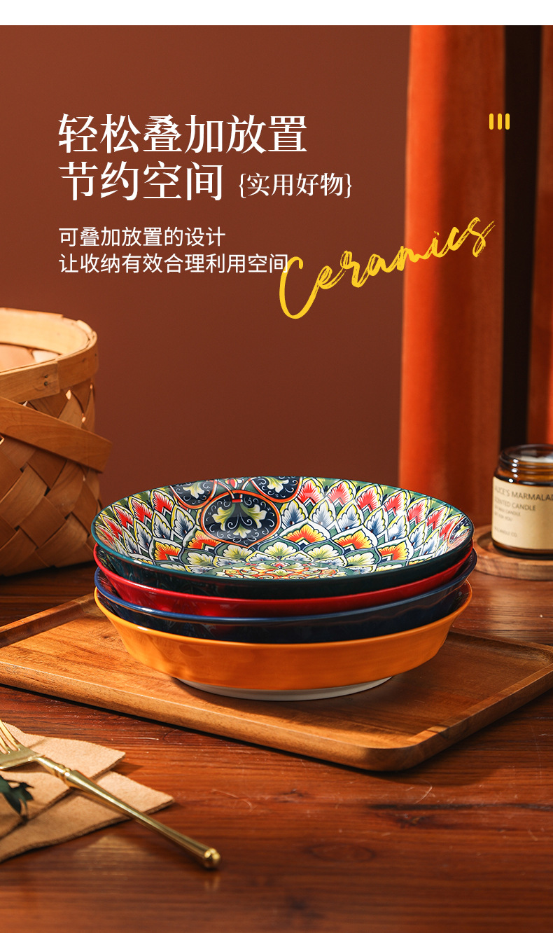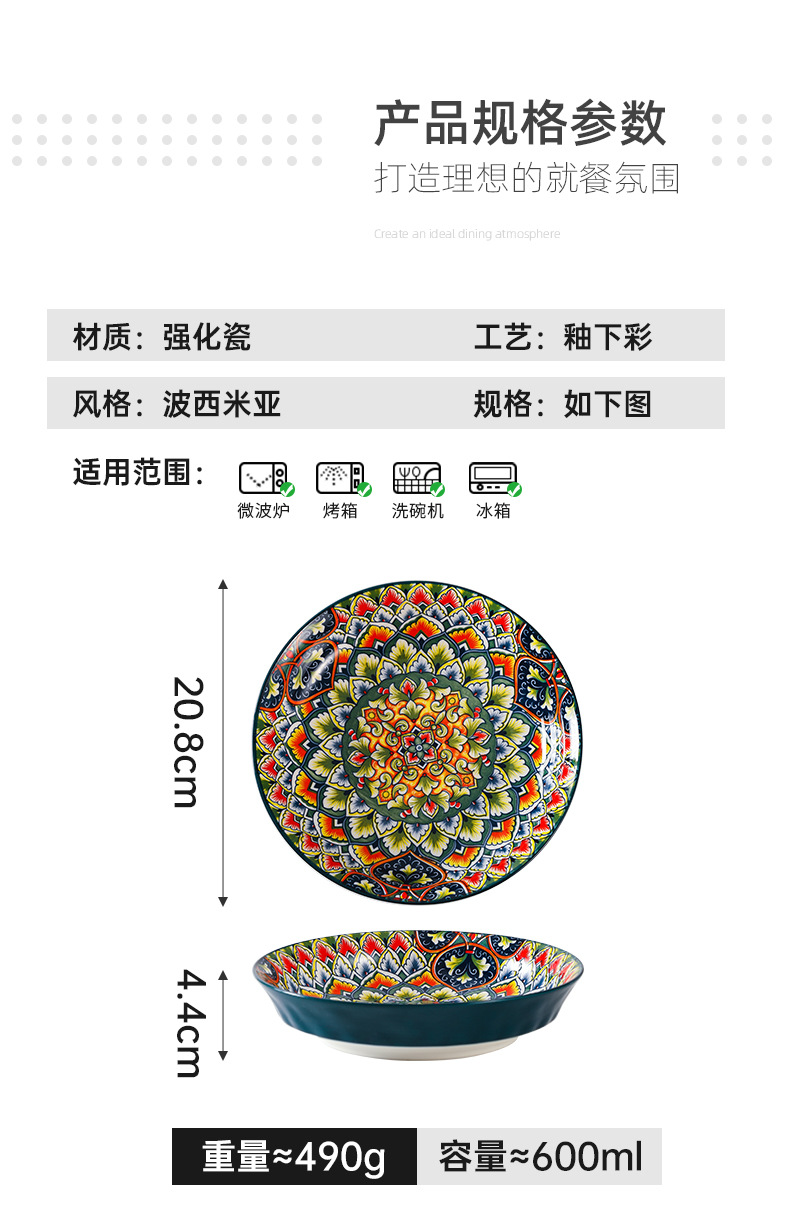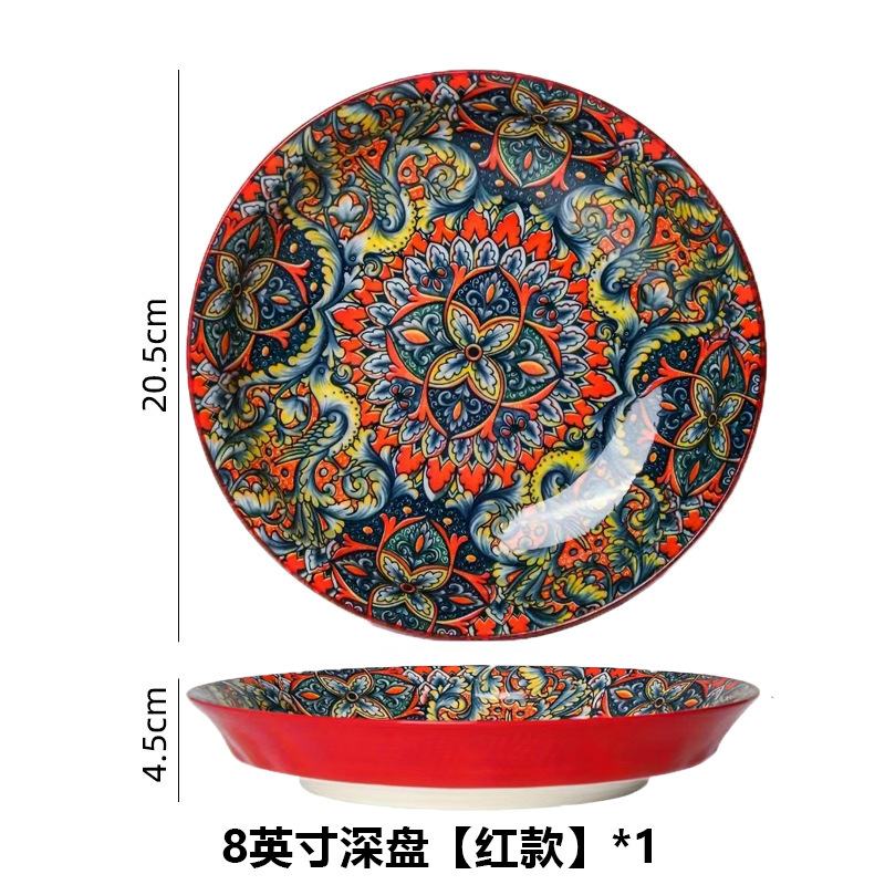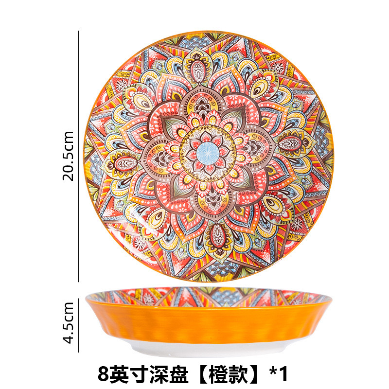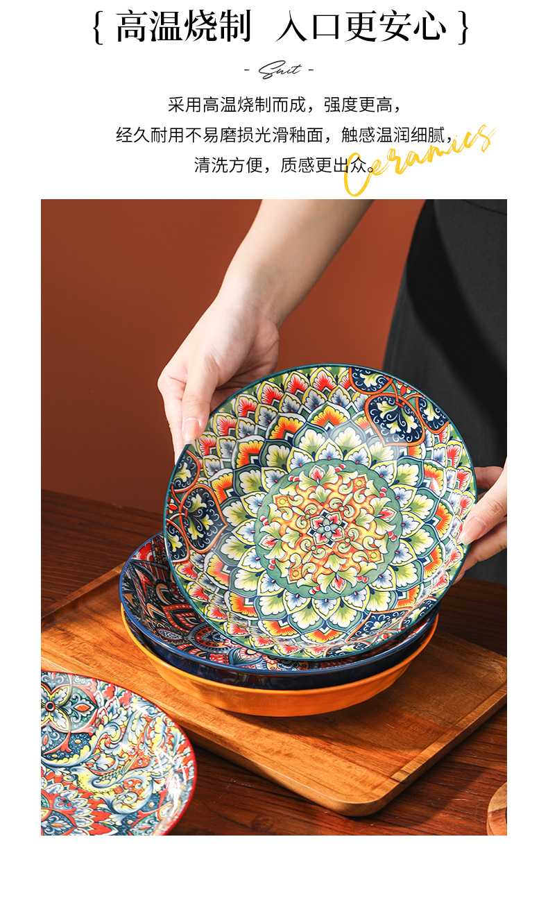 보헤미안 스타일 세라믹 접시 크로스보더 고가치 접시 가정용 새 접시 접시 언더글레이즈 컬러 디너 접시 깊은 접시 접시