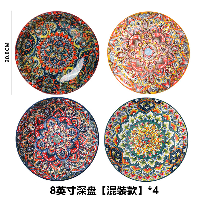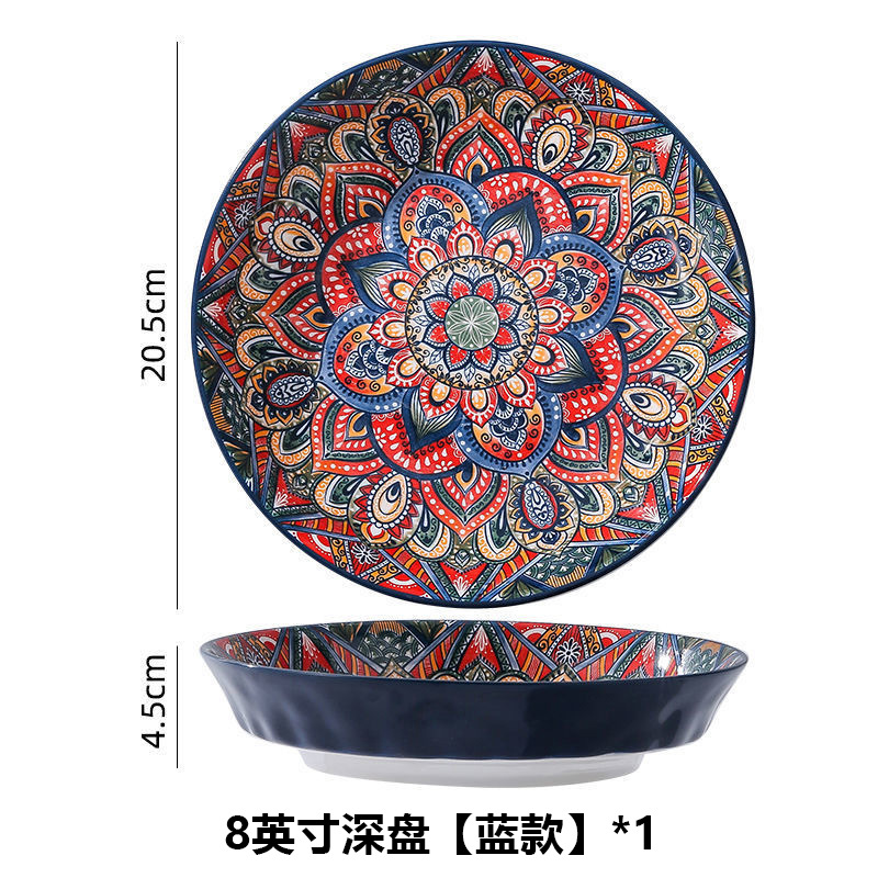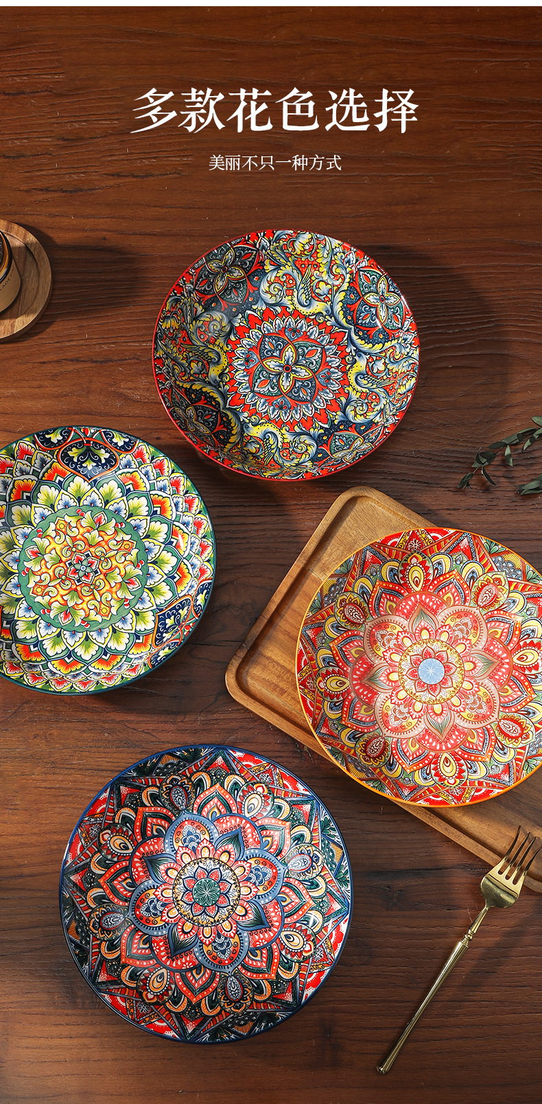 보헤미안 스타일 세라믹 접시 크로스보더 고가치 접시 가정용 새 접시 접시 언더글레이즈 컬러 디너 접시 깊은 접시 접시스토어 가기