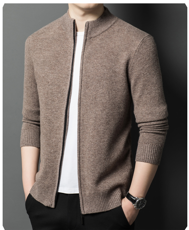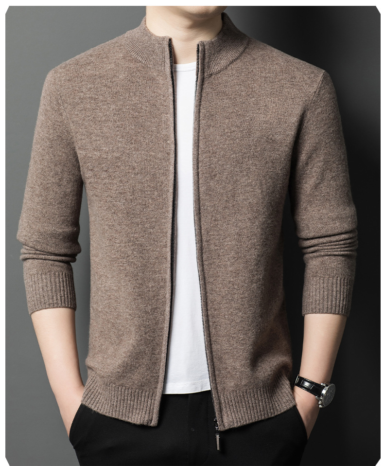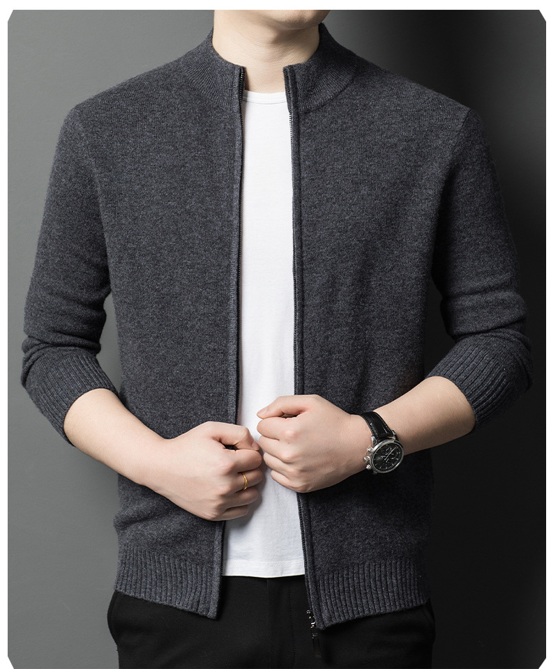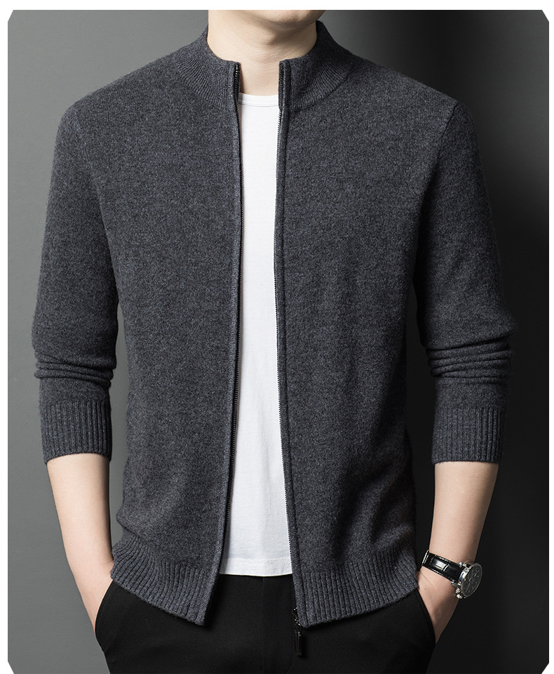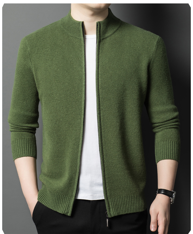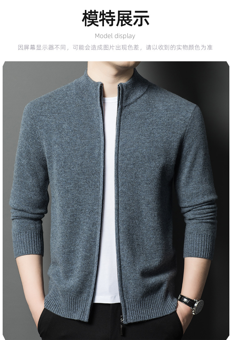 100 순수 양모 지퍼 목걸이 니트 카디건 남자 울 스웨터 가을과 겨울 남성용 두꺼운 따뜻한 스웨터 재킷스토어 가기