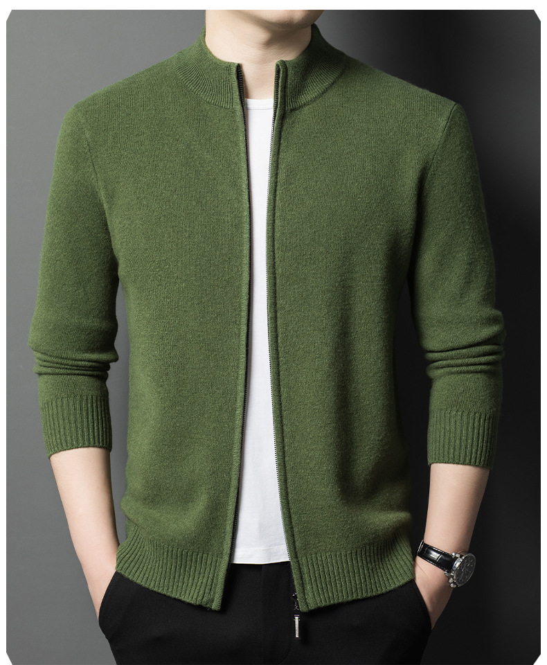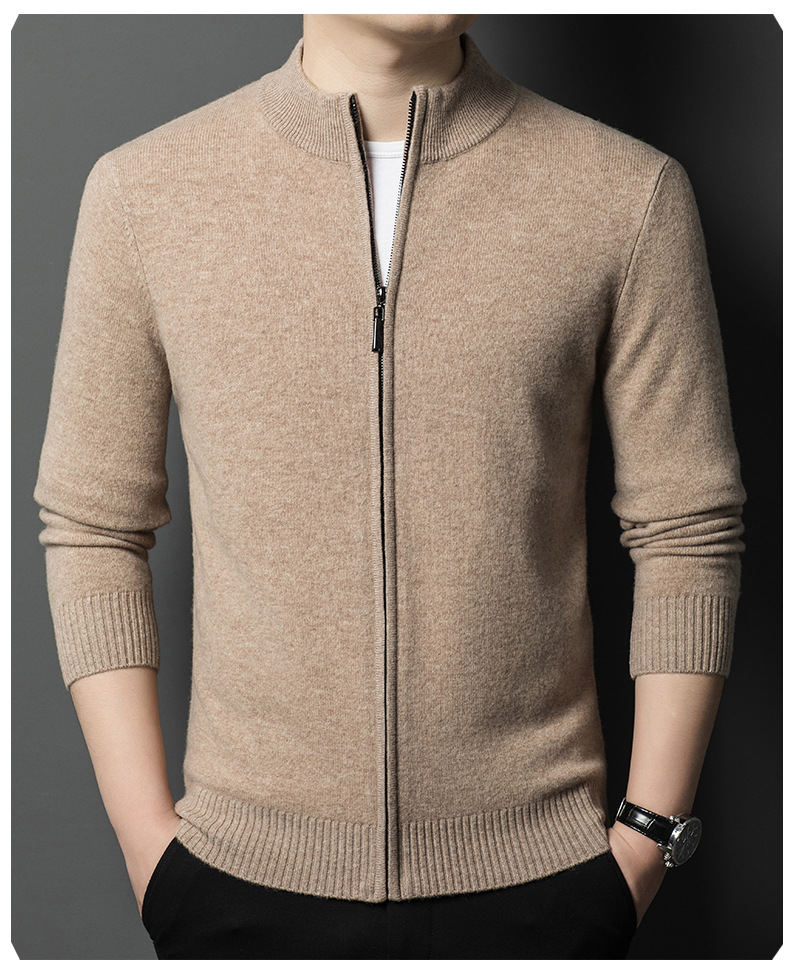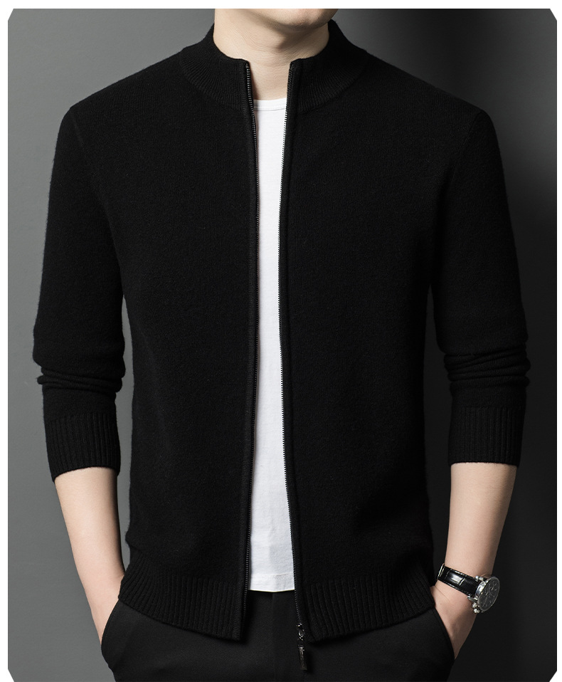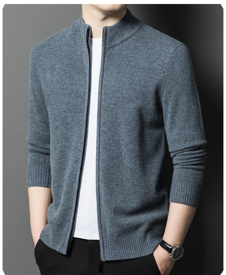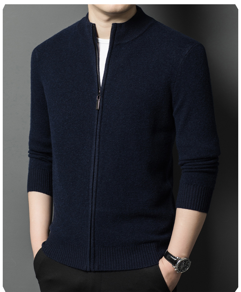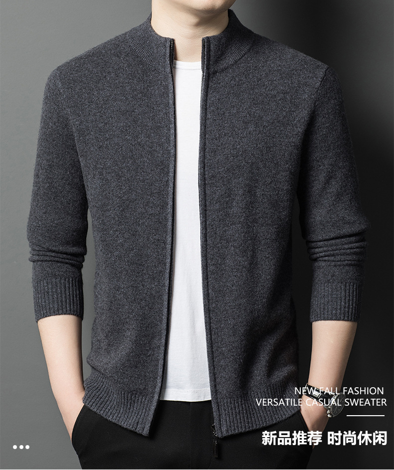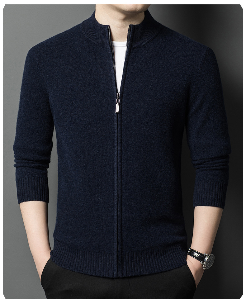 100 순수 양모 지퍼 목걸이 니트 카디건 남자 울 스웨터 가을과 겨울 남성용 두꺼운 따뜻한 스웨터 재킷스토어 가기