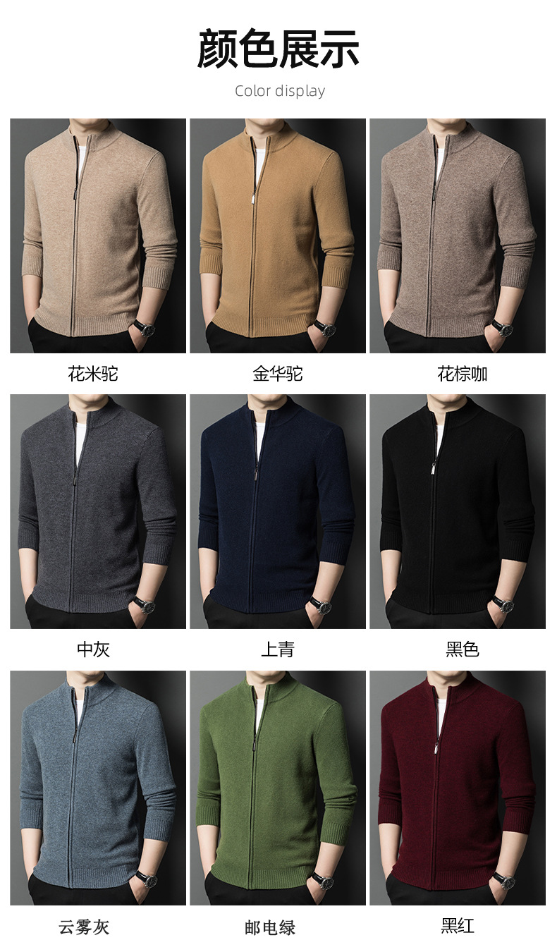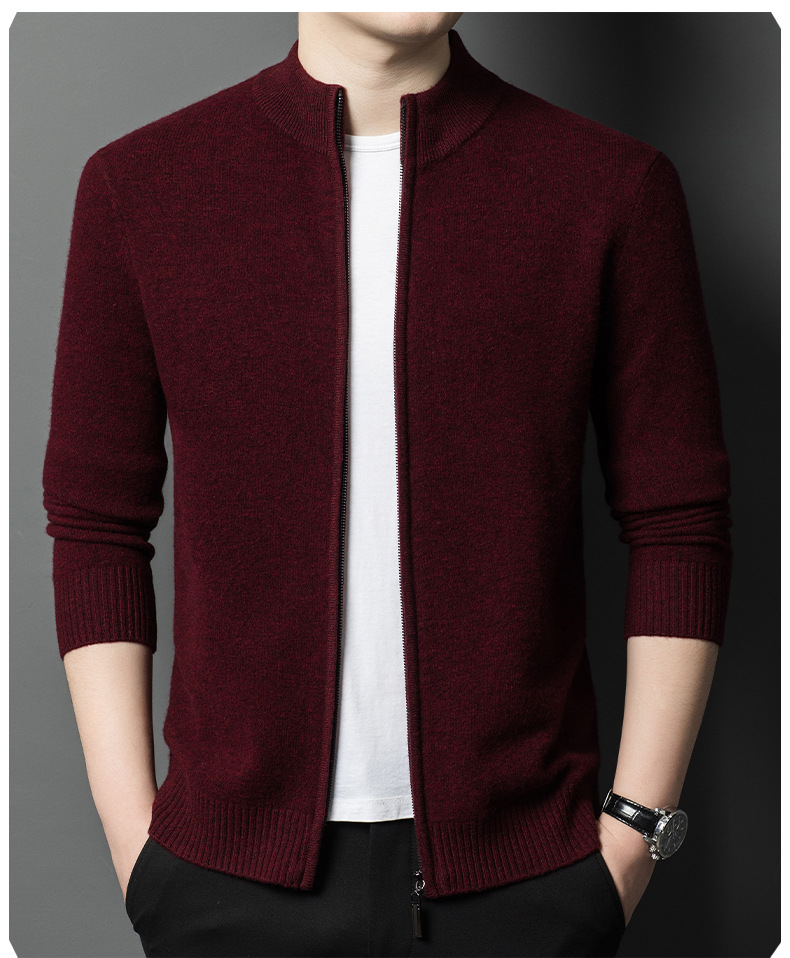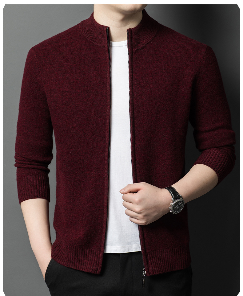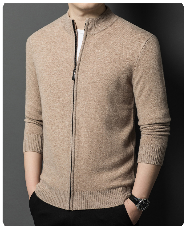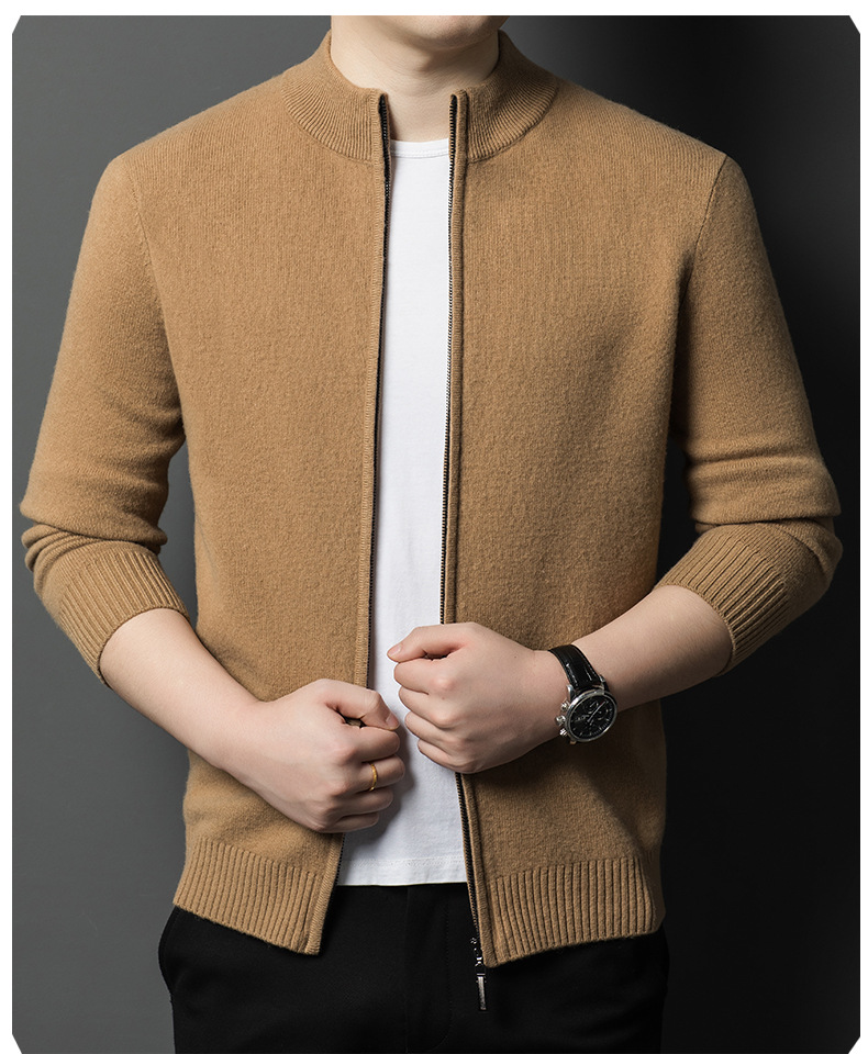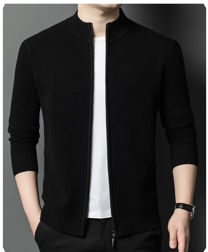 100 순수 양모 지퍼 목걸이 니트 카디건 남자 울 스웨터 가을과 겨울 남성용 두꺼운 따뜻한 스웨터 재킷스토어 가기
