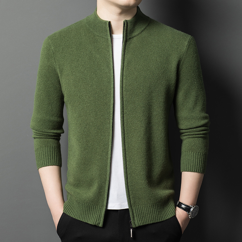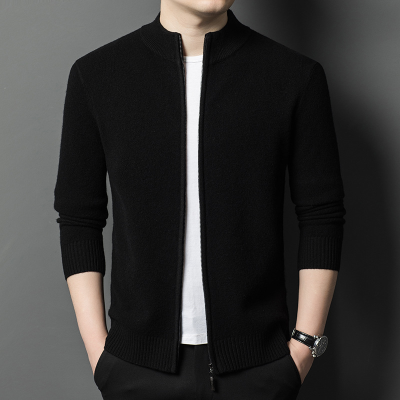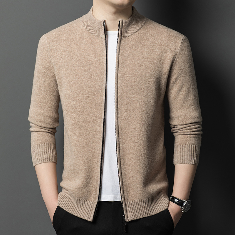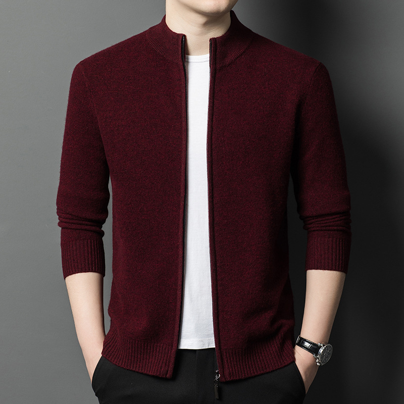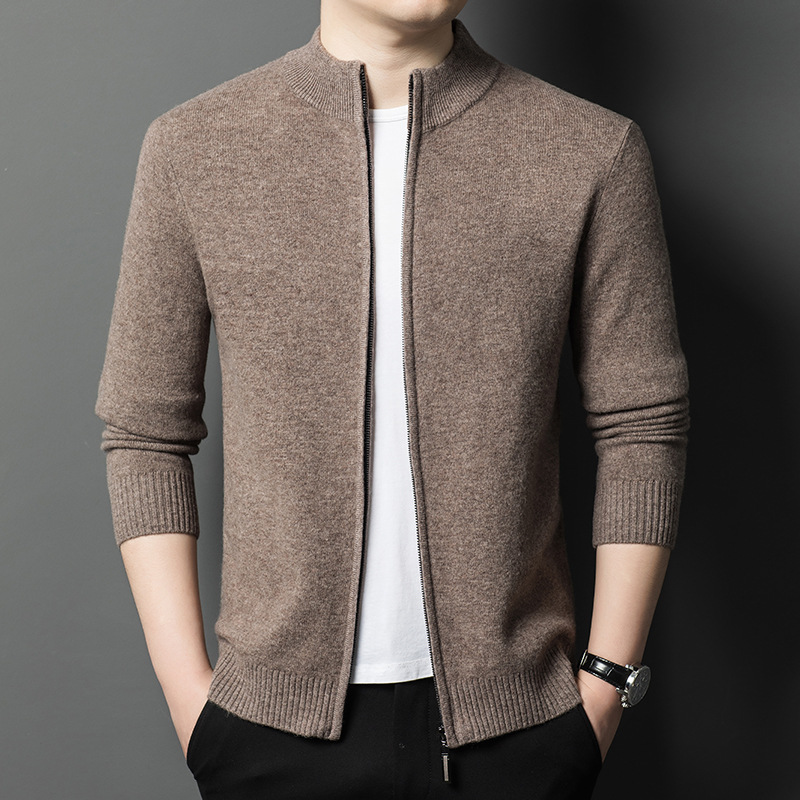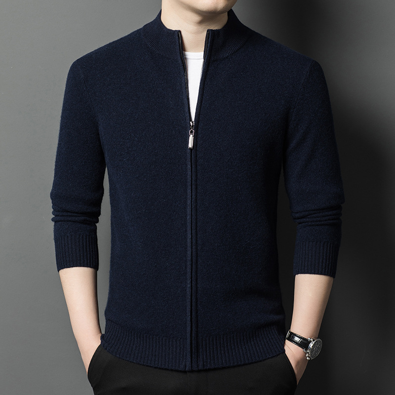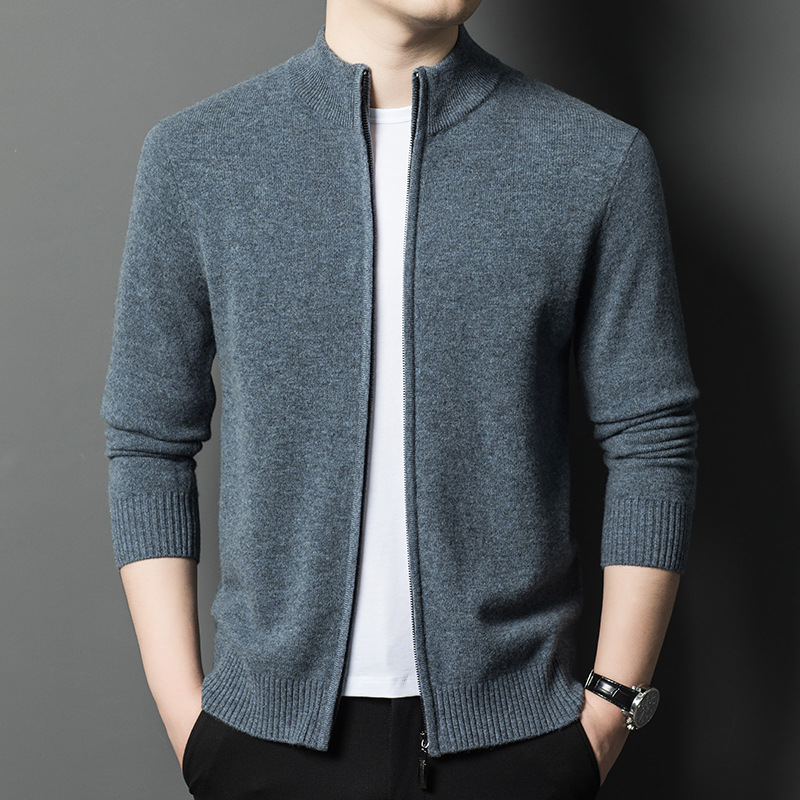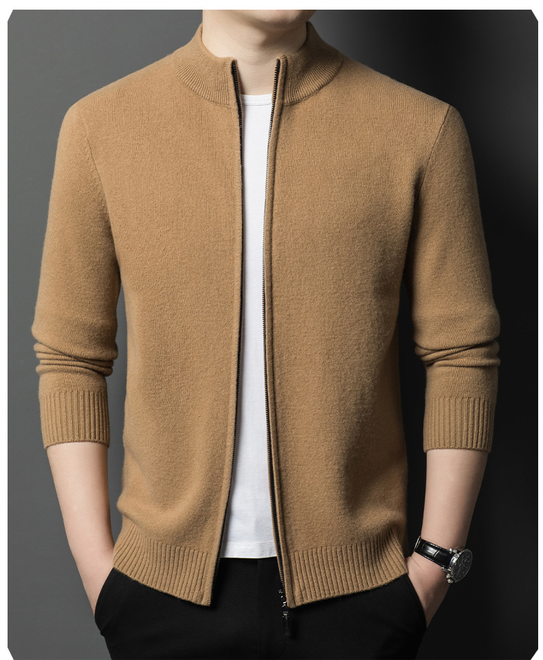 100 순수 양모 지퍼 목걸이 니트 카디건 남자 울 스웨터 가을과 겨울 남성용 두꺼운 따뜻한 스웨터 재킷스토어 가기
