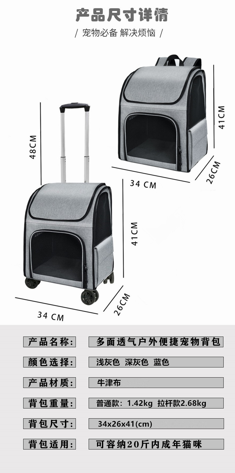대외 무역 새로운 고양이 가방 나가는 휴대용 통기성 대용량 접이식 접이식 고양이 개 애완 동물 트롤리 가방스토어 가기
