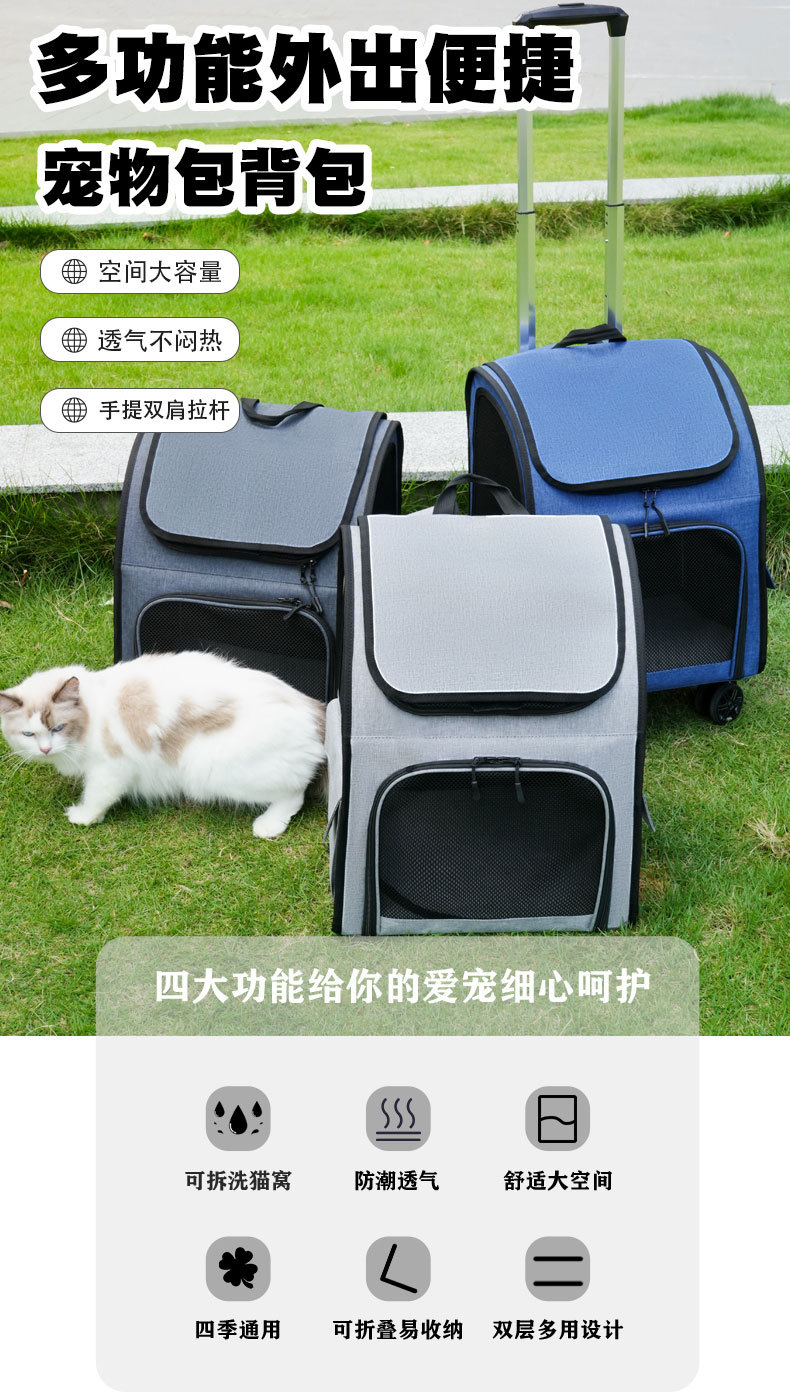 대외 무역 새로운 고양이 가방 나가는 휴대용 통기성 대용량 접이식 접이식 고양이 개 애완 동물 트롤리 가방