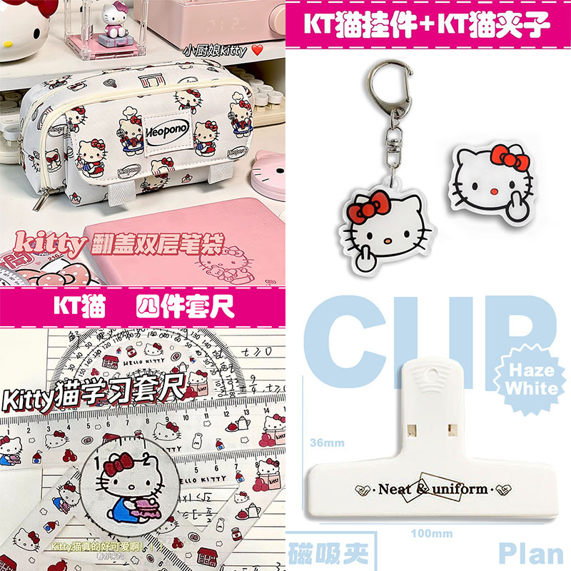 • 플립 KT 고양이 필통 + KT 고양이 (펜던트 + 클립 + 자 4종 세트) + 대형 자석 클립