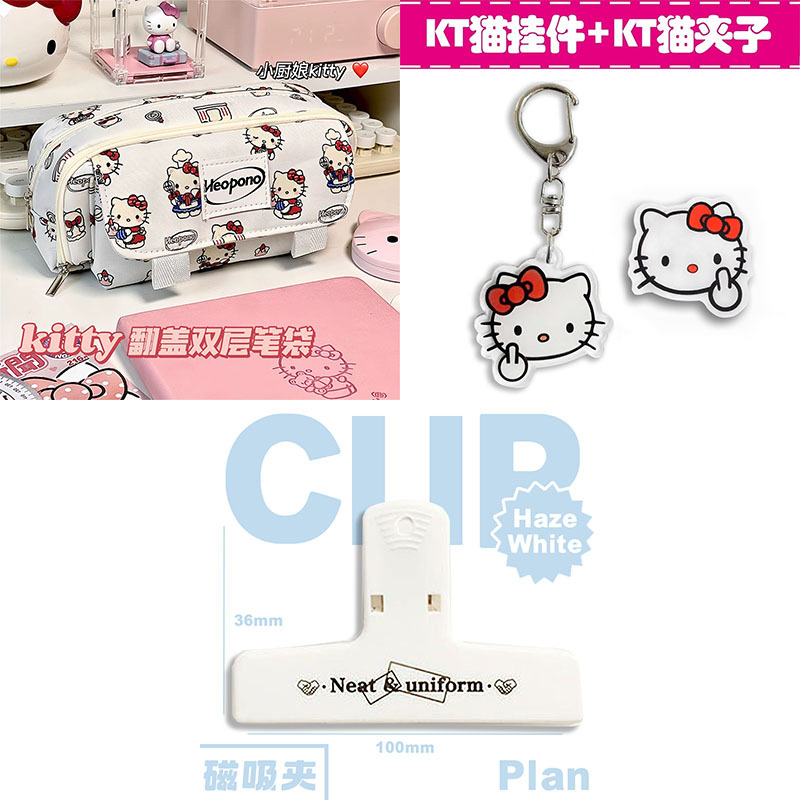 • 플립 KT 고양이 필통 + KT 고양이 (펜던트 + 클립) + 대형 자석 클립