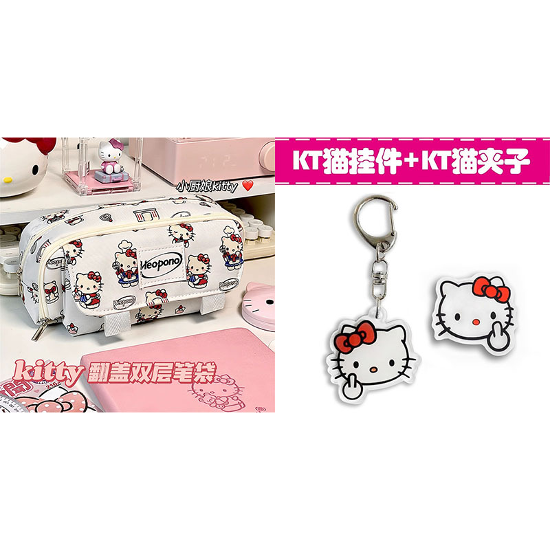 새로운 높은 색상 가치 KT 고양이 플립 인쇄 연필 케이스 Ins 학생 대용량 소녀의 심장 다층 지퍼 문구 상자스토어 가기