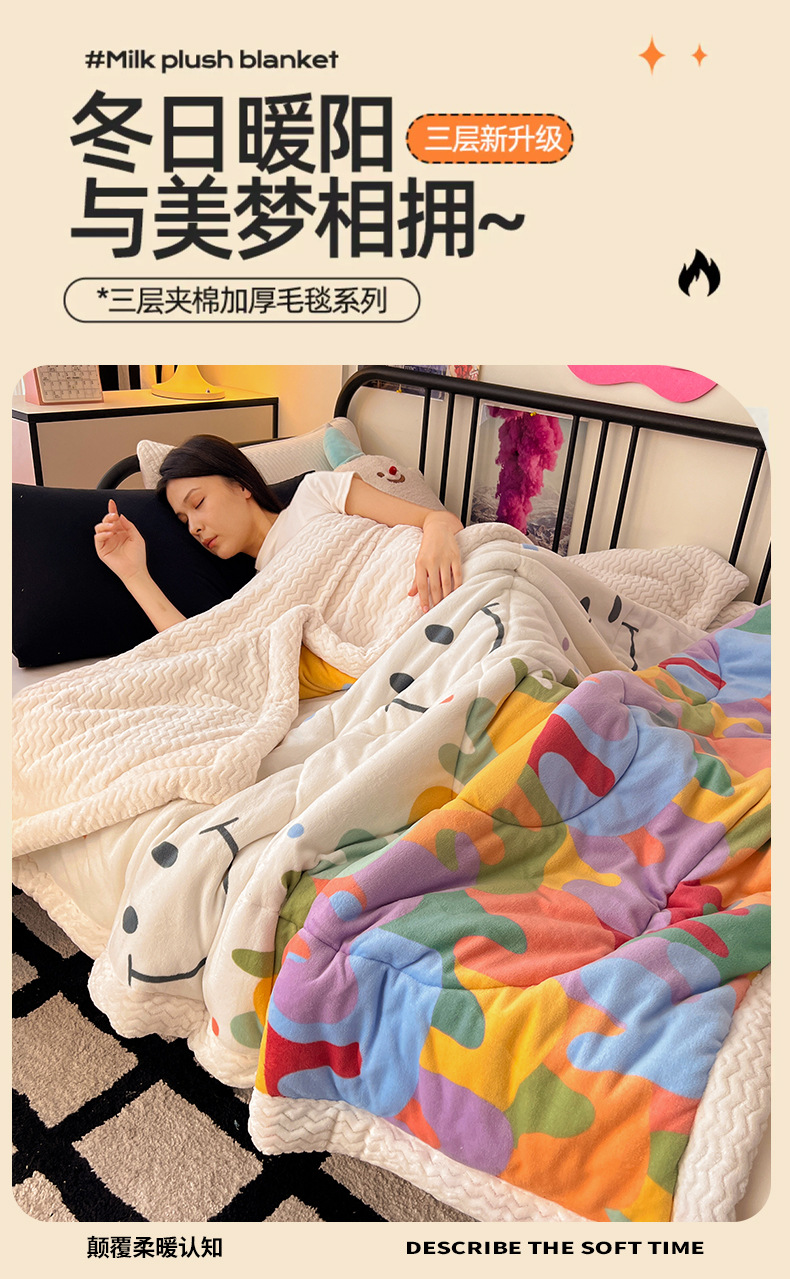 겨울 3 층 두꺼운 우유 양털 담요 침대 담요 사무실 낮잠 담요 학생 기숙사 코랄 양털 담요스토어 가기