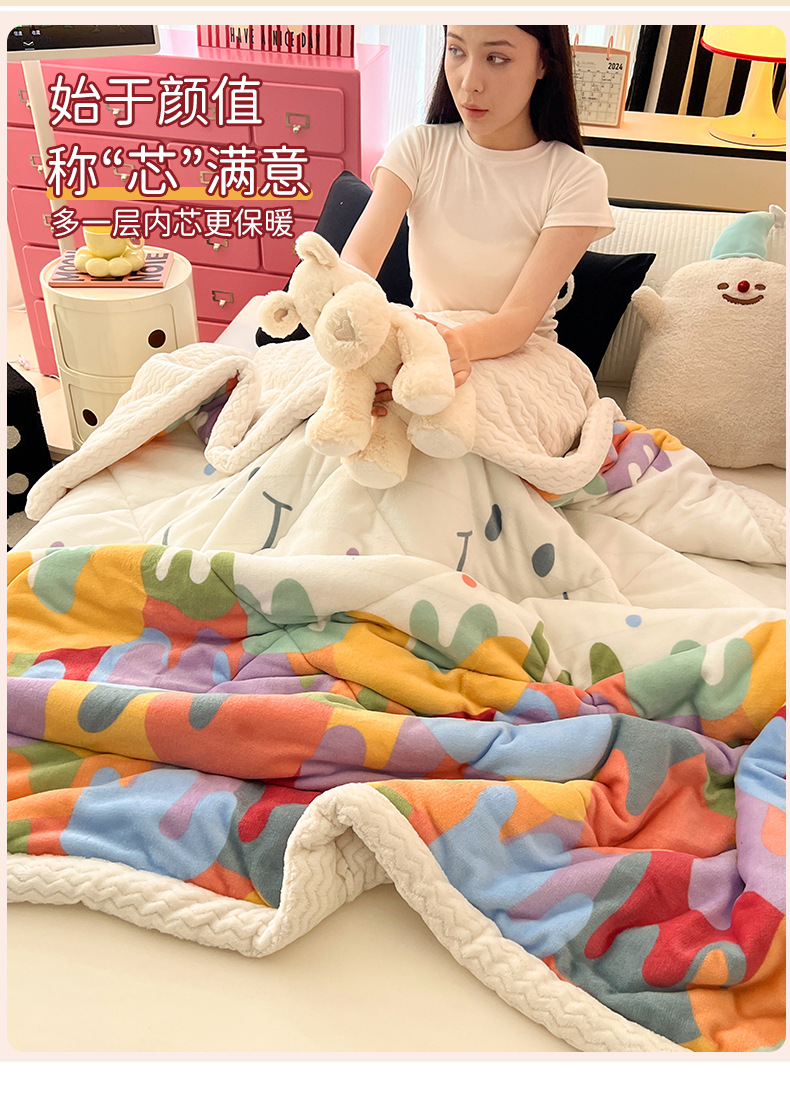 겨울 3 층 두꺼운 우유 양털 담요 침대 담요 사무실 낮잠 담요 학생 기숙사 코랄 양털 담요