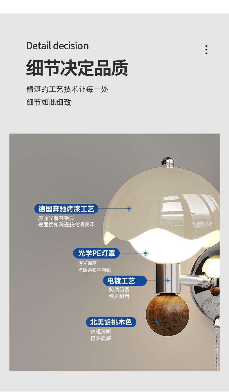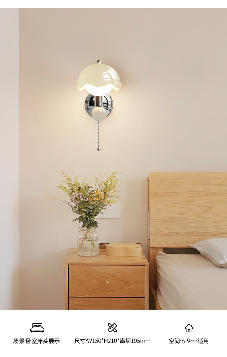 당겨 스위치 벽 램프 중세 머리맡 램프 2025 새로운 프랑스어 달걀 껍질 침실 벽 램프 크림 스타일 눈 보호 램프스토어 가기