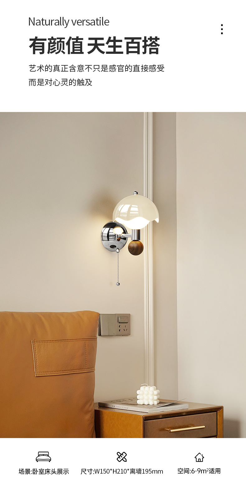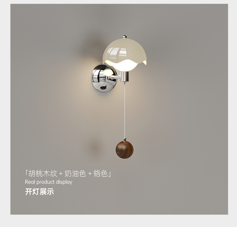 당겨 스위치 벽 램프 중세 머리맡 램프 2025 새로운 프랑스어 달걀 껍질 침실 벽 램프 크림 스타일 눈 보호 램프