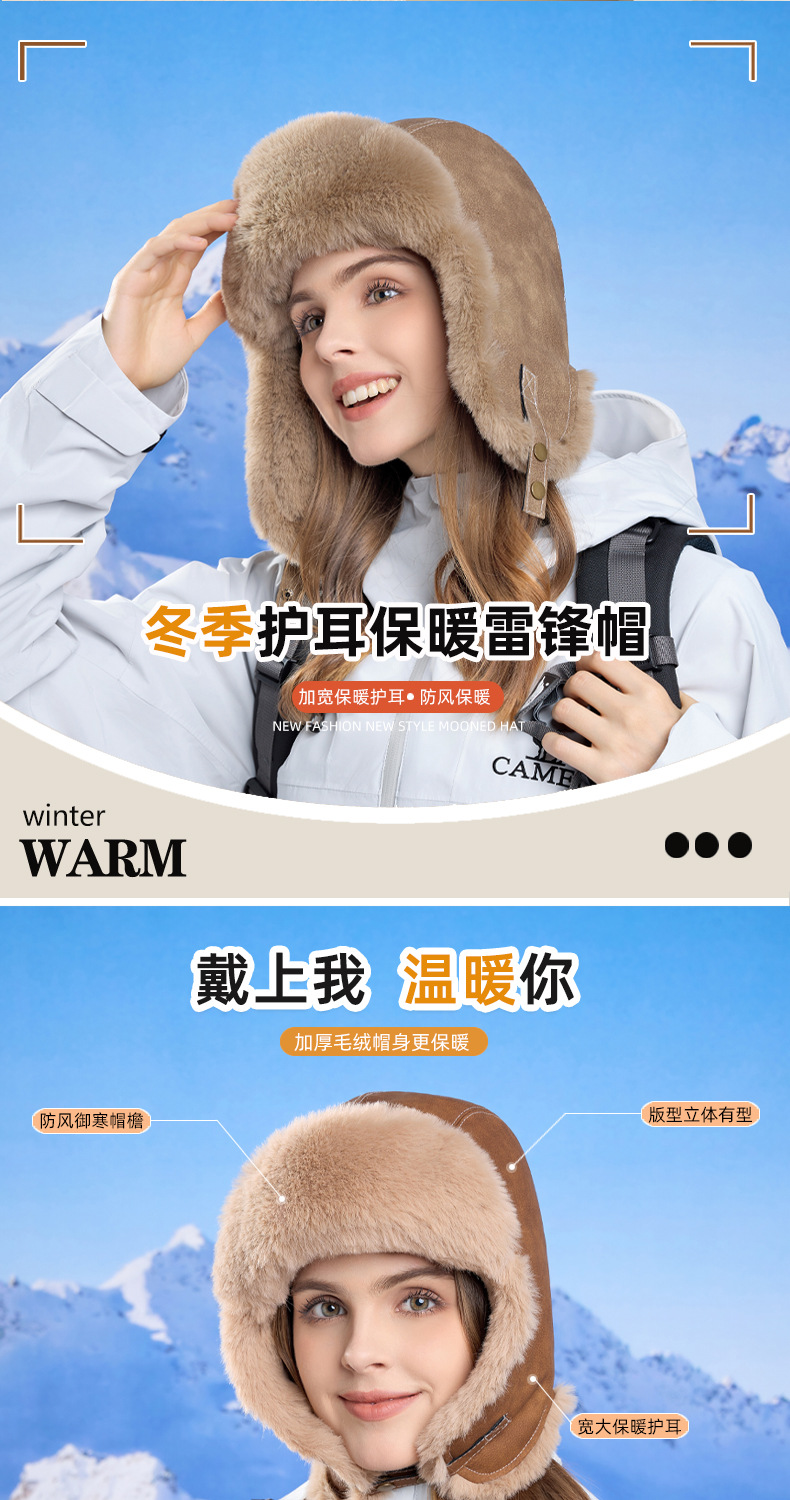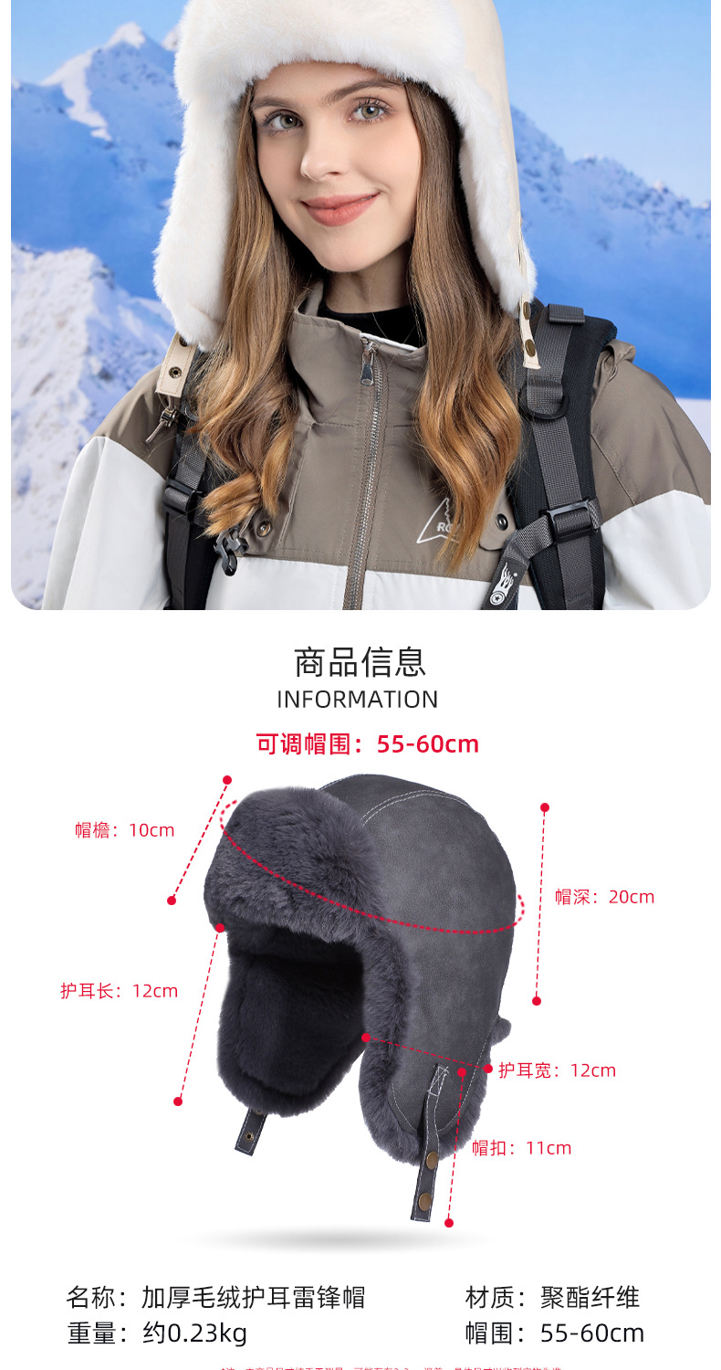 새로운 두꺼운 봉제 귀 보호 방풍 모자 여성 야외 등산 여행 따뜻한 Lei Feng Cap 큰 머리 랩 캡스토어 가기