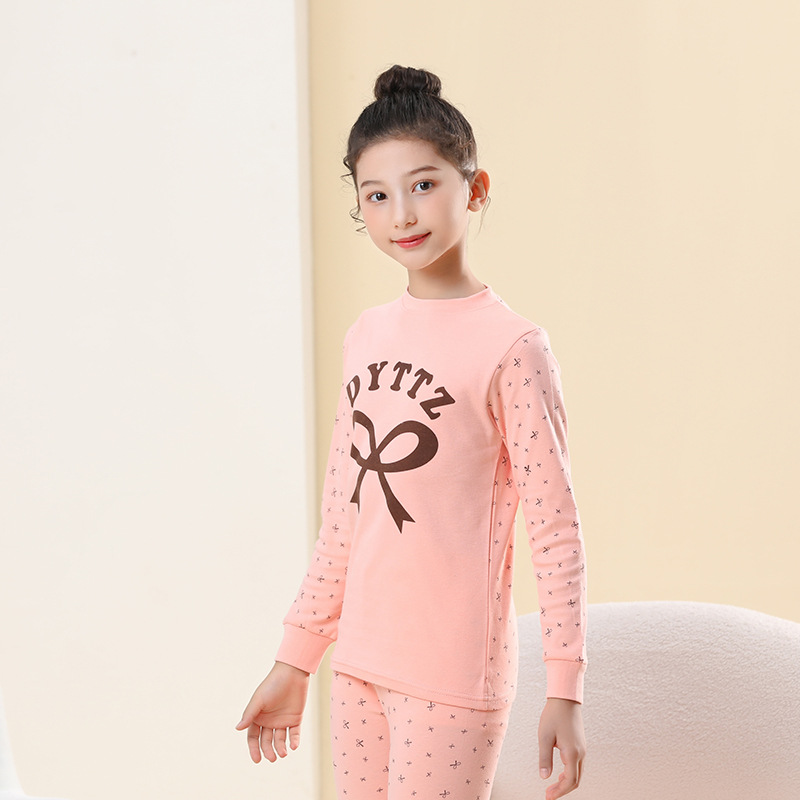 아동 속옷 세트, 순면, 남아용 가을 옷과 긴 바지, 여아용 잠옷, 중대형 아동용 겨울 하프 터틀넥 면 스웨터