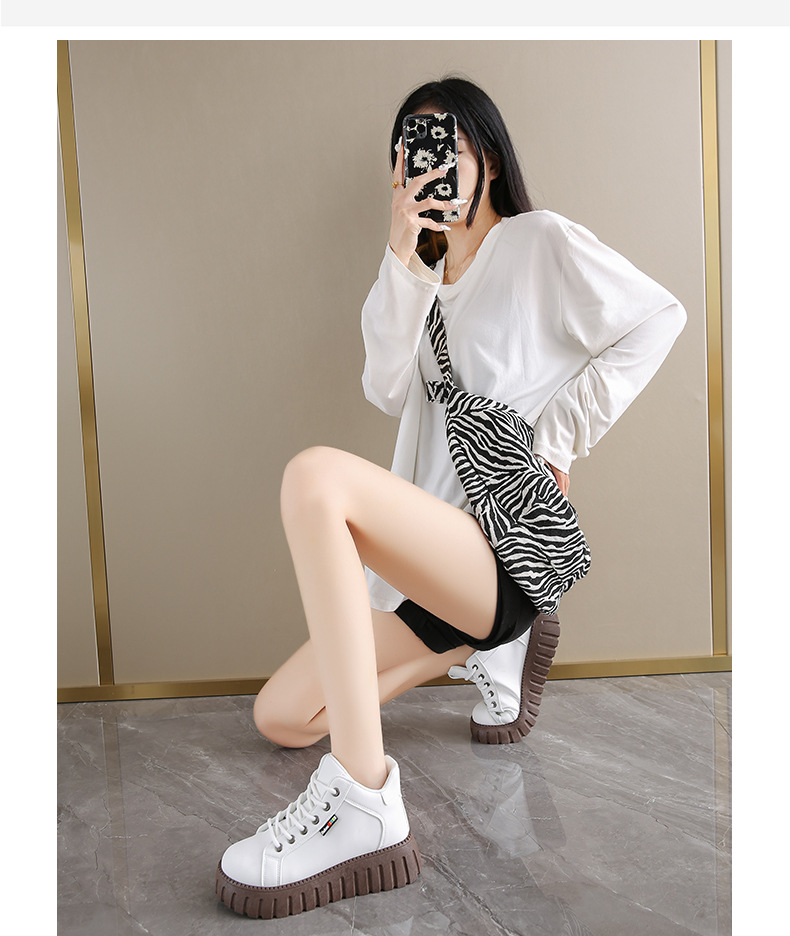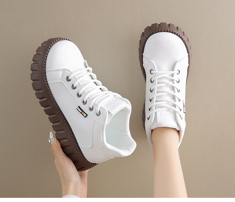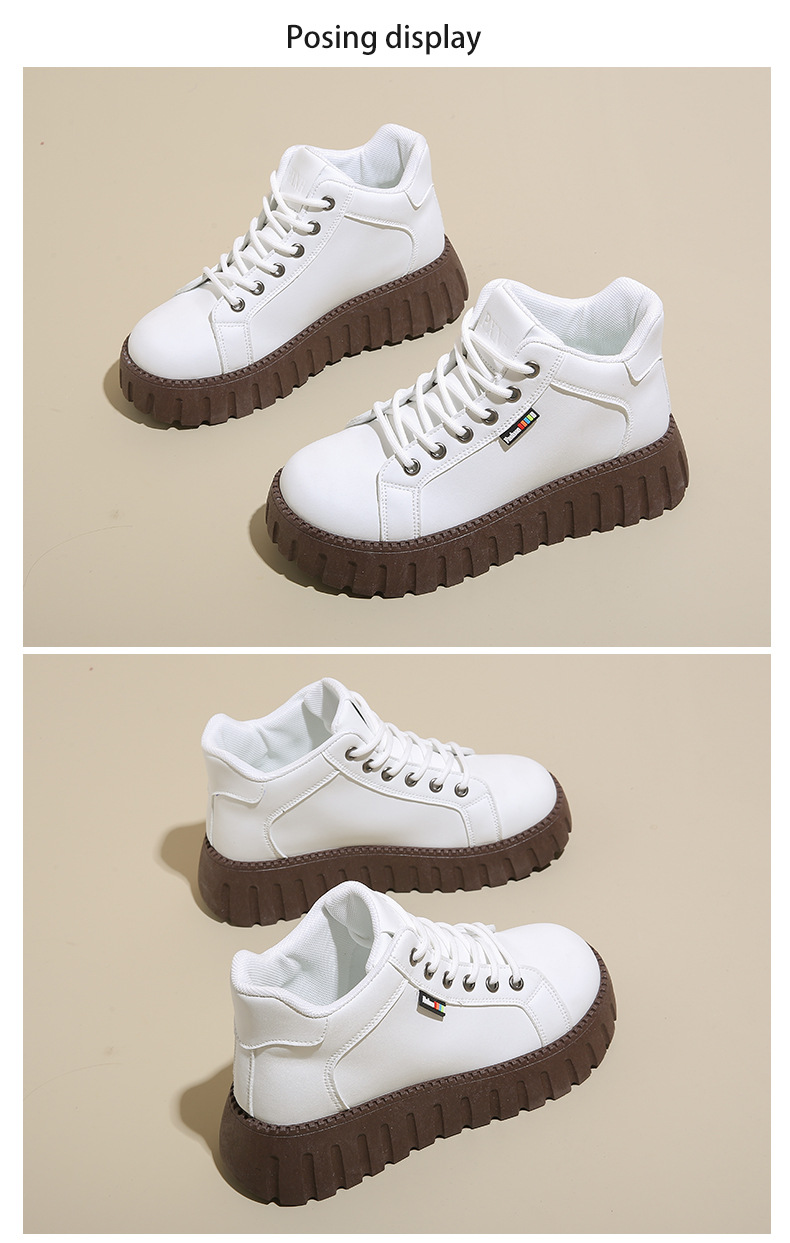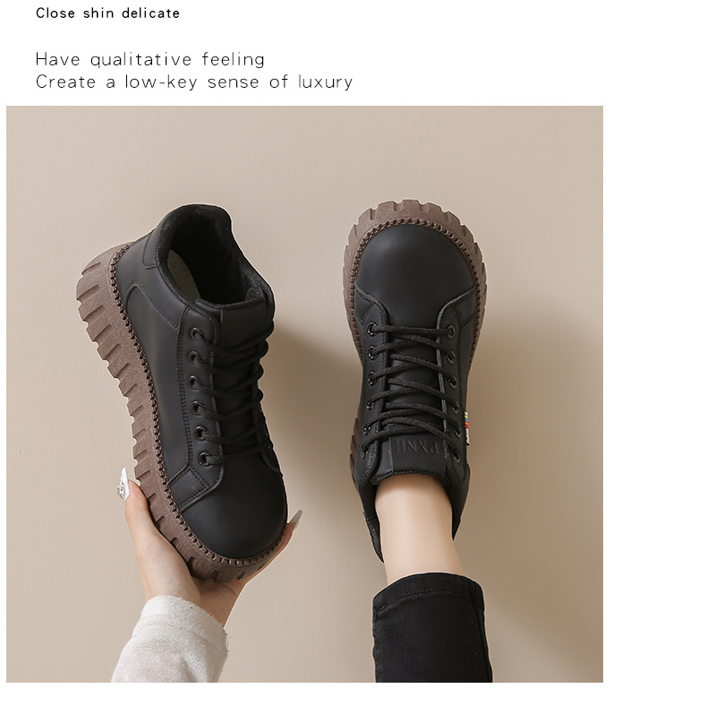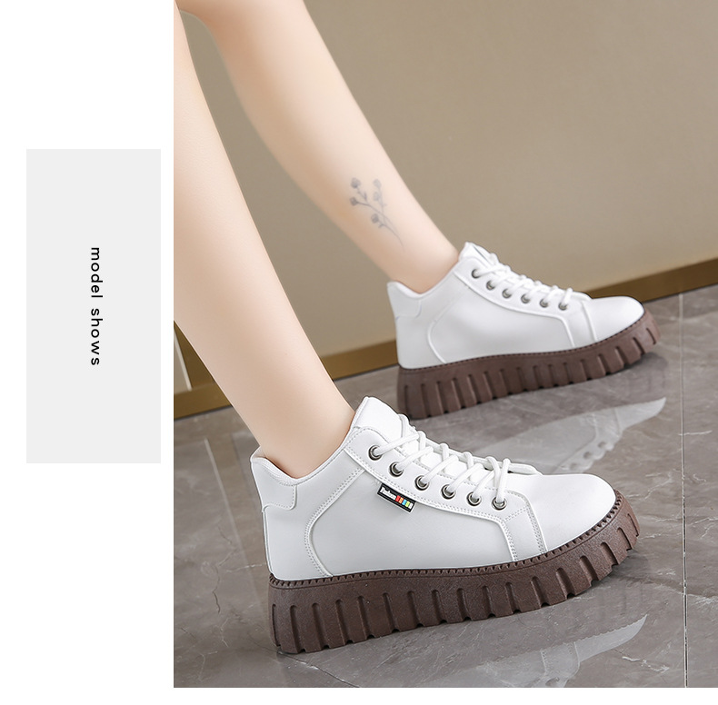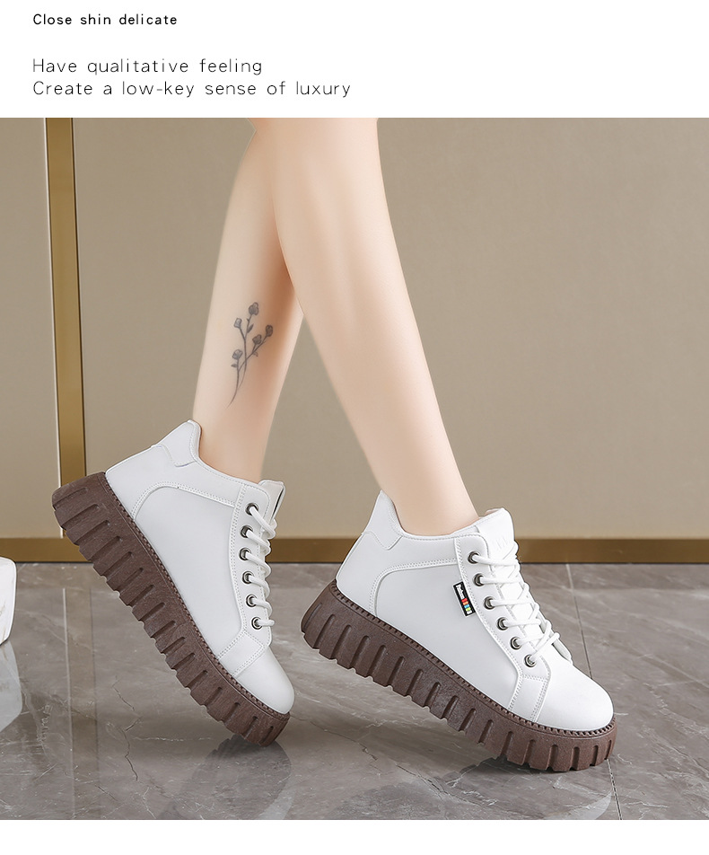 가을 2024 새로운 발목 부츠 인 한국 스타일 화이트 신발 여학생 두꺼운 단독 최고 캐주얼 신발 가죽 신발 KT2288스토어 가기