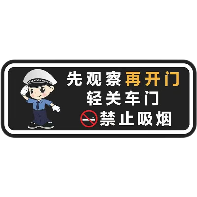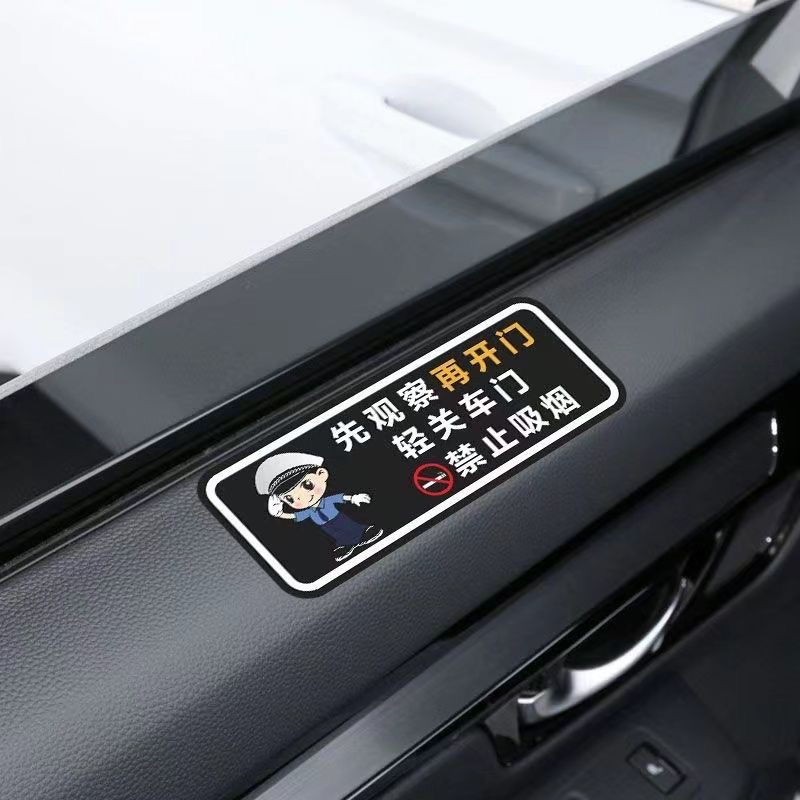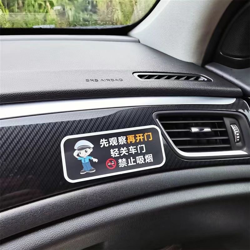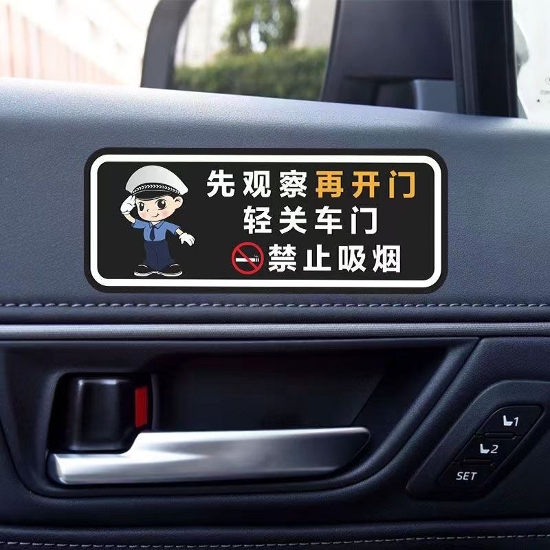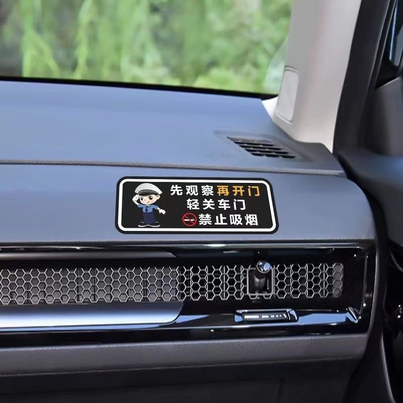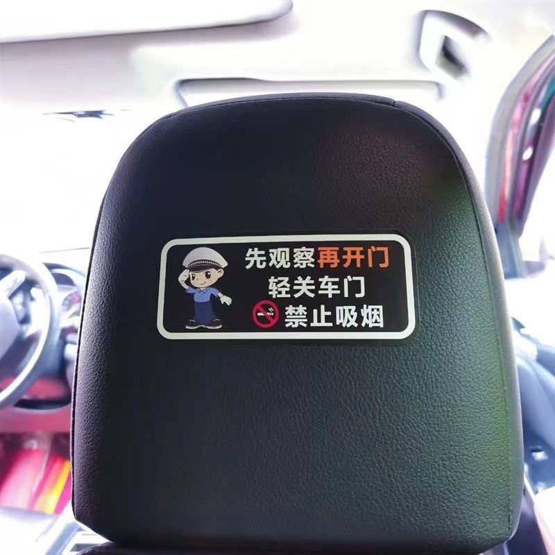 가볍게 문을 닫으십시오, 표지판 스티커, 담배를 피우지 마십시오. 뒷좌석 벨트를 상기시켜 안전 벨트를 고정하고 장식 스티커를 떨어 뜨립니다.스토어 가기