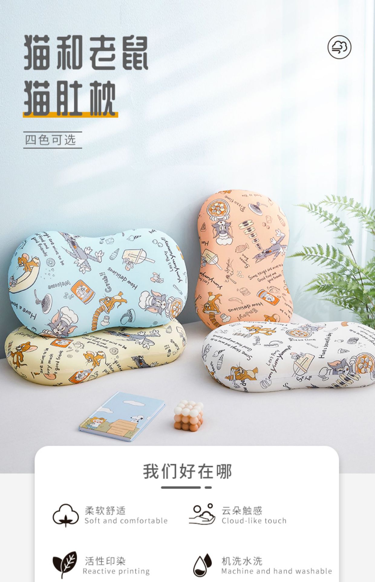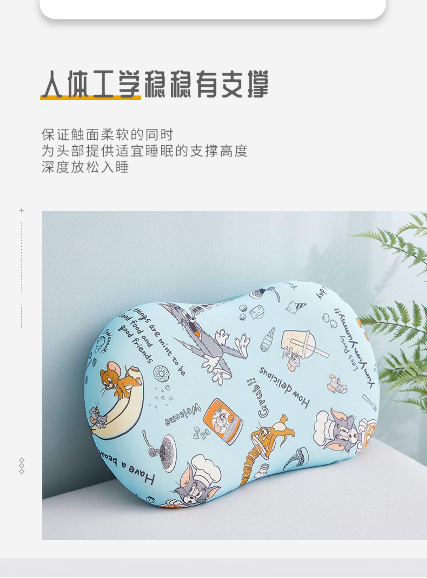 Tom and Jerry猫和老鼠正版授权猫肚枕护颈耐用不易变形云朵触感