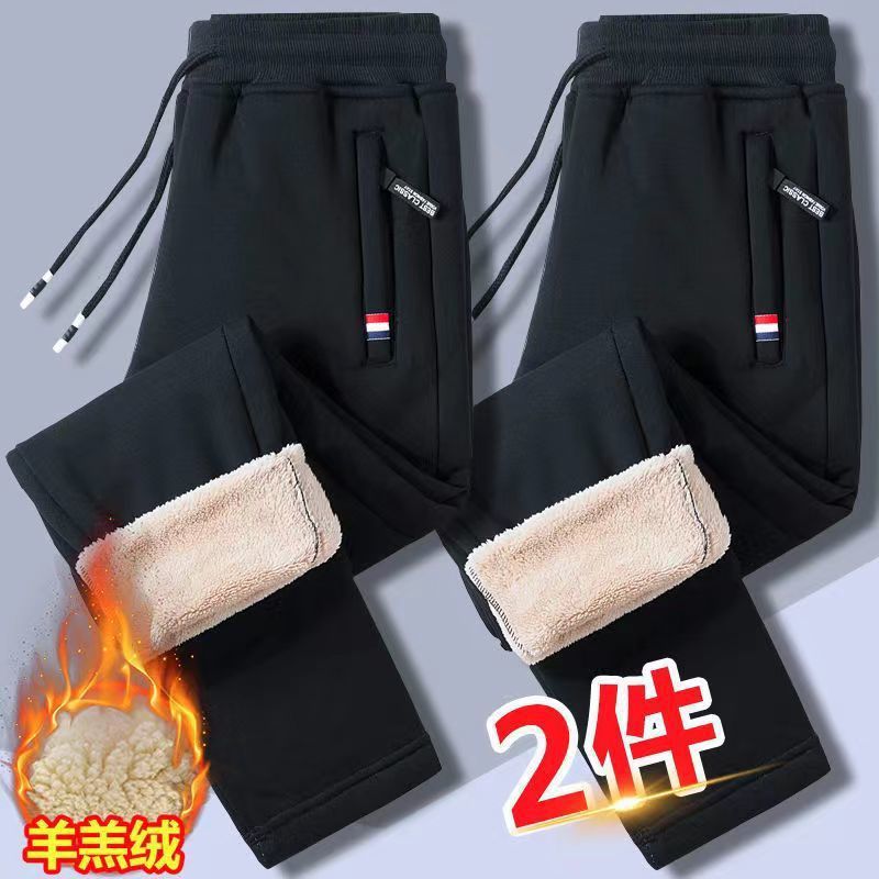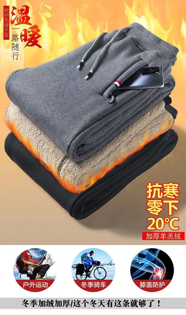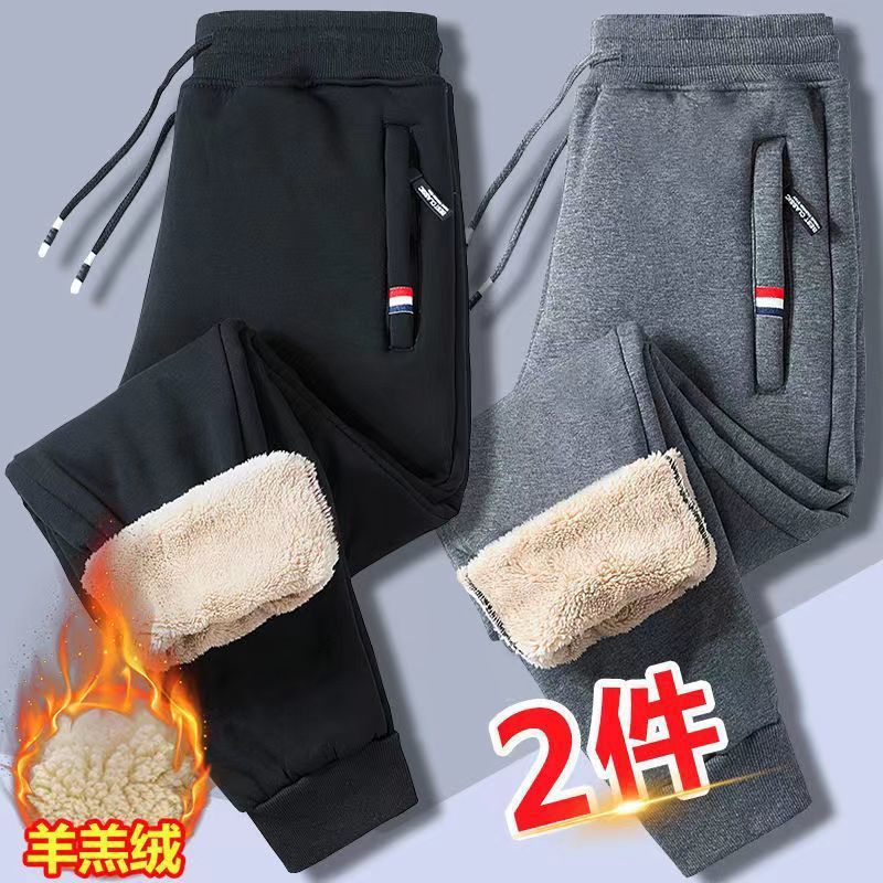 기모 두꺼운 바지 남자 겨울 2023 새로운 도착 양고기 양털 유행 스포츠 캐주얼 바지 가을과 겨울 면화 바지스토어 가기