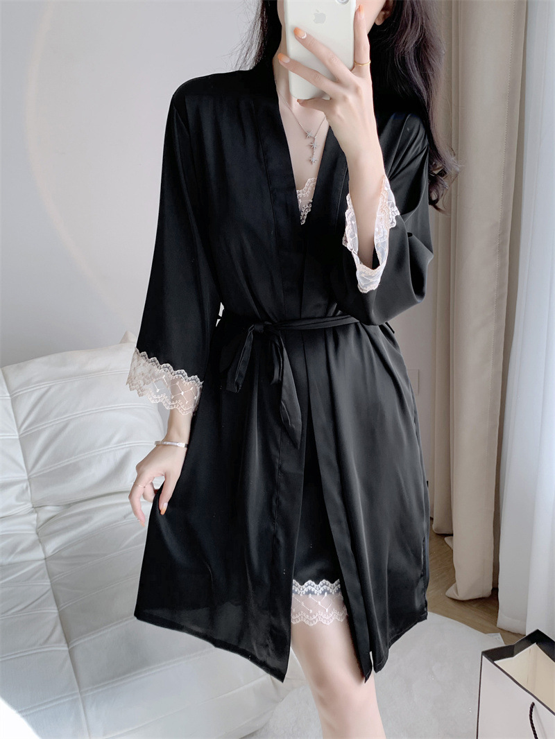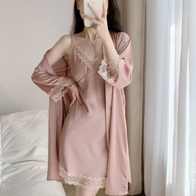섹시한 잠옷 여자의 2023 새로운 여름 얇은 아이스 실크 레이스 단색 슬링 파자마 스커트 (가슴 패드 포함)스토어 가기