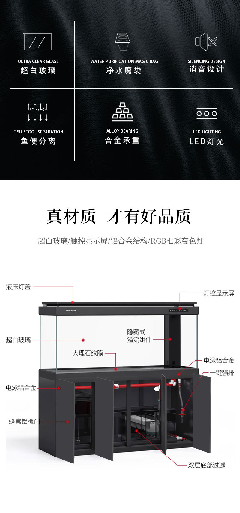 민강 수족관 초백색 거실 가정용 사무실 바닥형 풍수 행운을 불러오는 물갈퀴 없는 수조 관상어스토어 가기