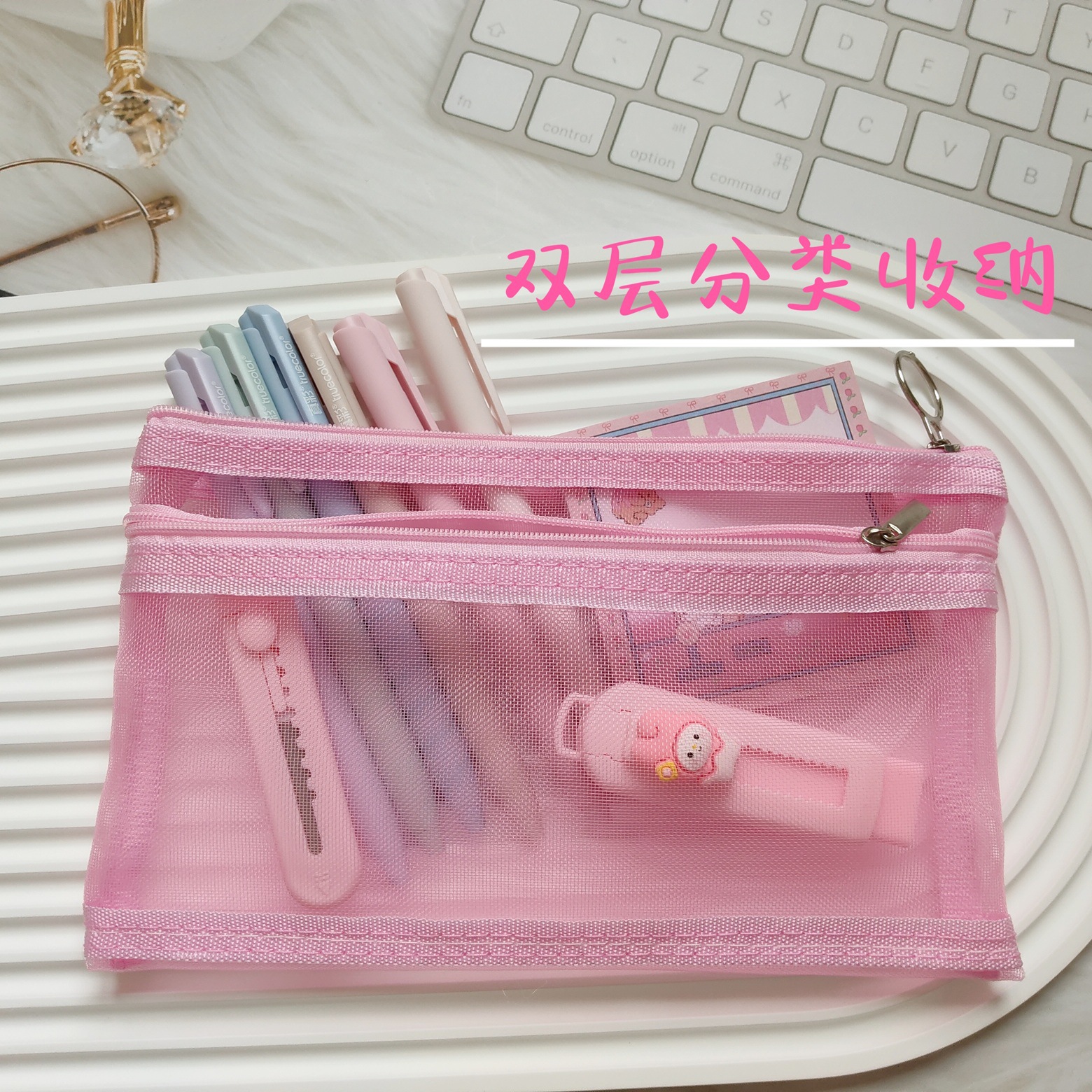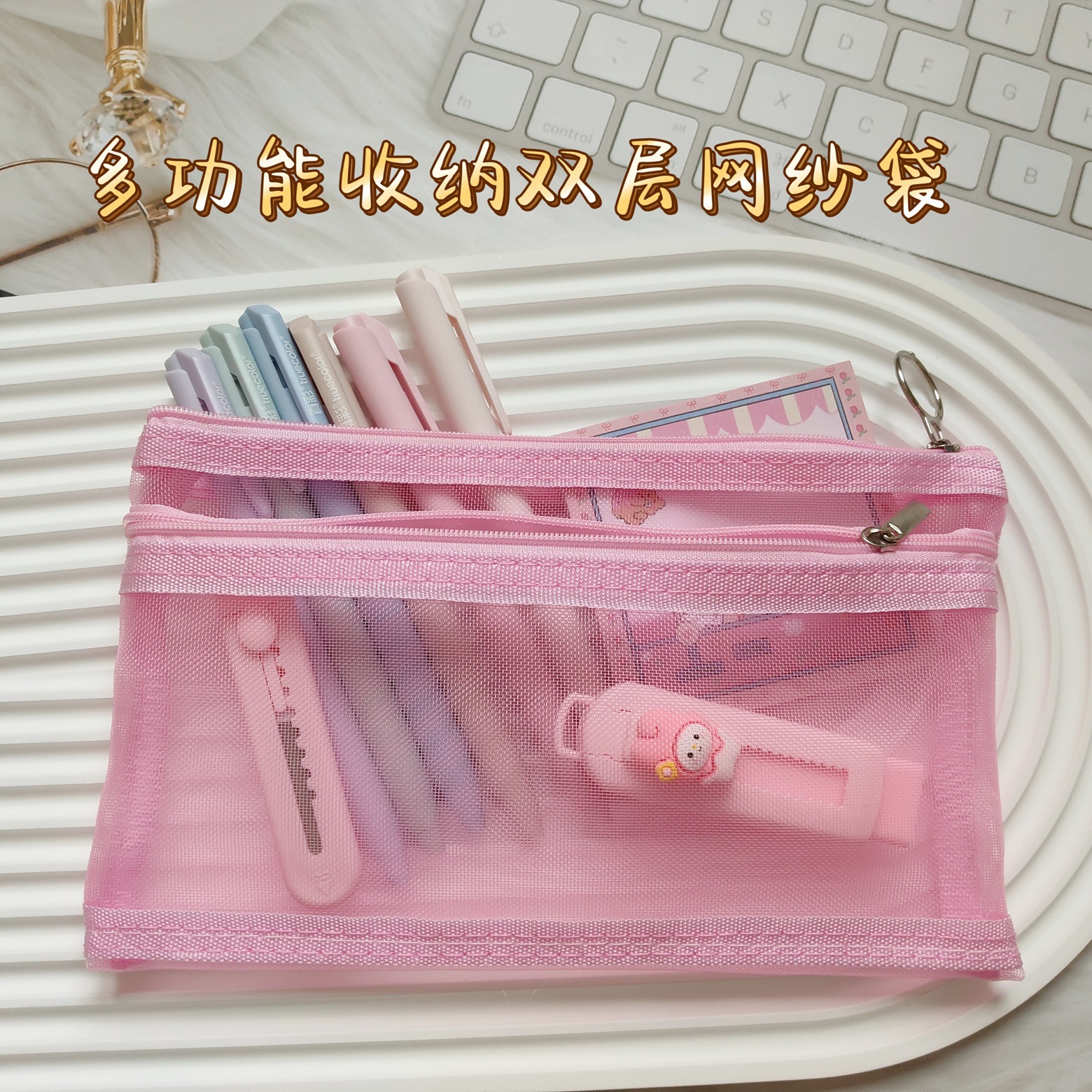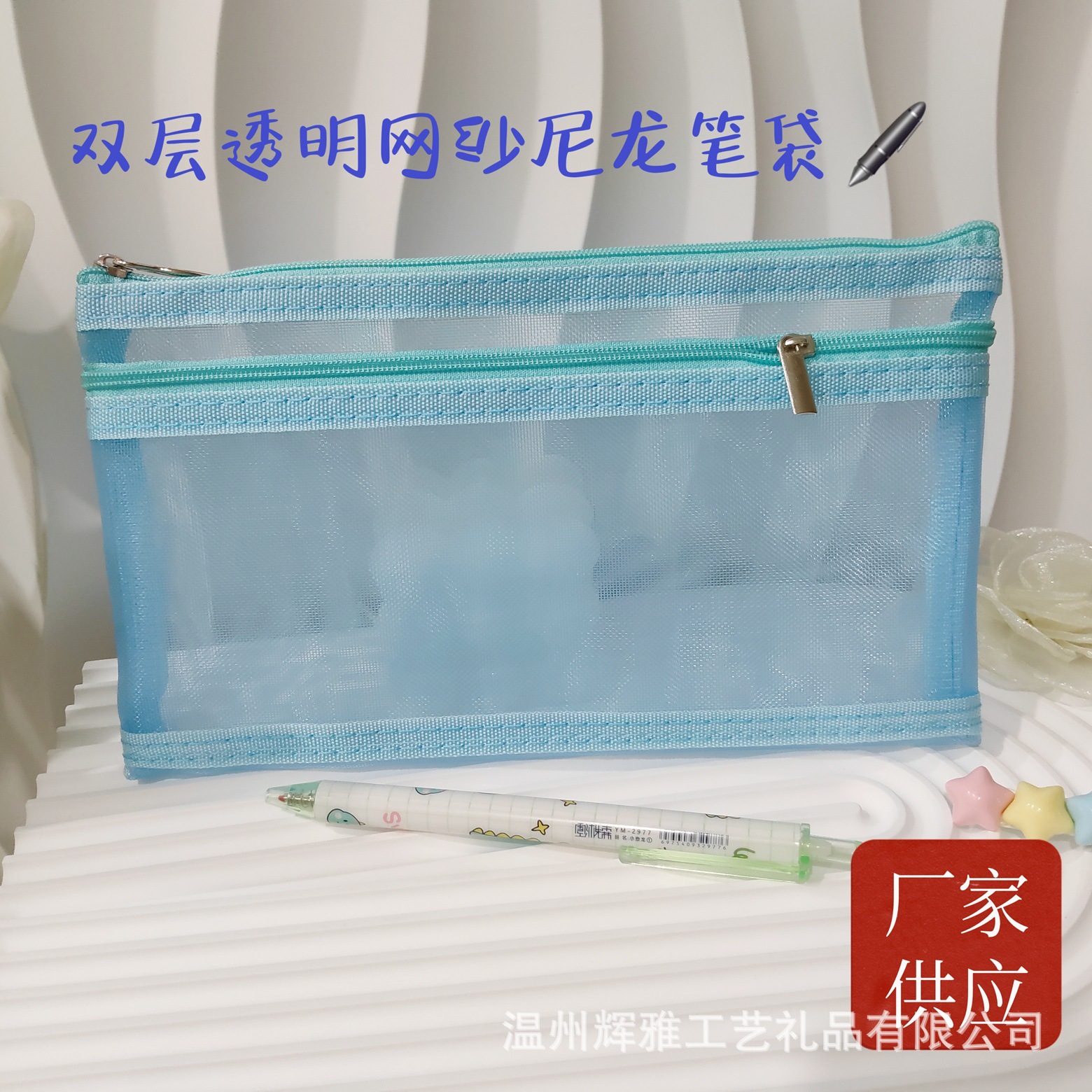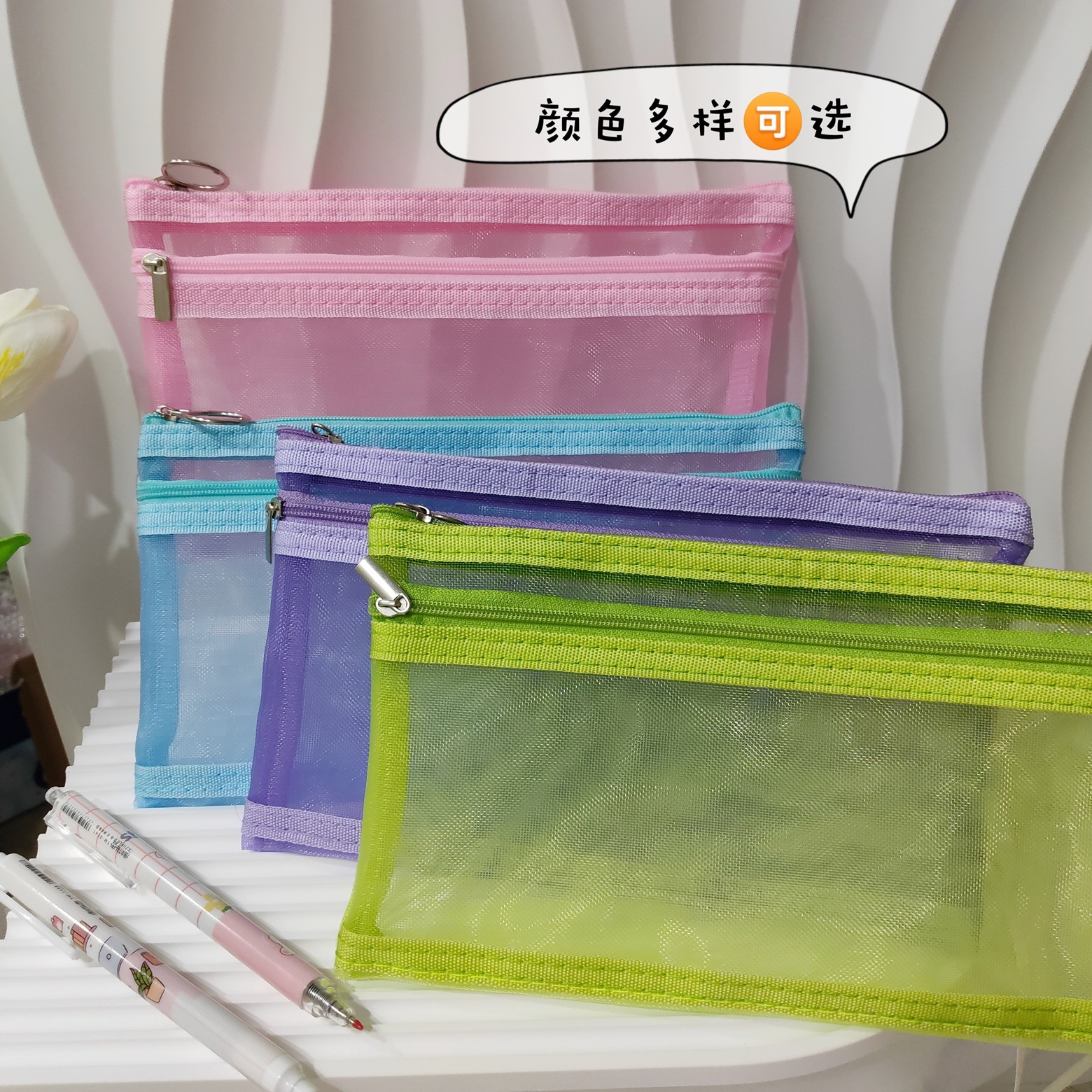 A5 메쉬 나일론 연필 가방 투명 더블 레이어 연필 가방 파일 가방 문구 지퍼 가방 대용량 저장 가방 빌 백