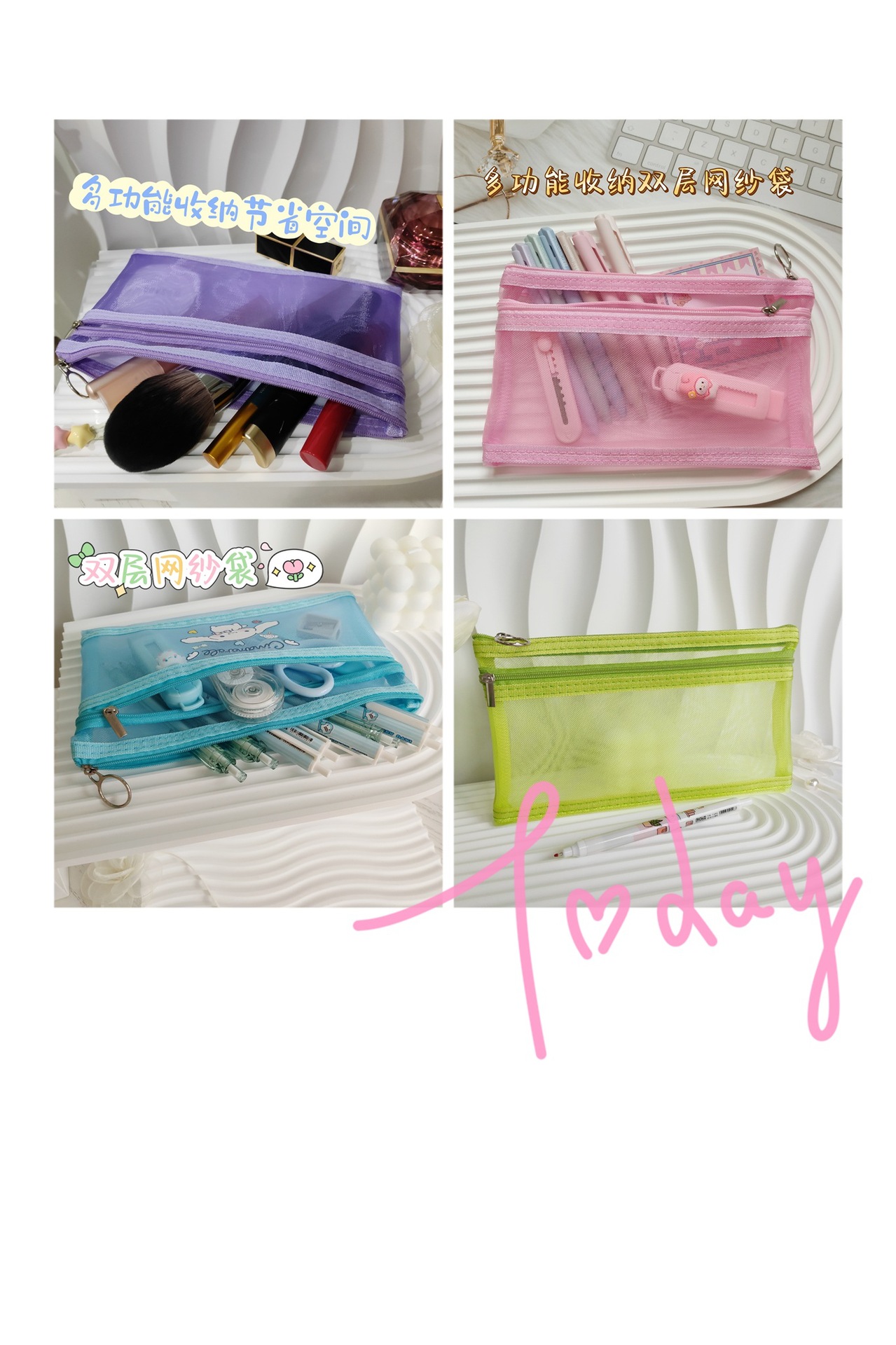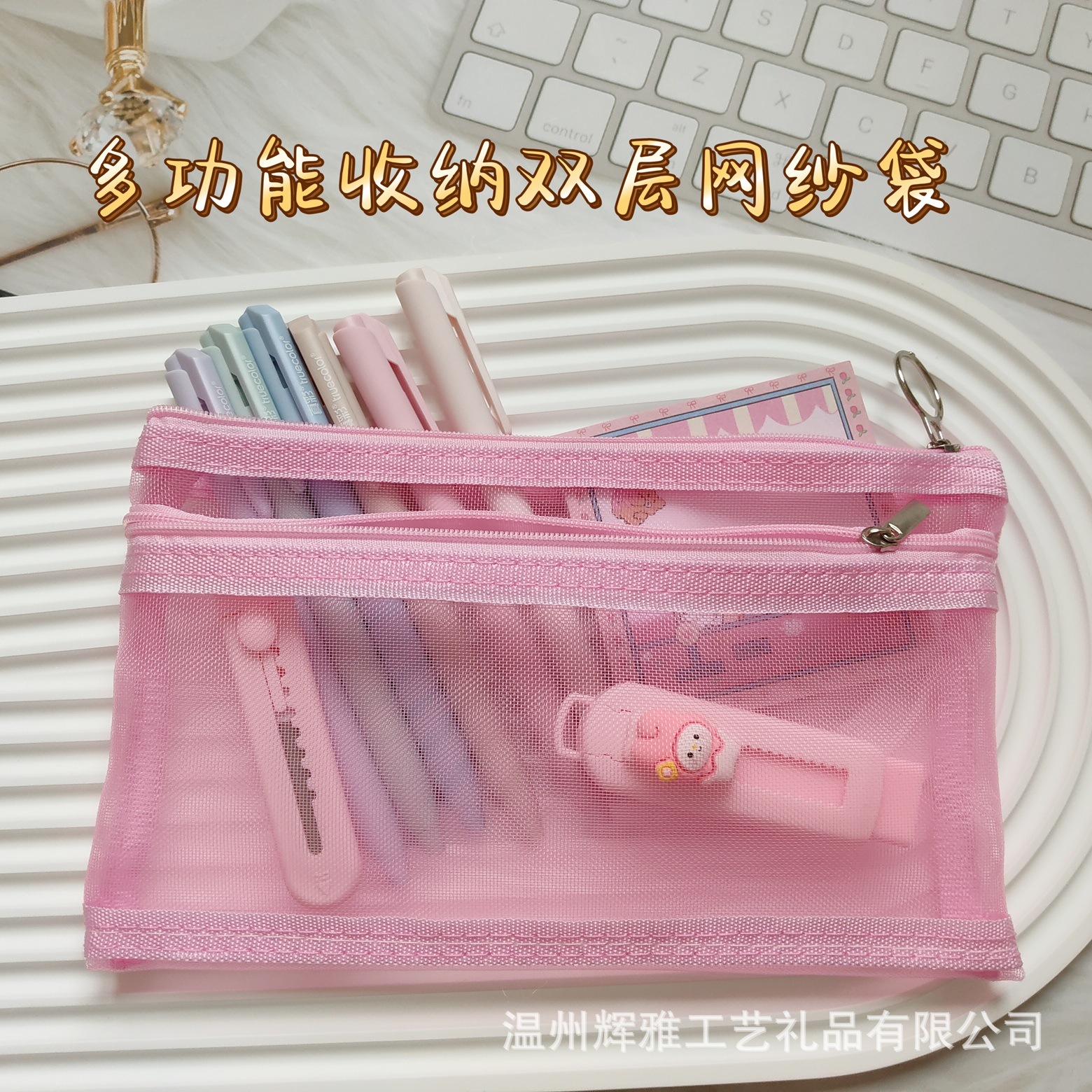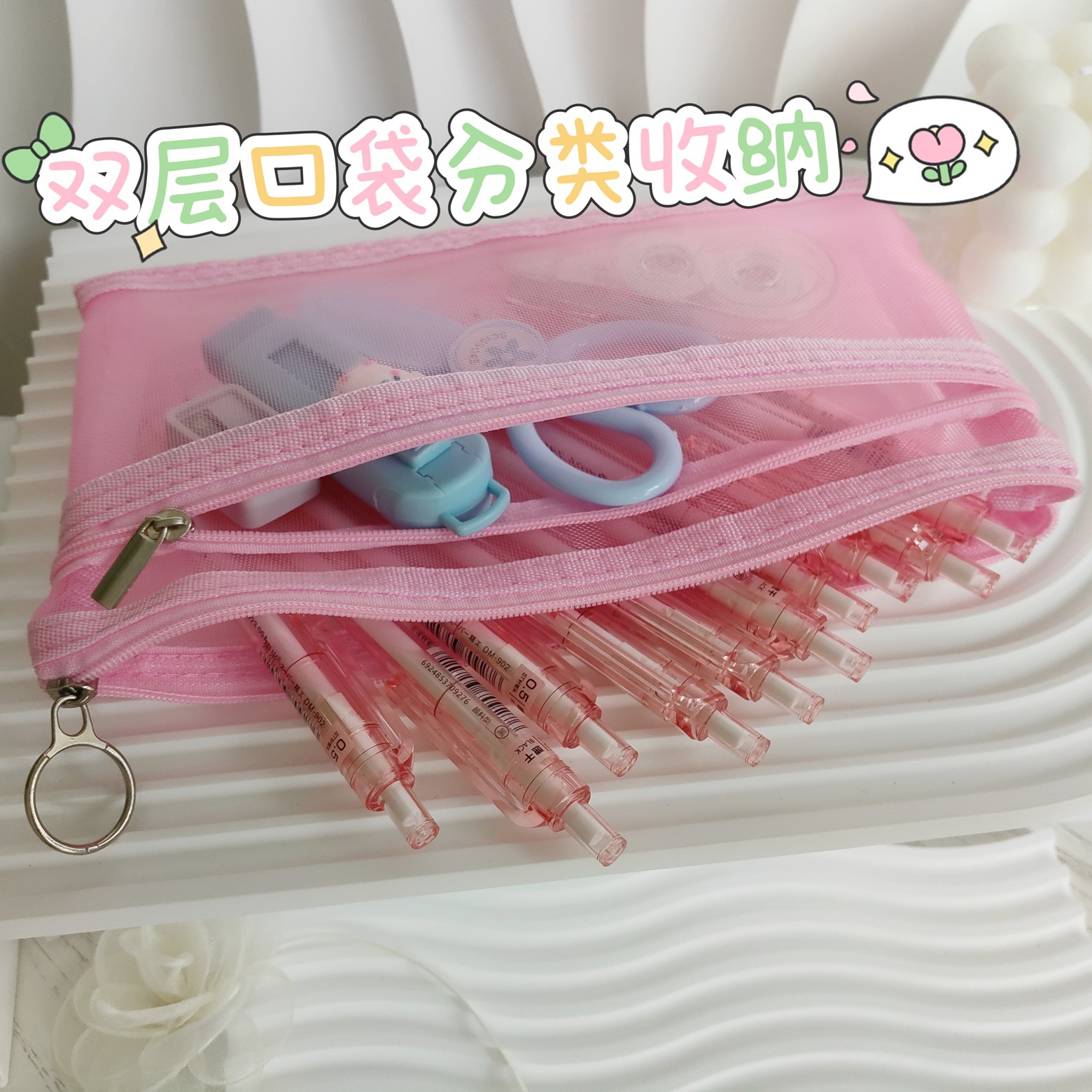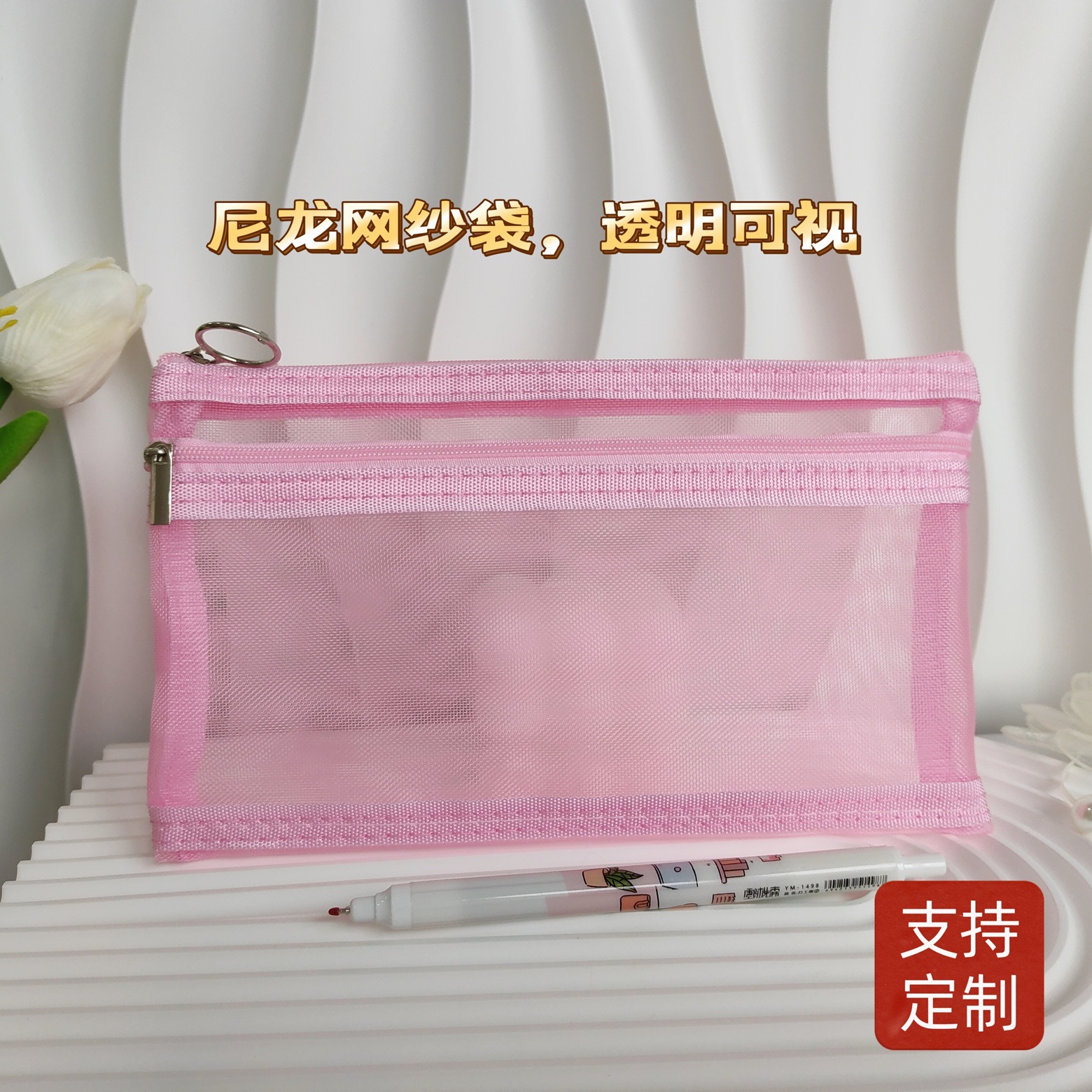 A5 메쉬 나일론 연필 가방 투명 더블 레이어 연필 가방 파일 가방 문구 지퍼 가방 대용량 저장 가방 빌 백
