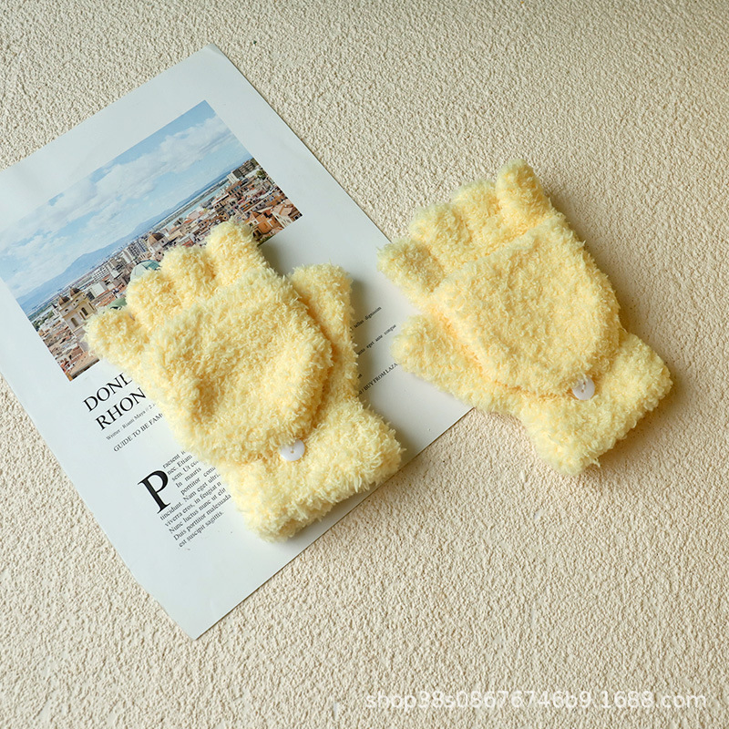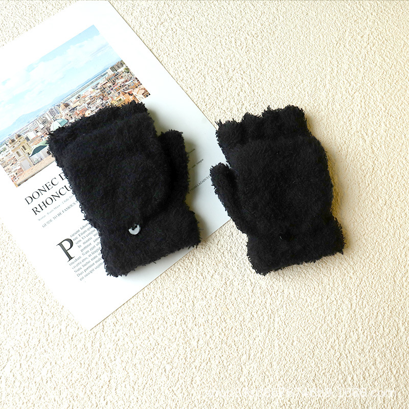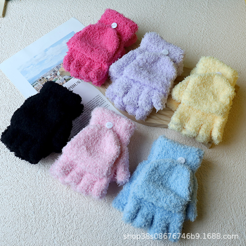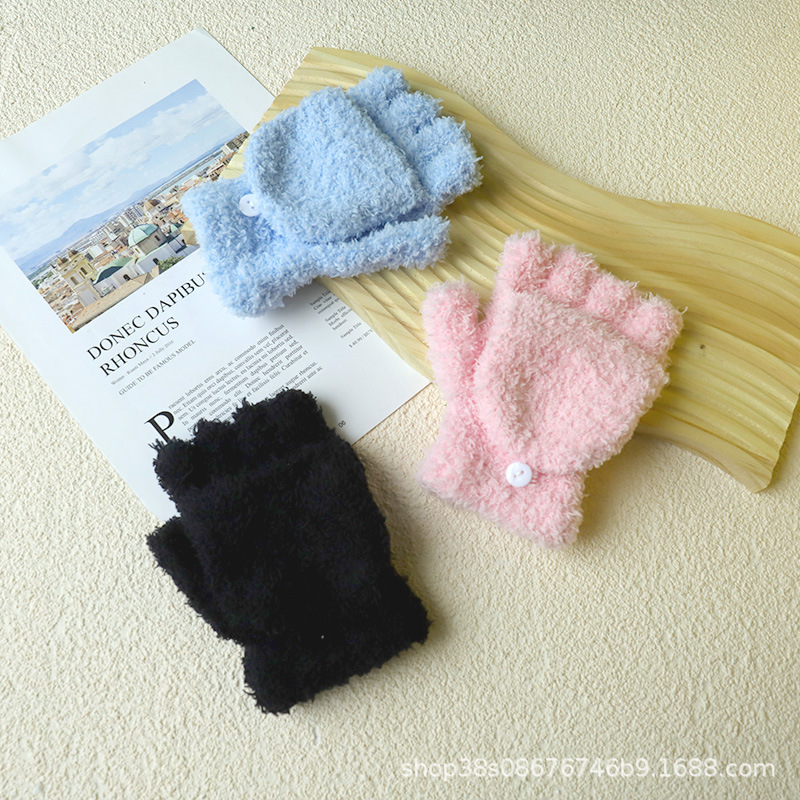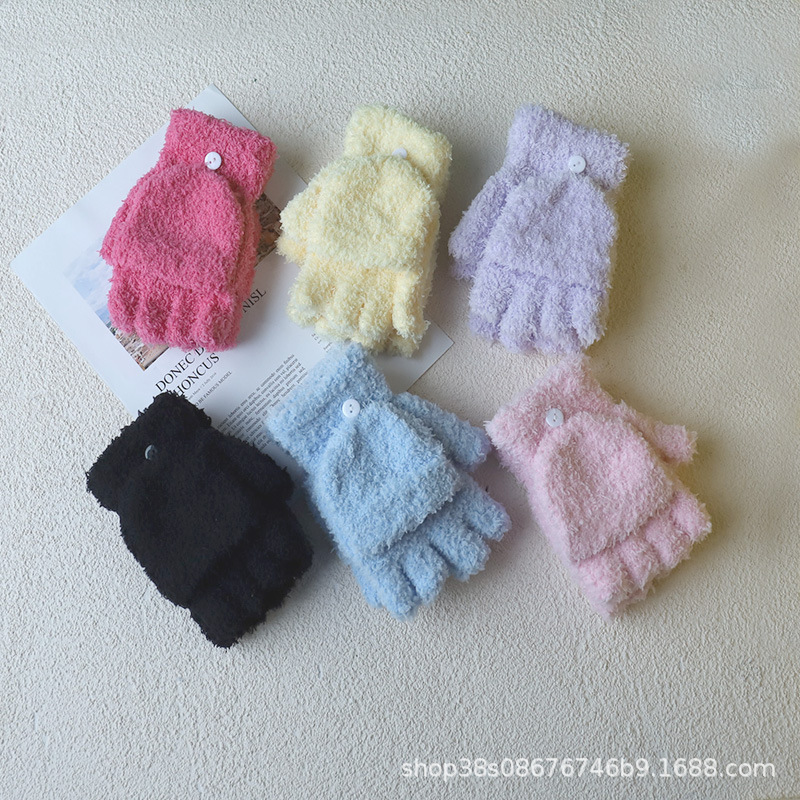 겨울 숙녀 따뜻한 장갑 산호 양털 반 벨벳 플립 반 손가락 장갑 따뜻한 장갑 도매 단색 어린이스토어 가기