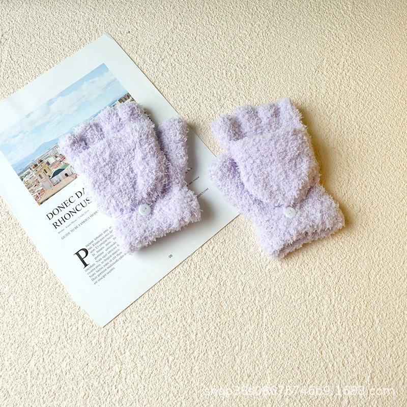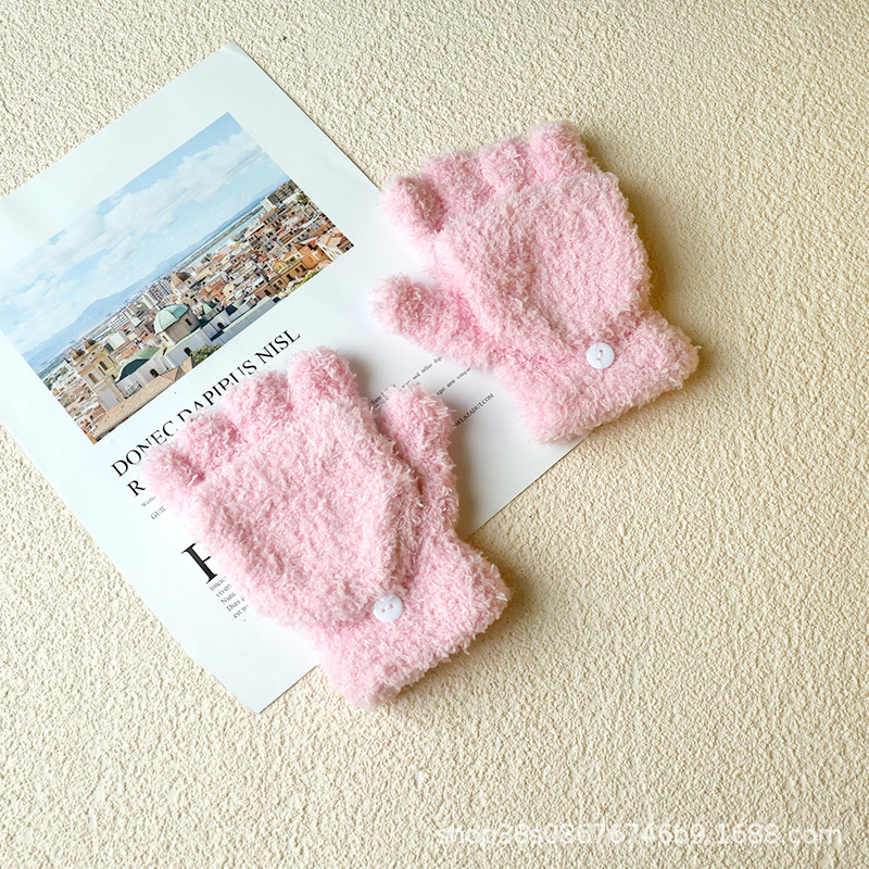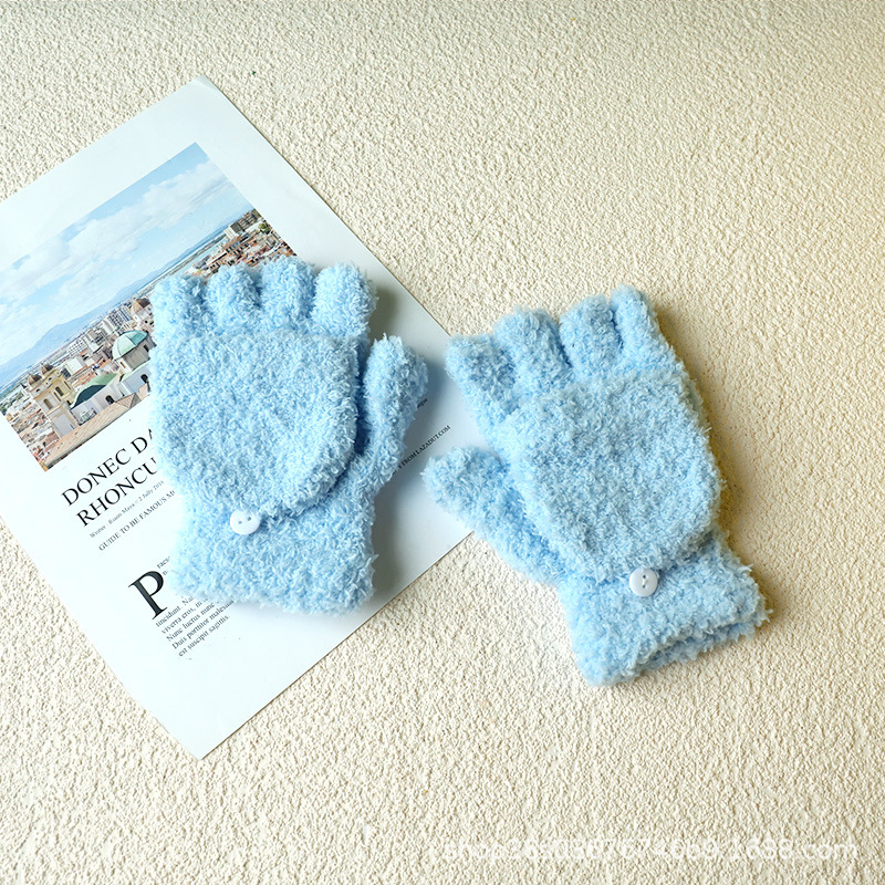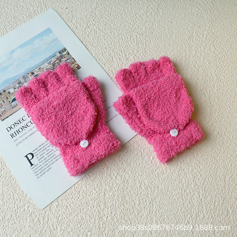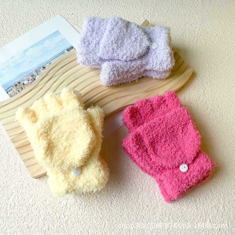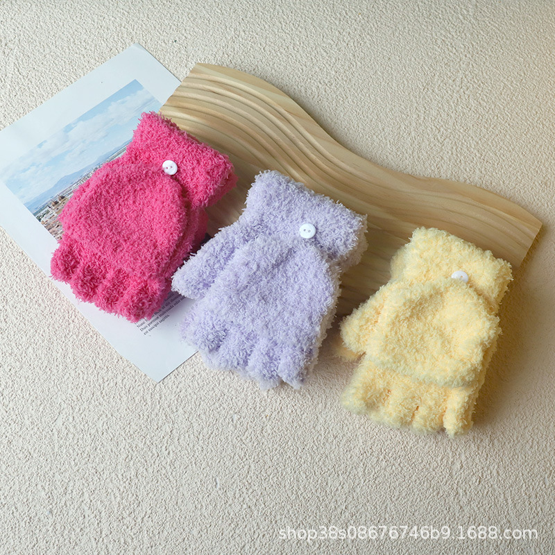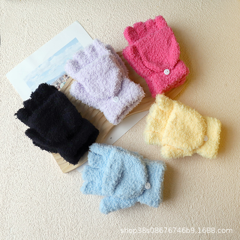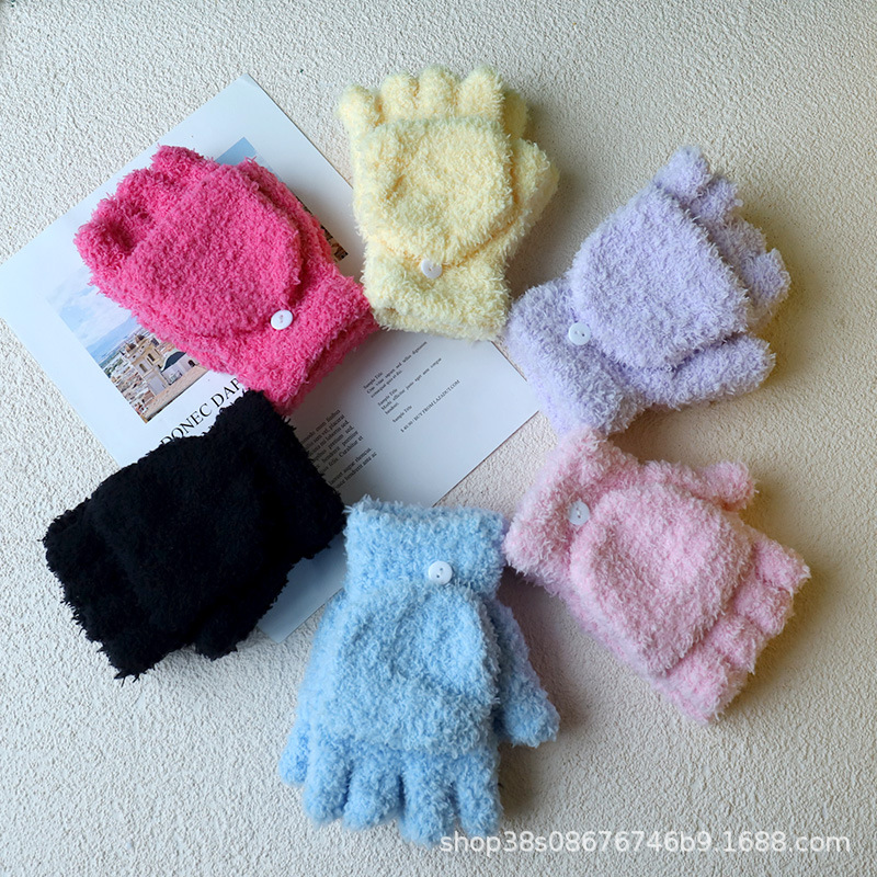 겨울 숙녀 따뜻한 장갑 산호 양털 반 벨벳 플립 반 손가락 장갑 따뜻한 장갑 도매 단색 어린이